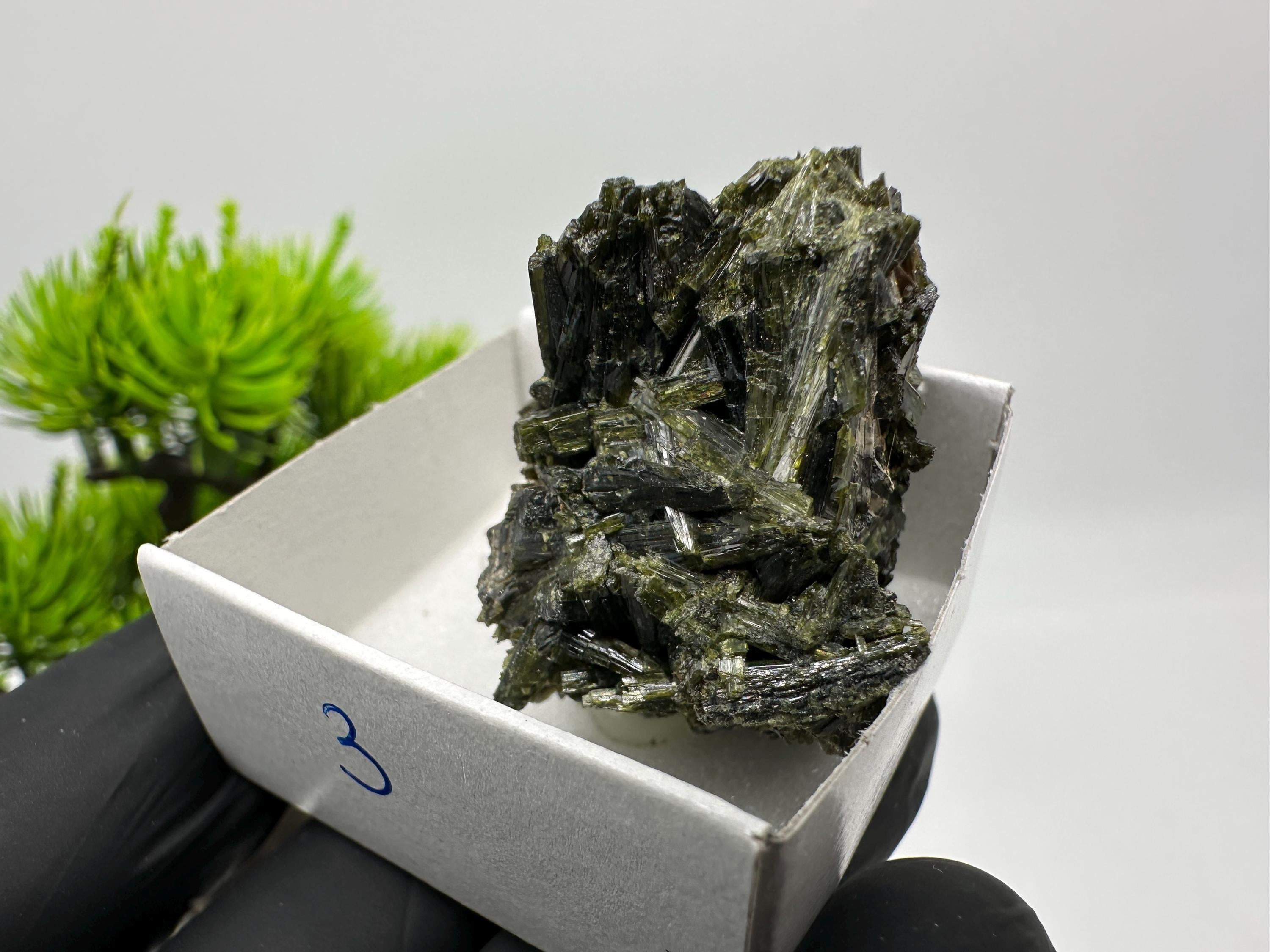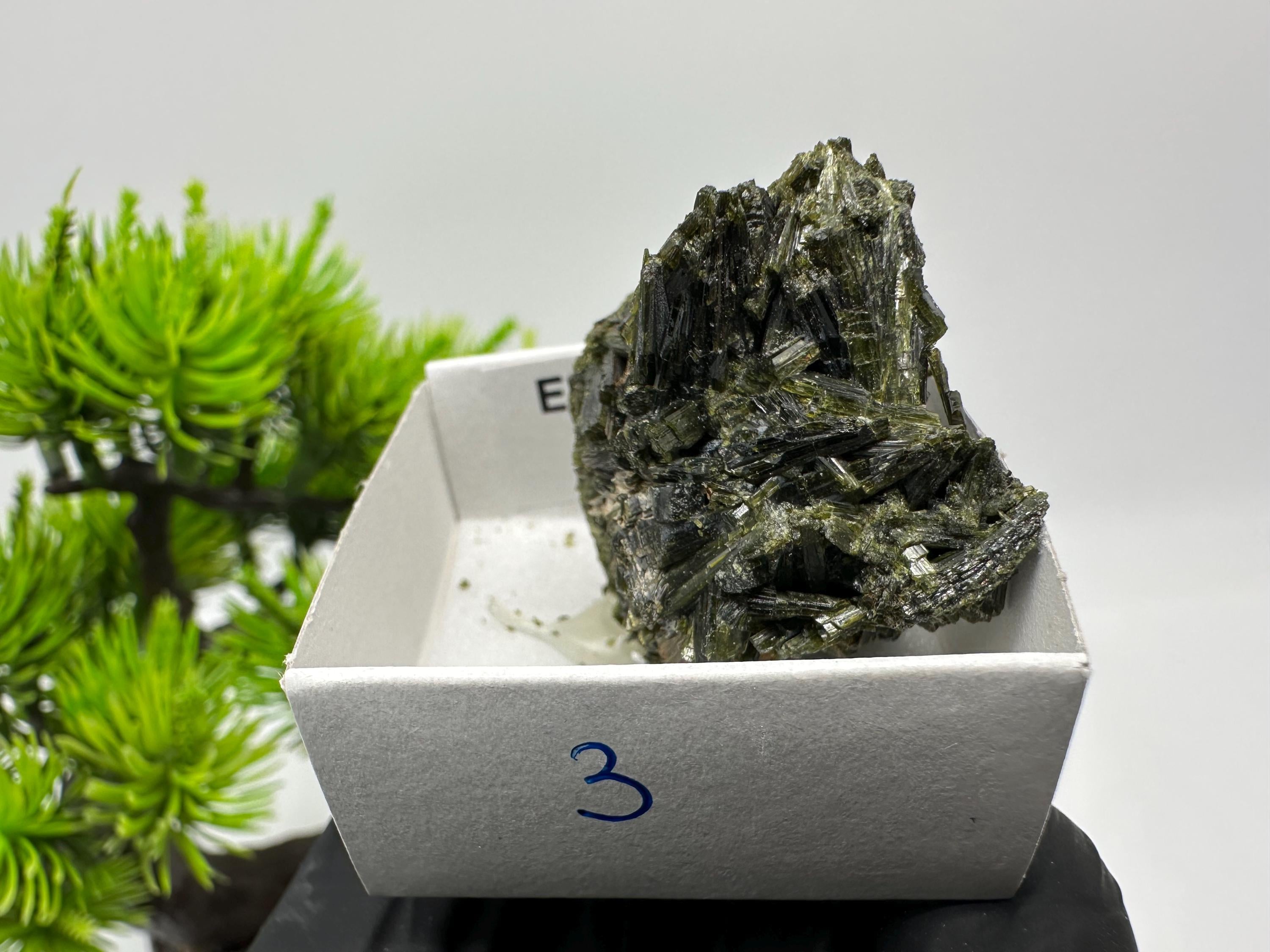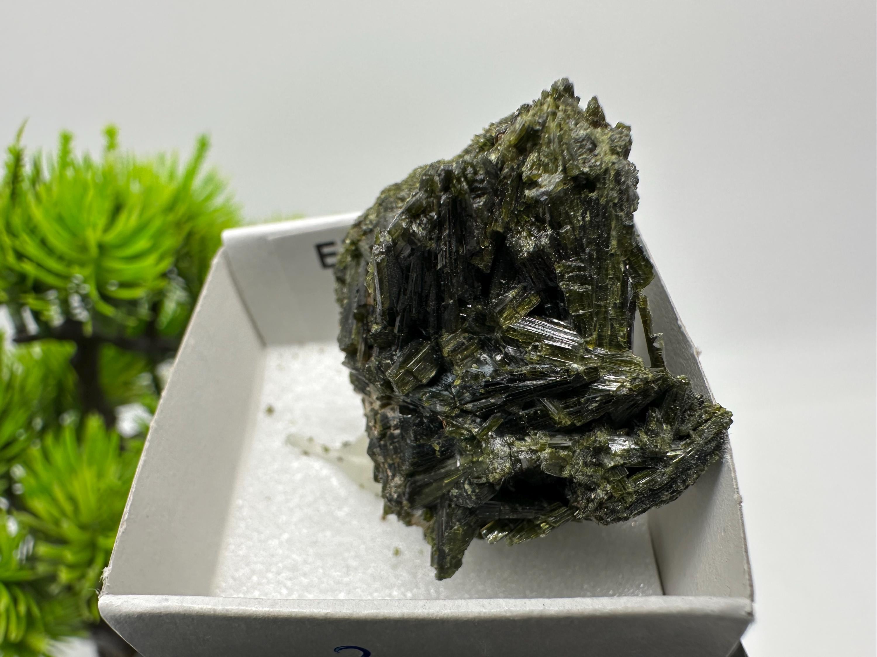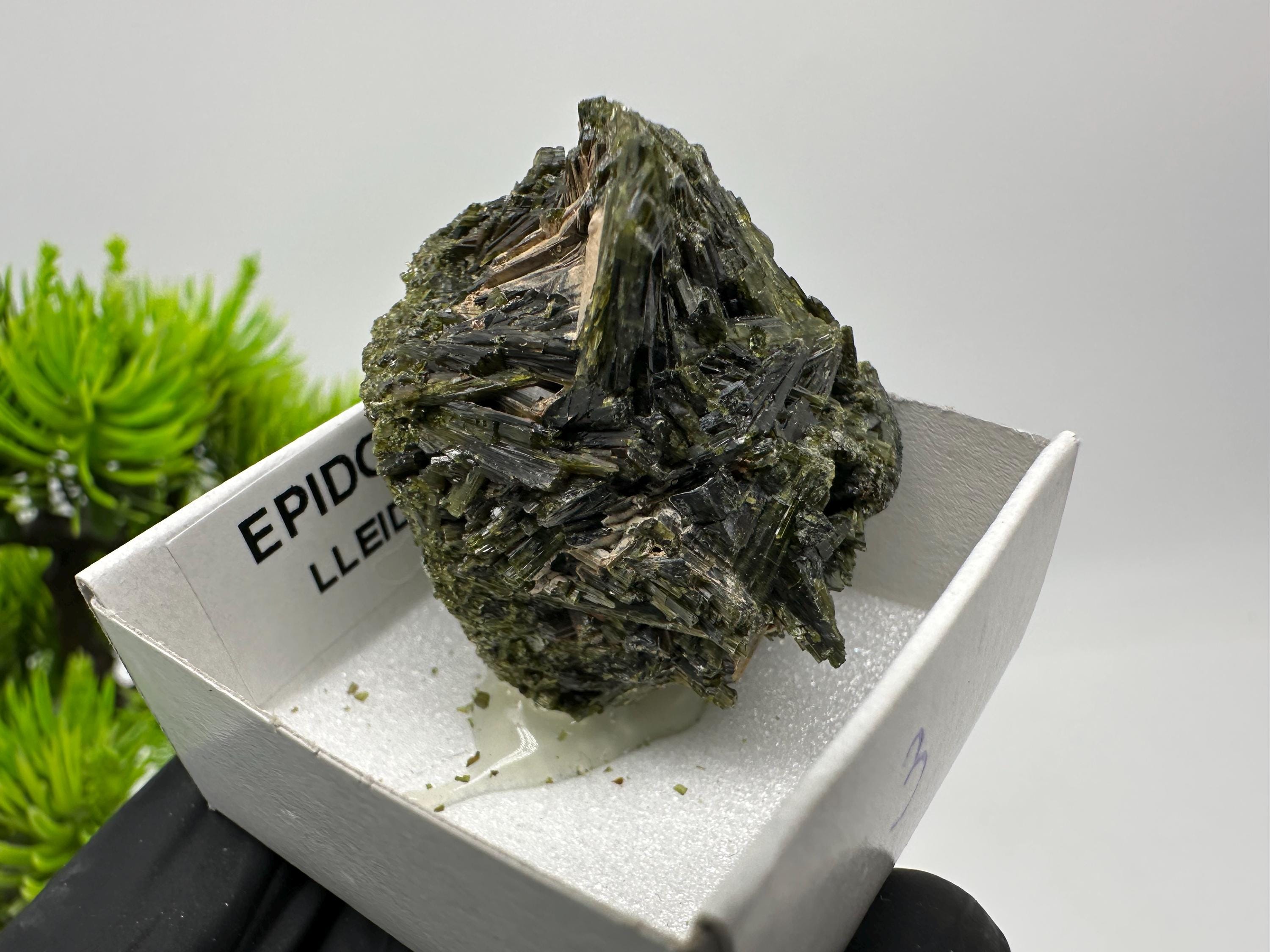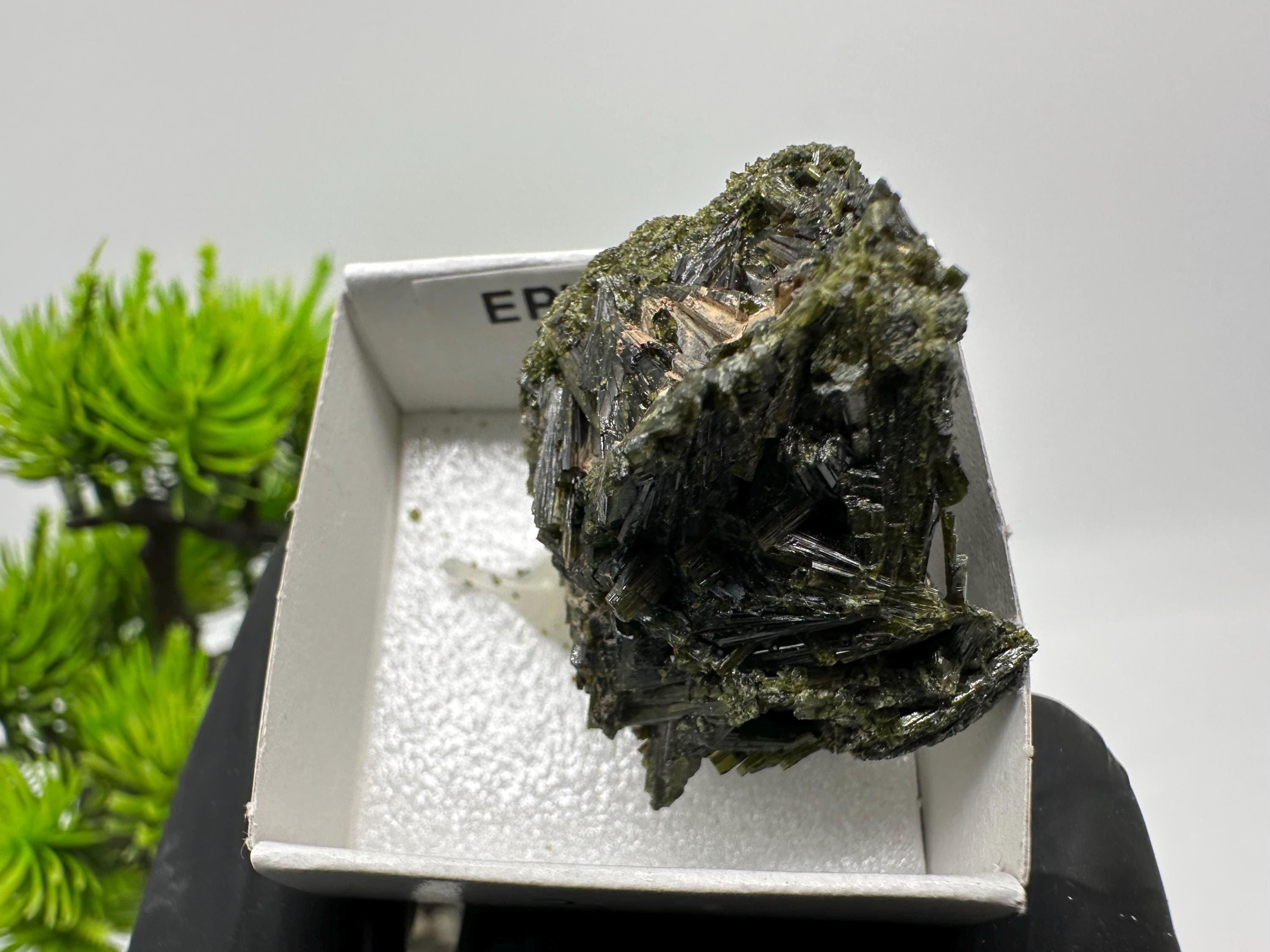 Natural Epidote Crystal from Lleida, Spain – Raw Green Mineral Specimen – Collector’s Stone – Healing Crystal Decor BOX4/4 cm