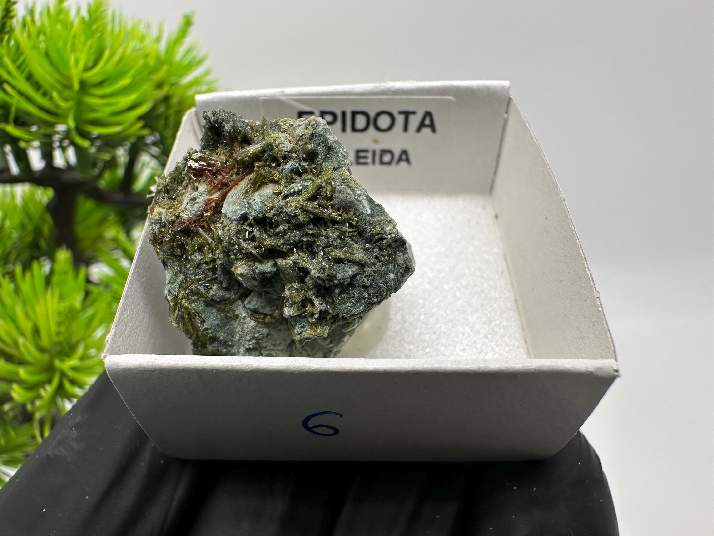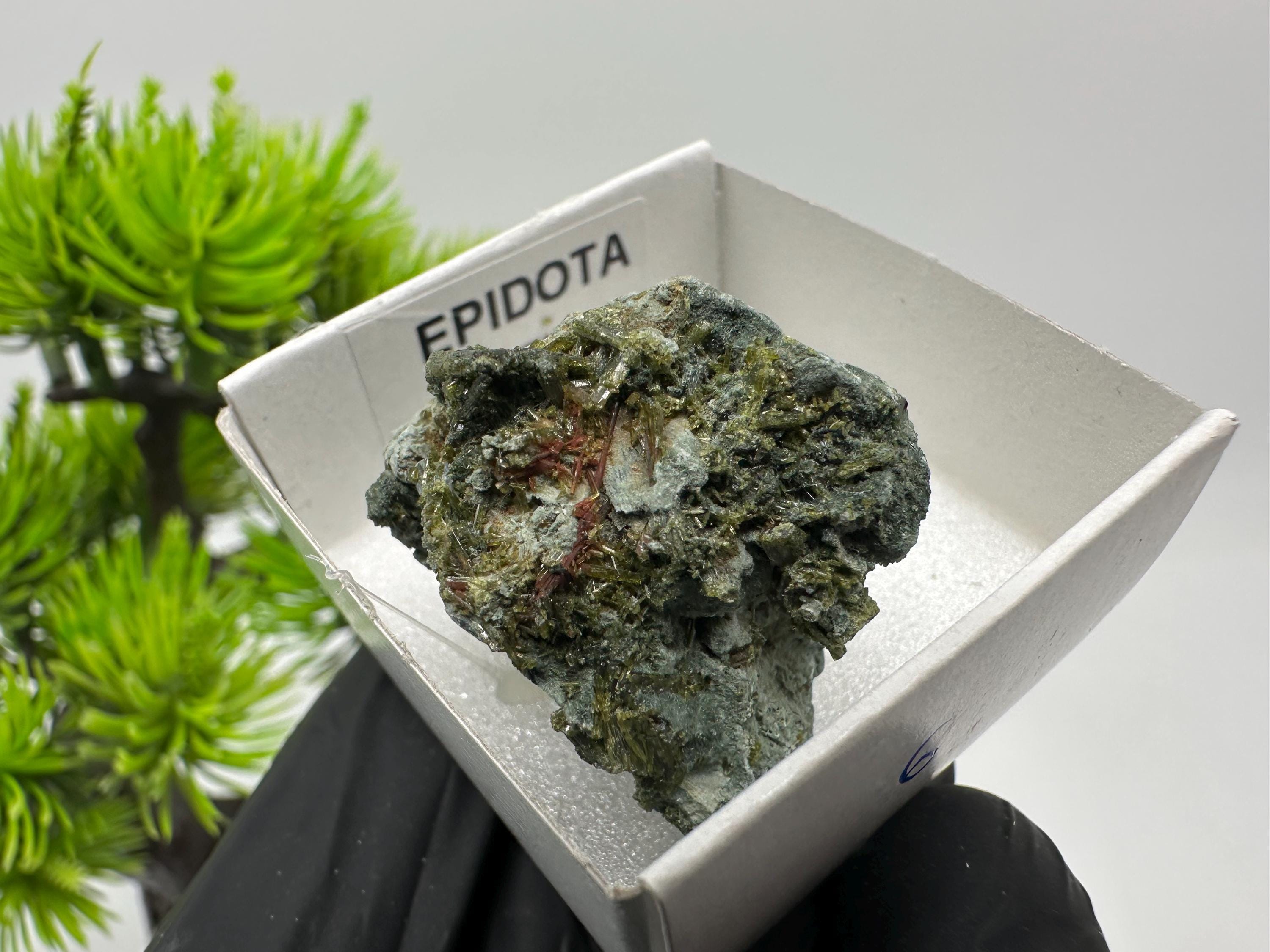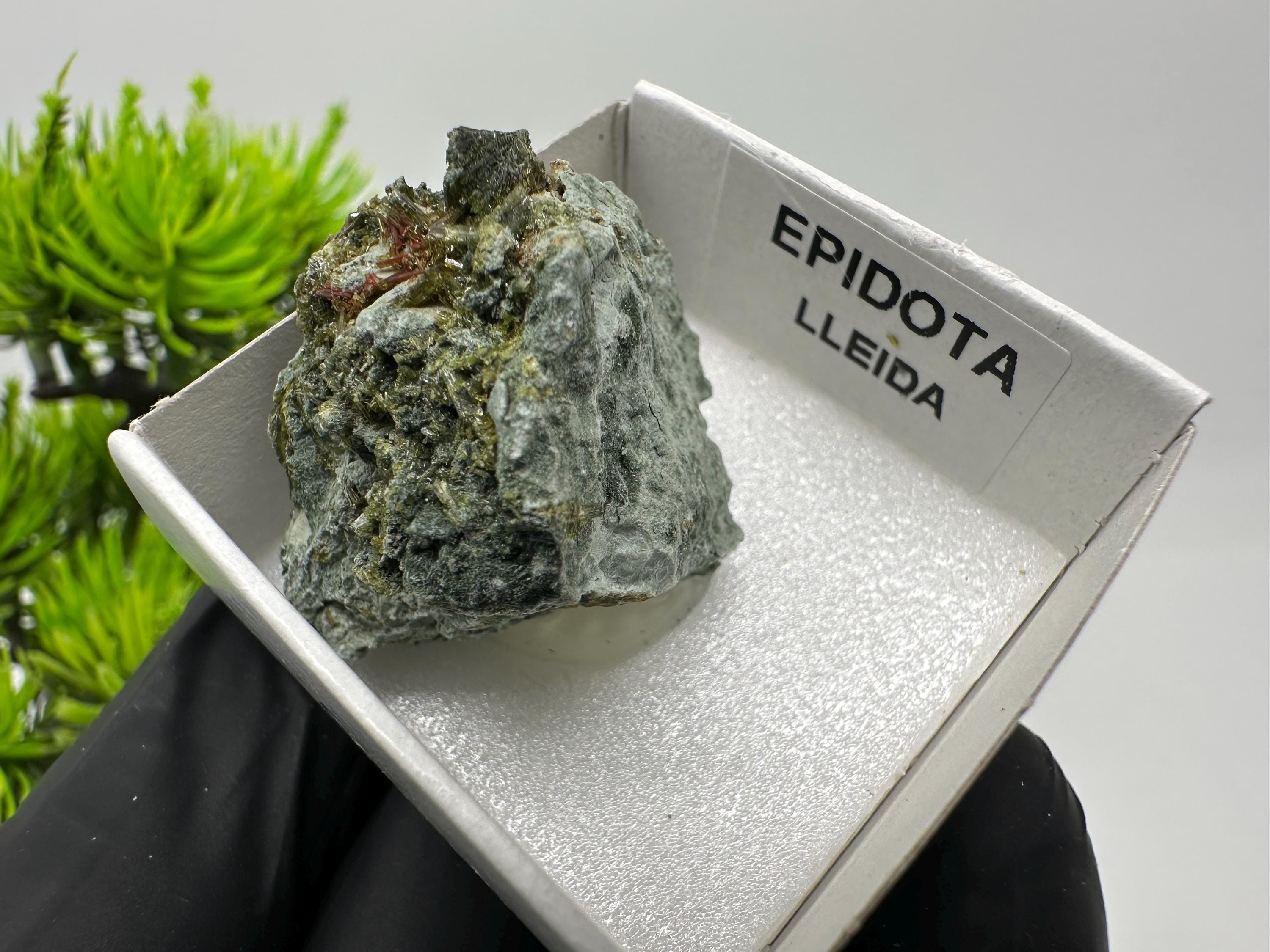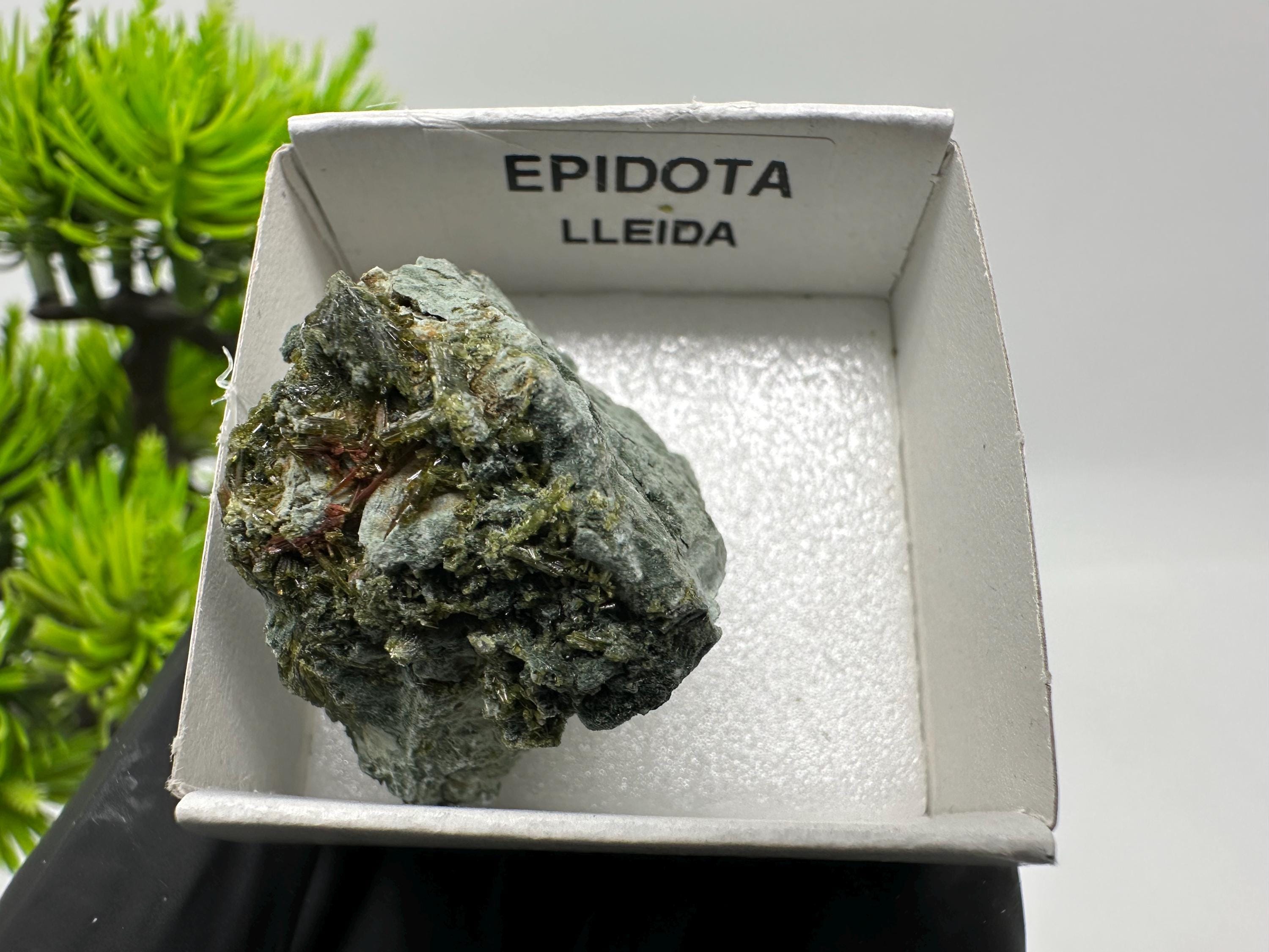 Natural Epidote Crystal from Lleida, Spain – Raw Green Mineral Specimen – Collector’s Stone – Healing Crystal Decor BOX4/4 cm