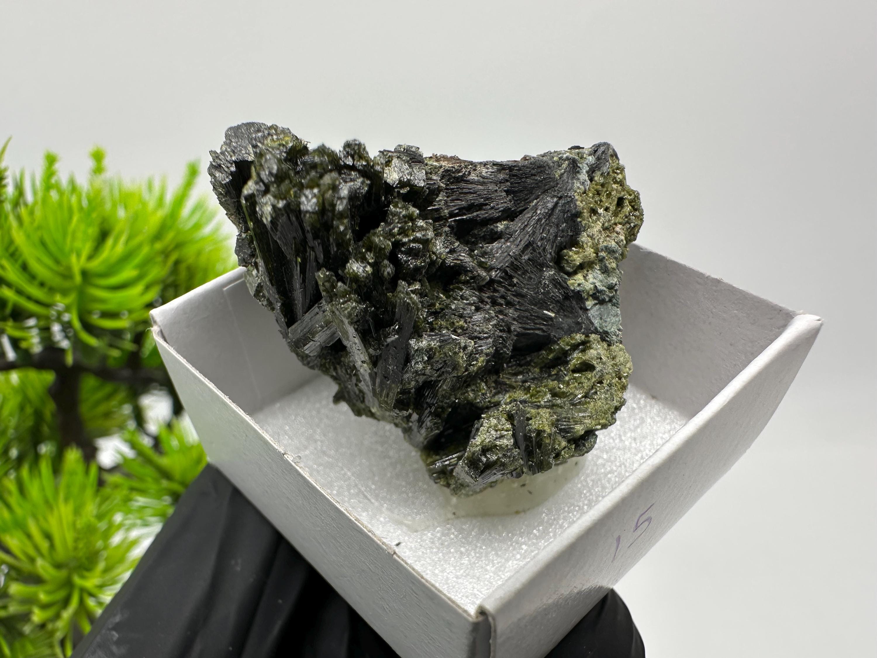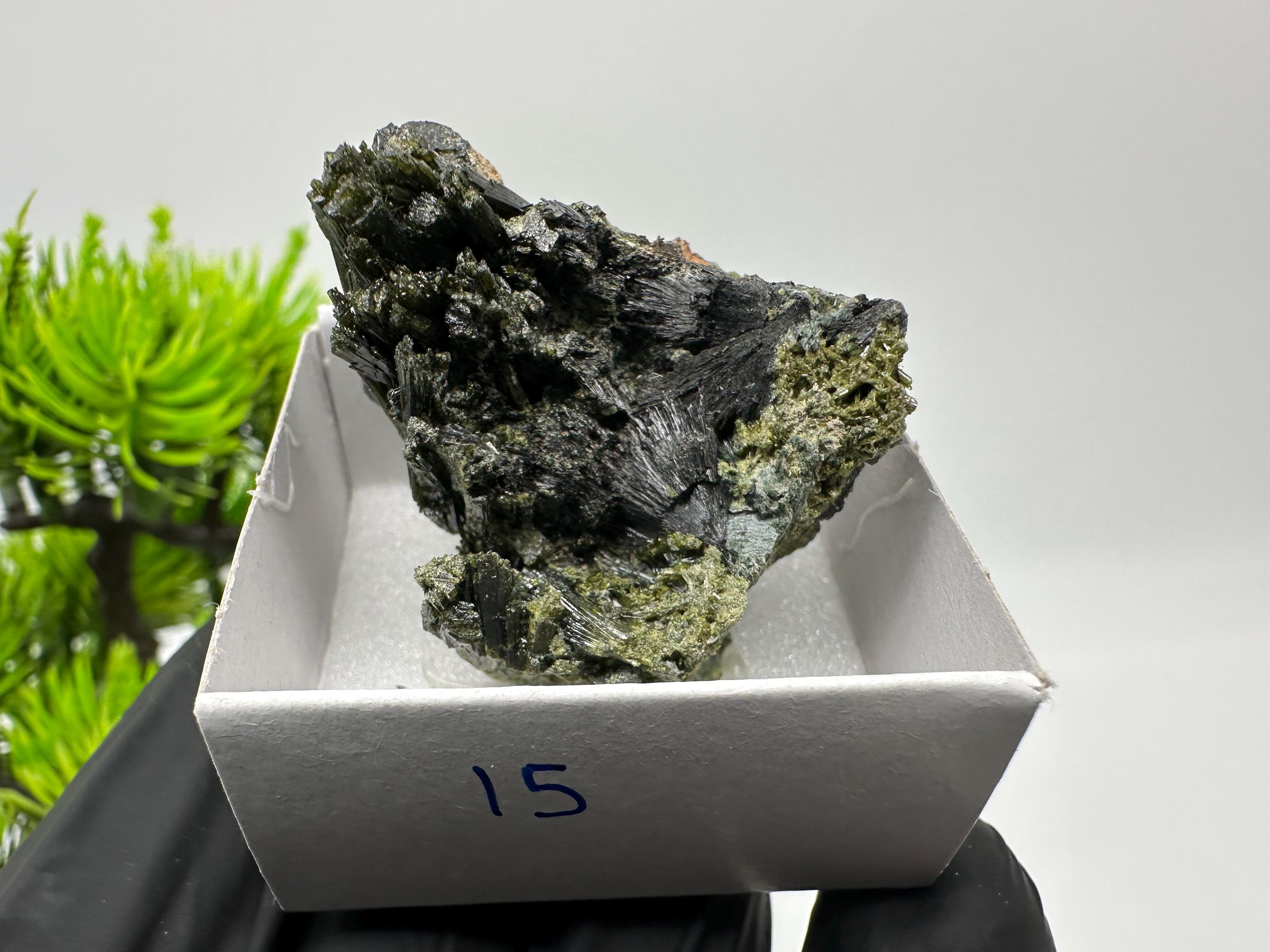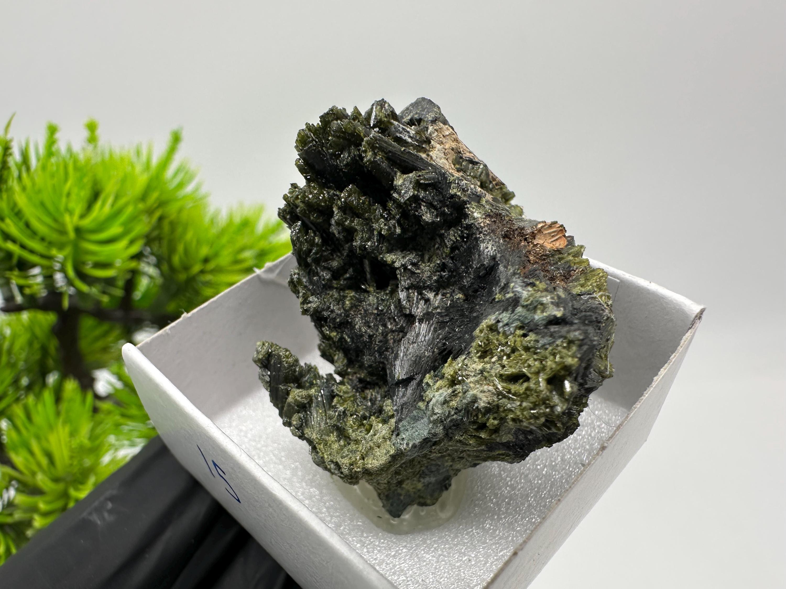 Natural Epidote Crystal from Lleida, Spain – Raw Green Mineral Specimen – Collector’s Stone – Healing Crystal Decor BOX4/4 cm