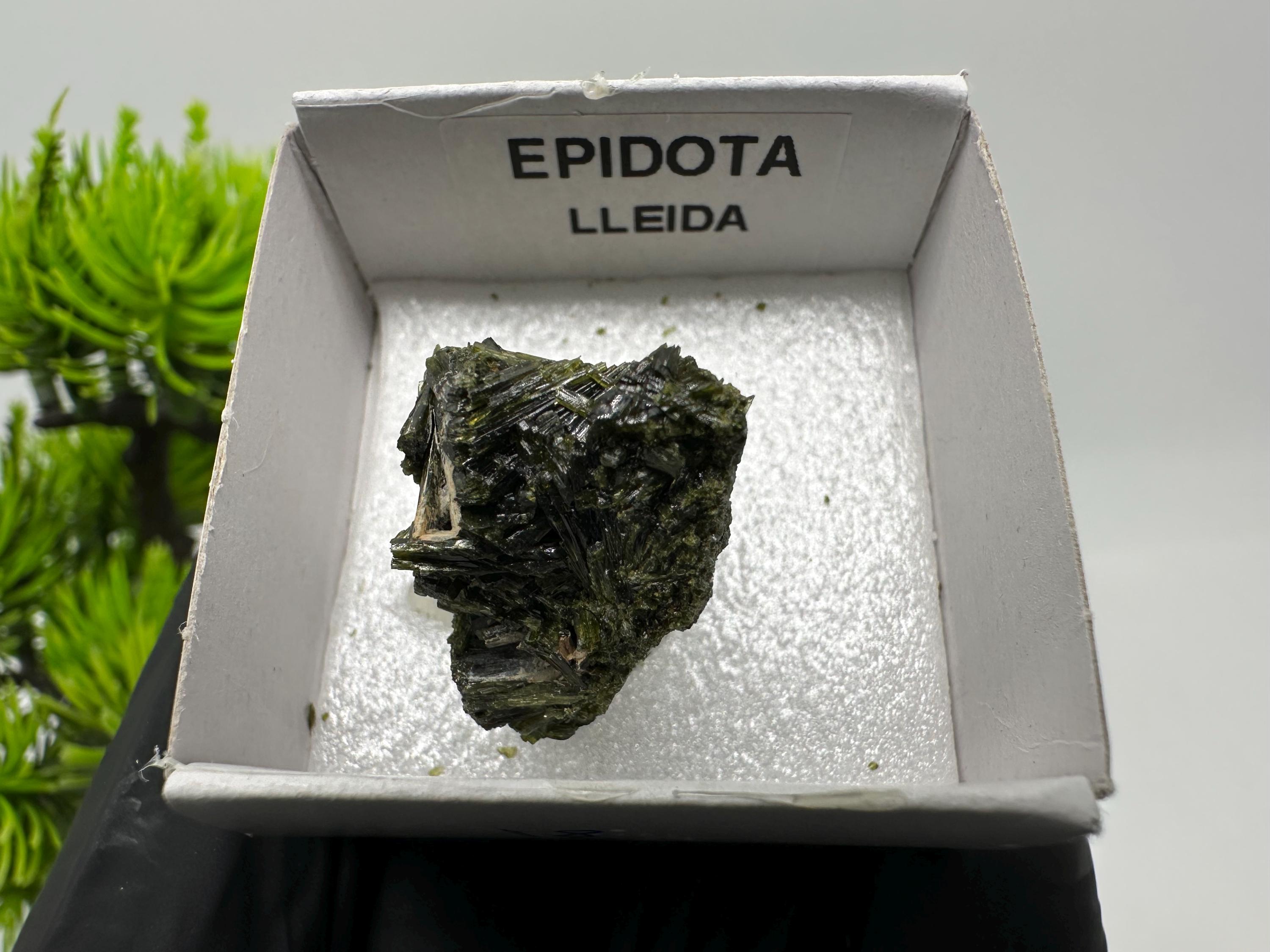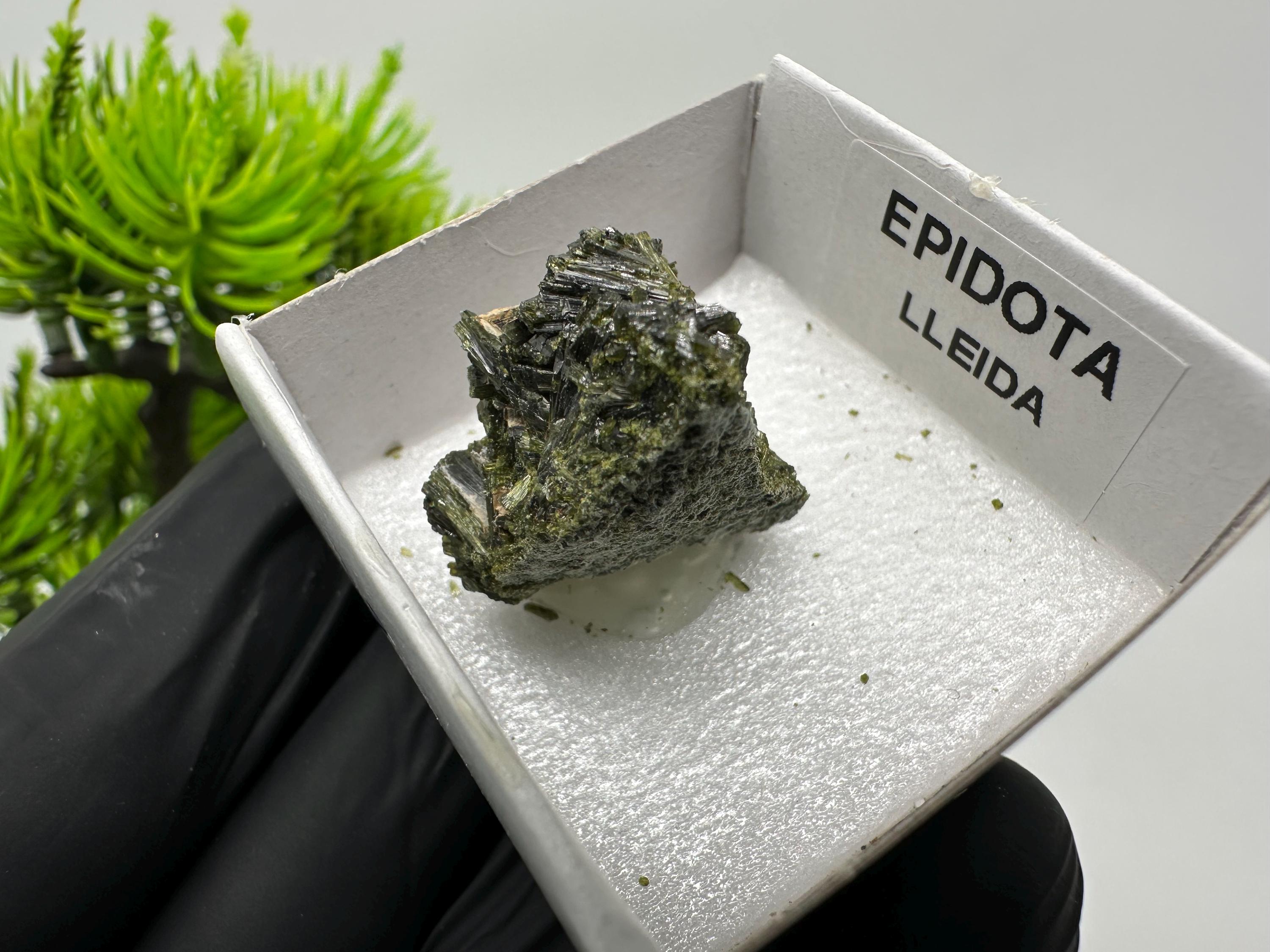 Natural Epidote Crystal from Lleida, Spain – Raw Green Mineral Specimen – Collector’s Stone – Healing Crystal Decor BOX4/4 cm