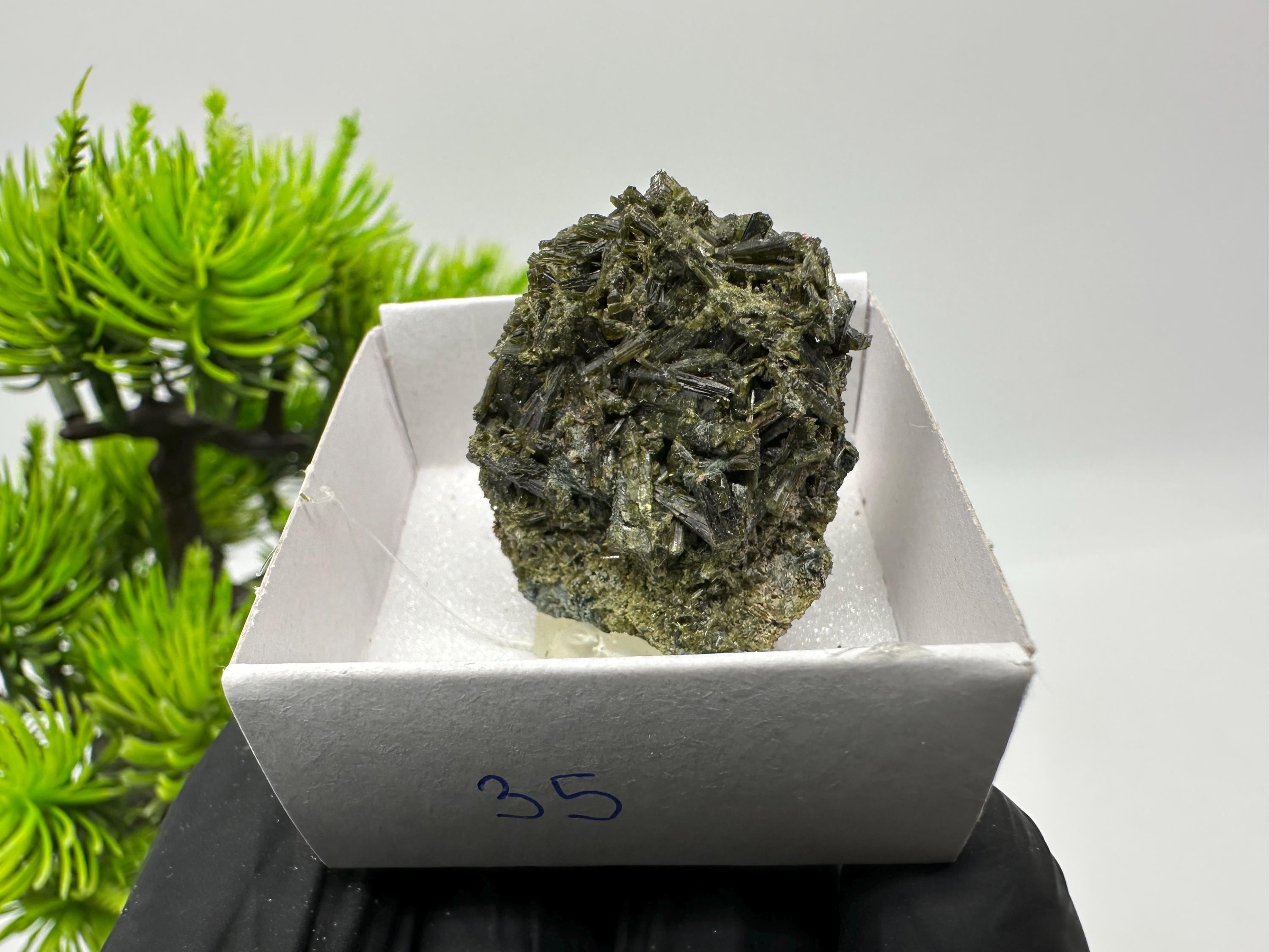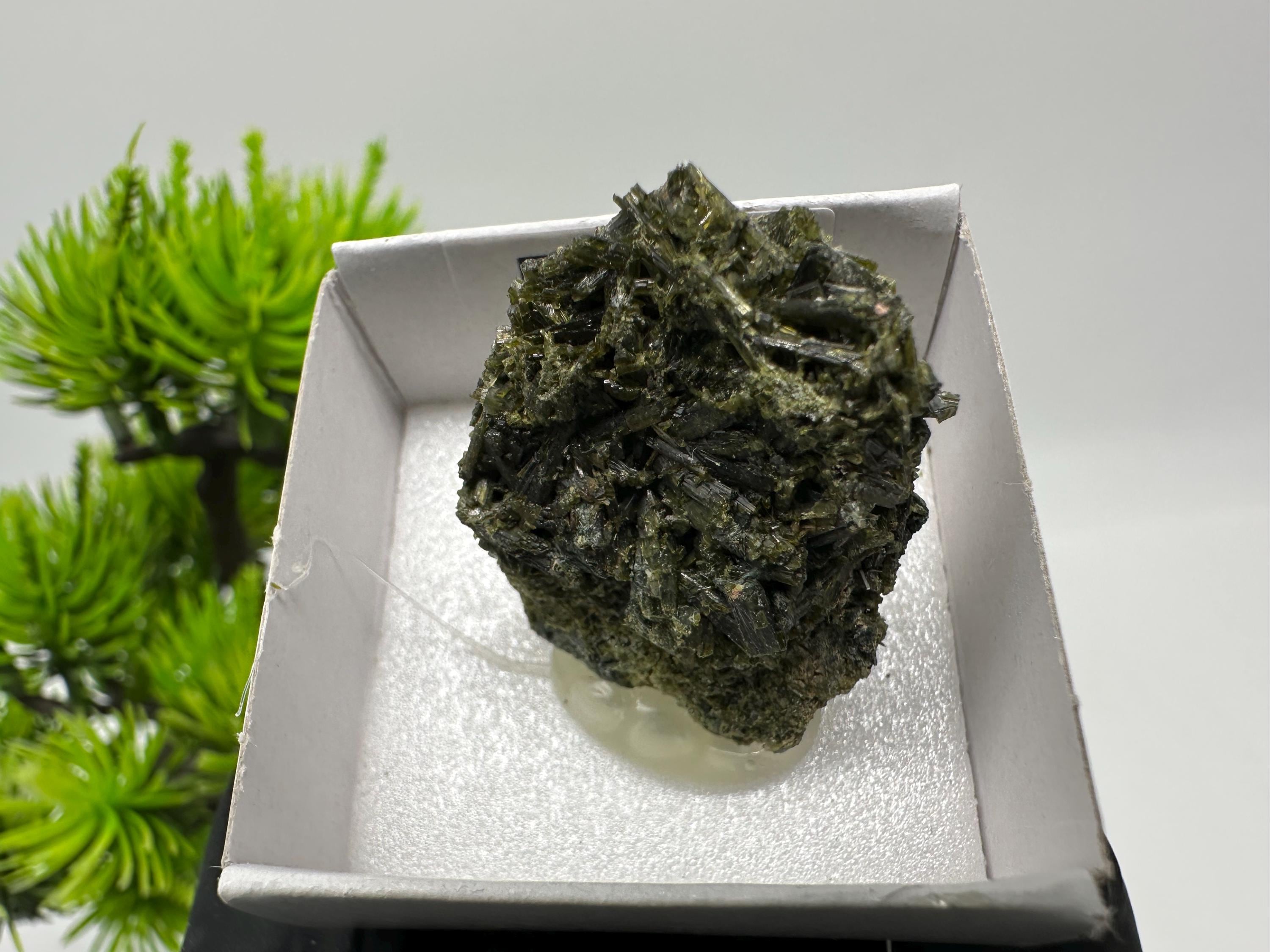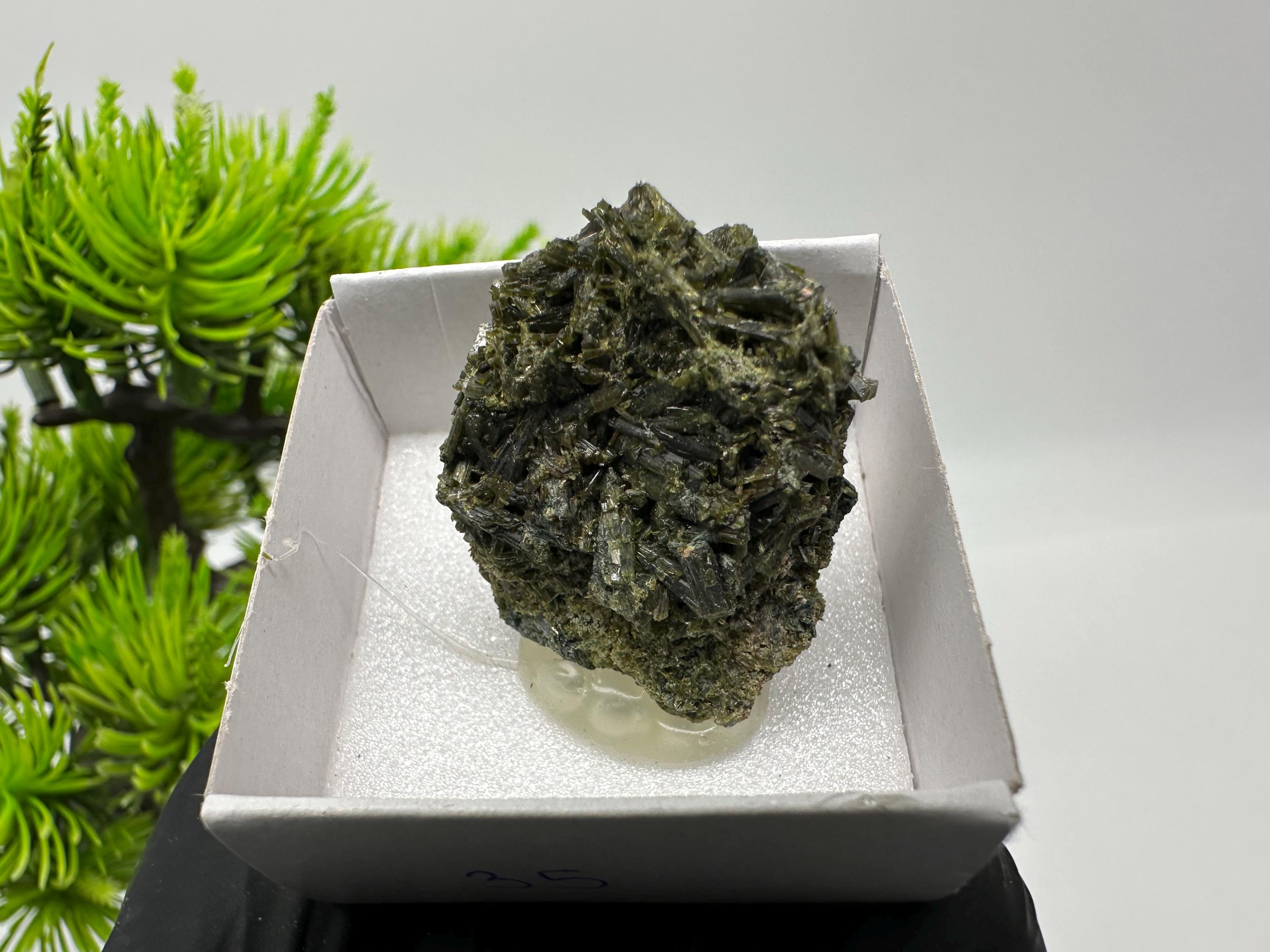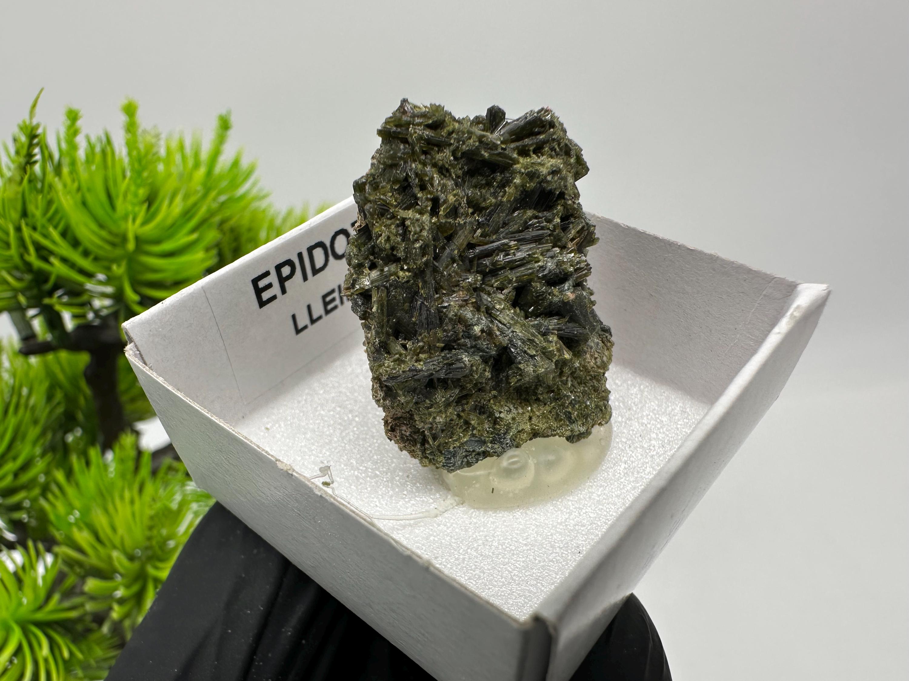 Natural Epidote Crystal from Lleida, Spain – Raw Green Mineral Specimen – Collector’s Stone – Healing Crystal Decor BOX4/4 cm