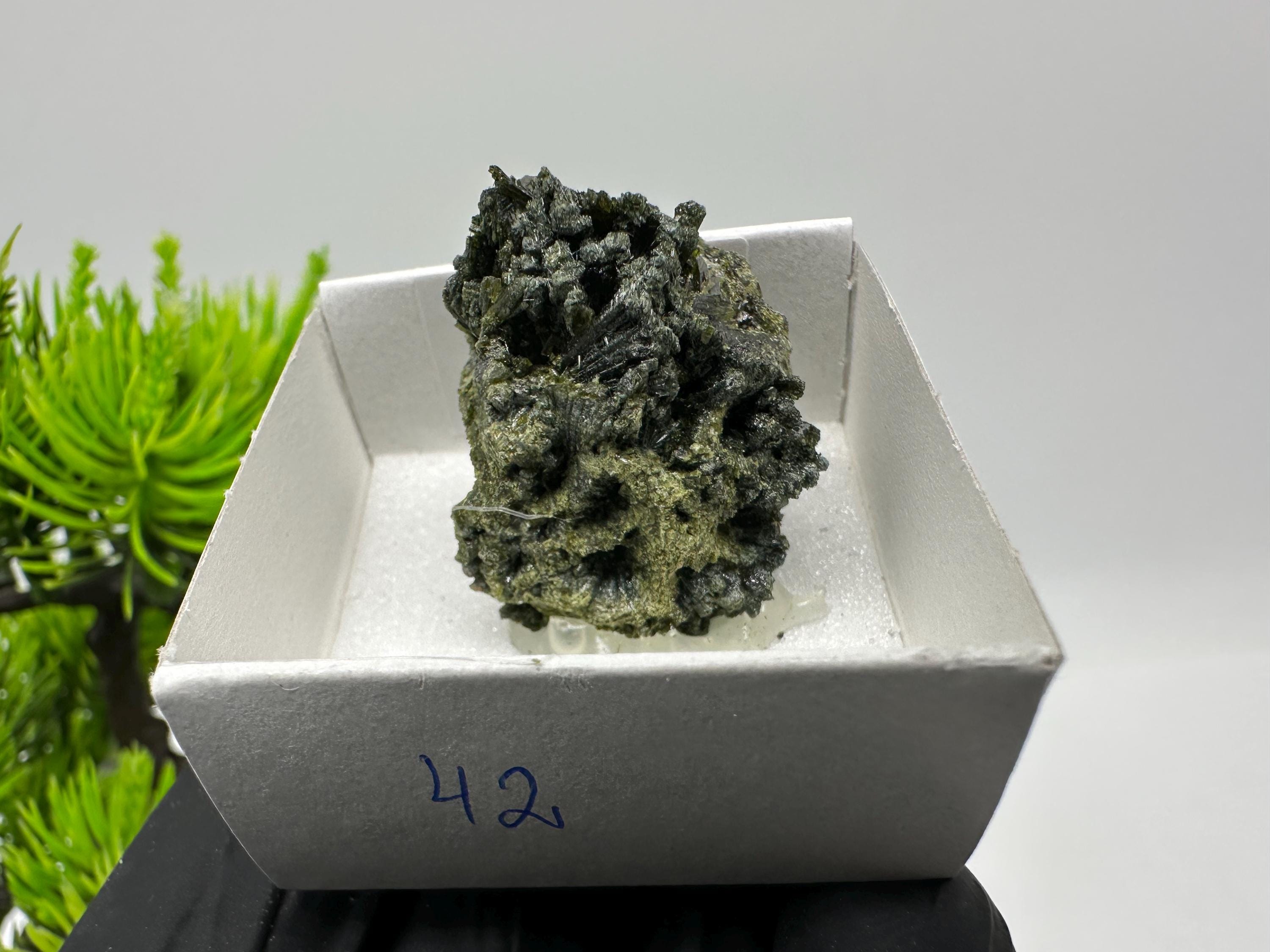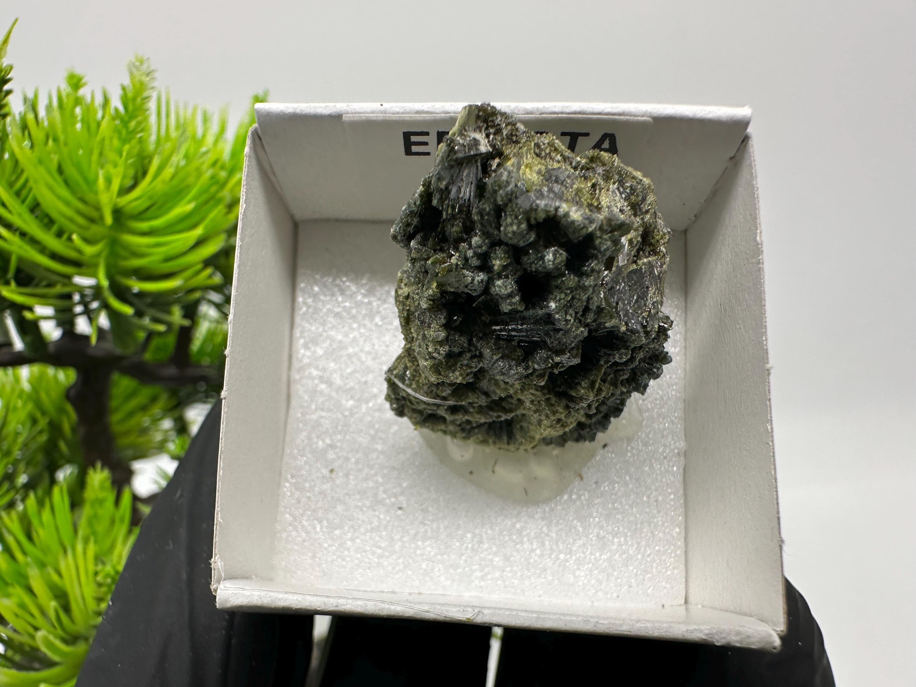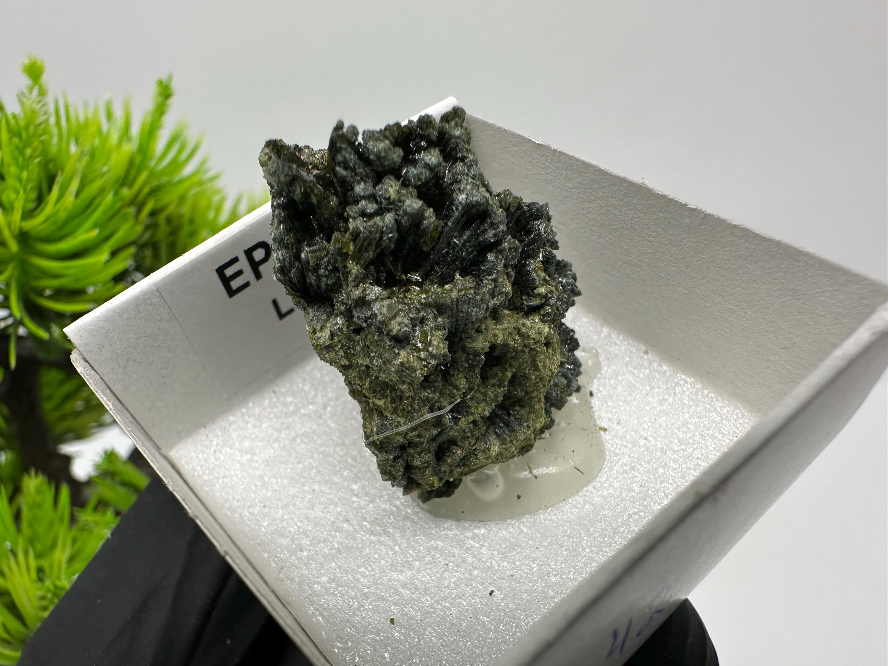 Natural Epidote Crystal from Lleida, Spain – Raw Green Mineral Specimen – Collector’s Stone – Healing Crystal Decor BOX4/4 cm