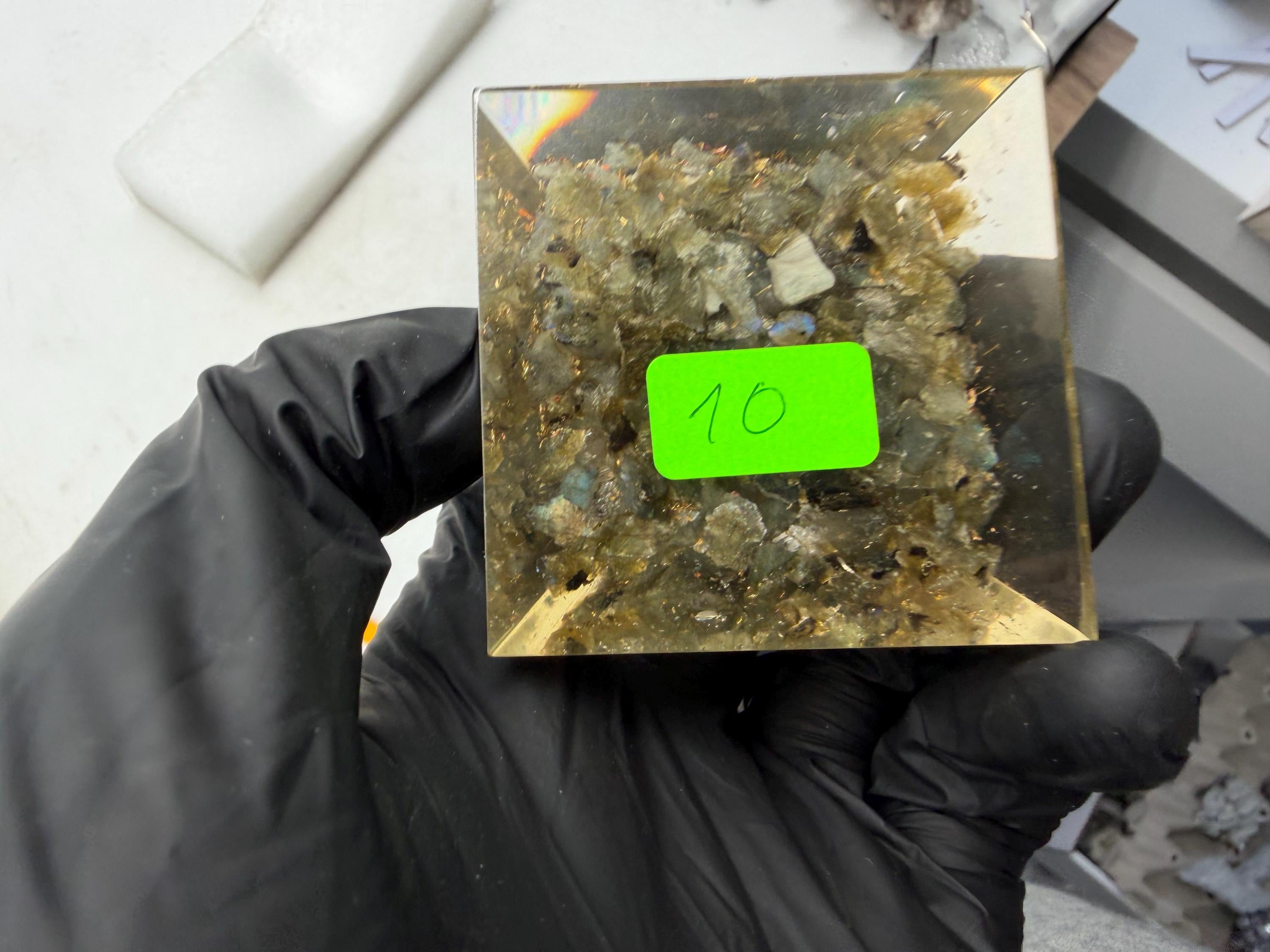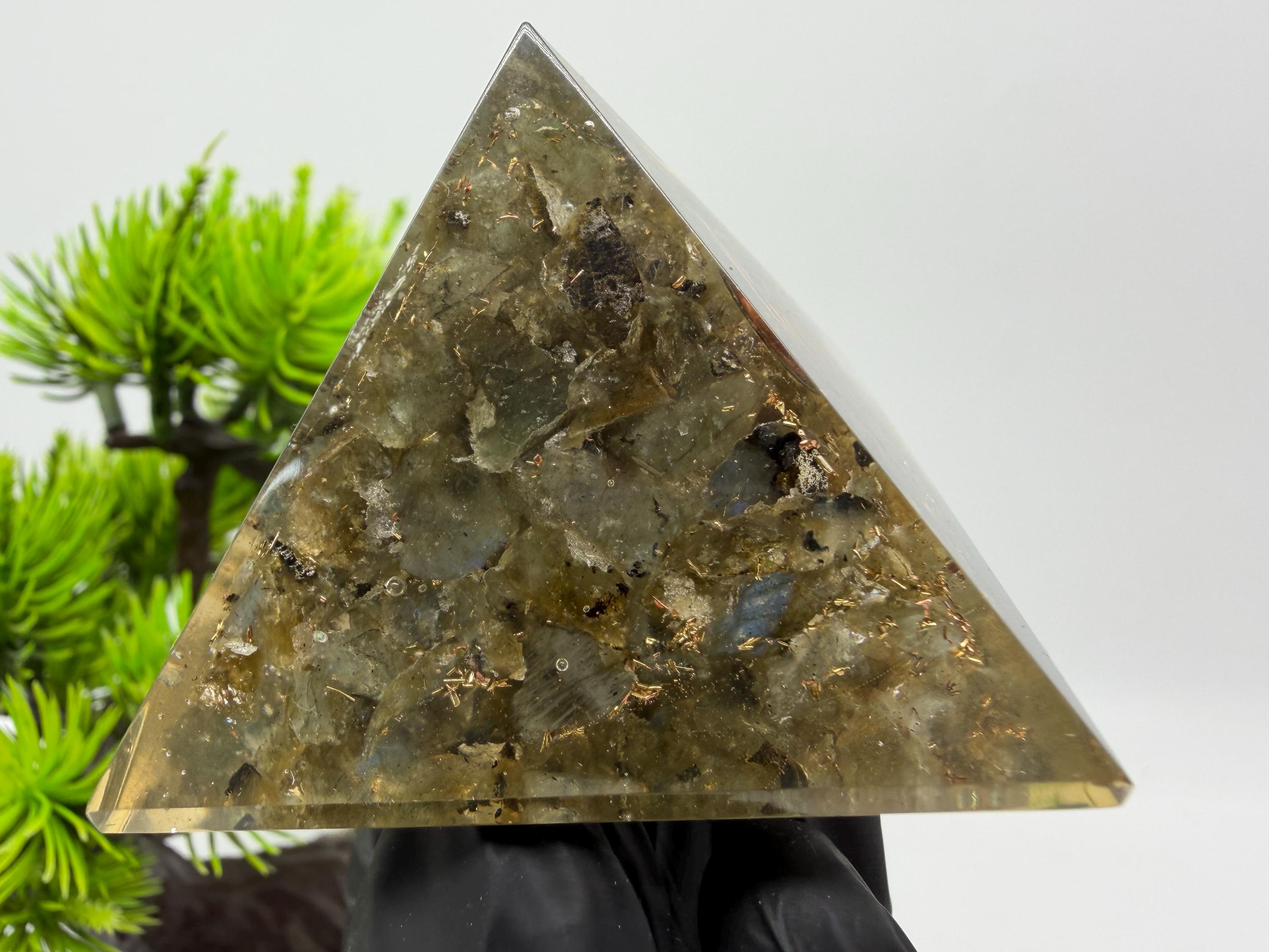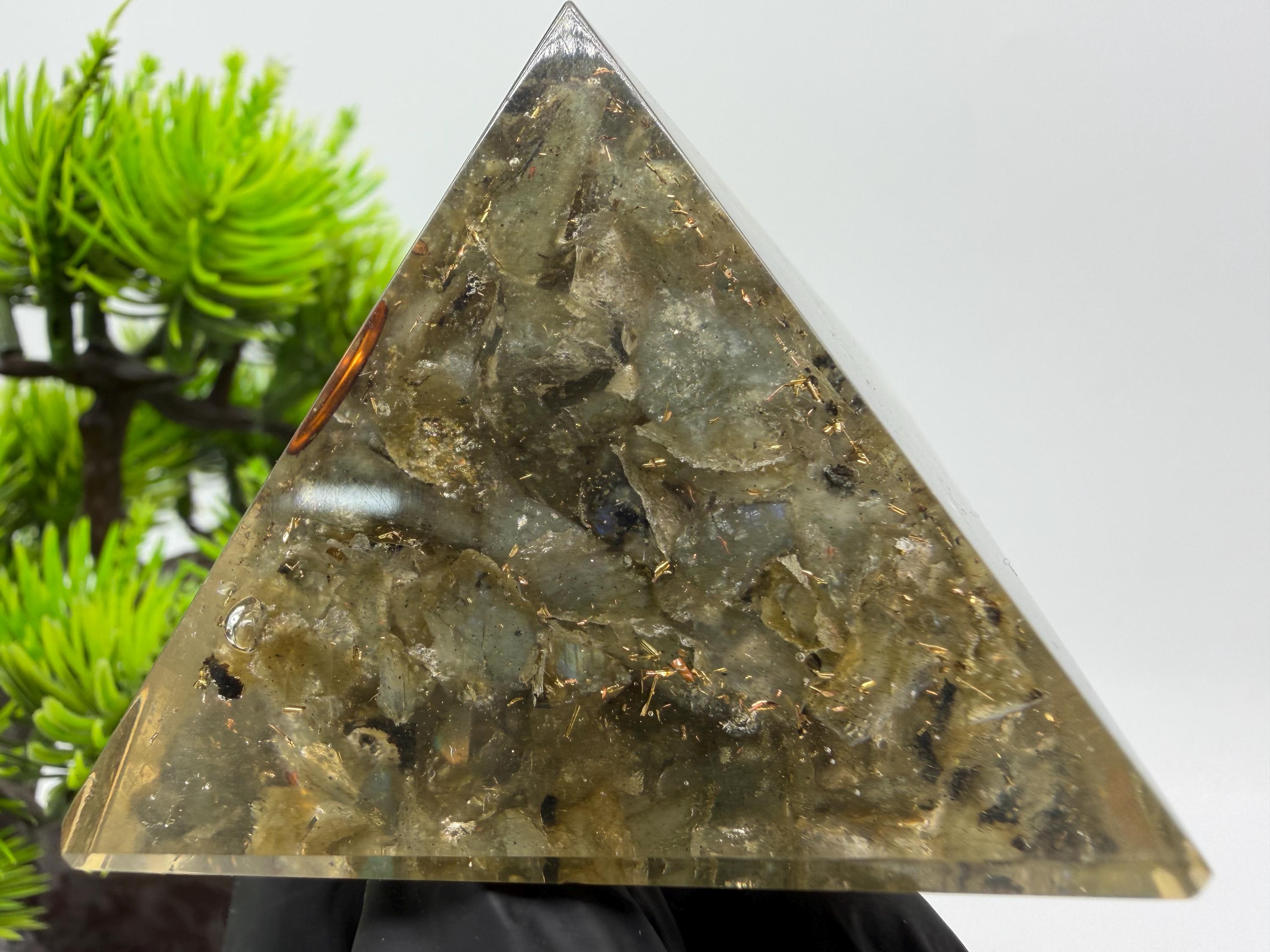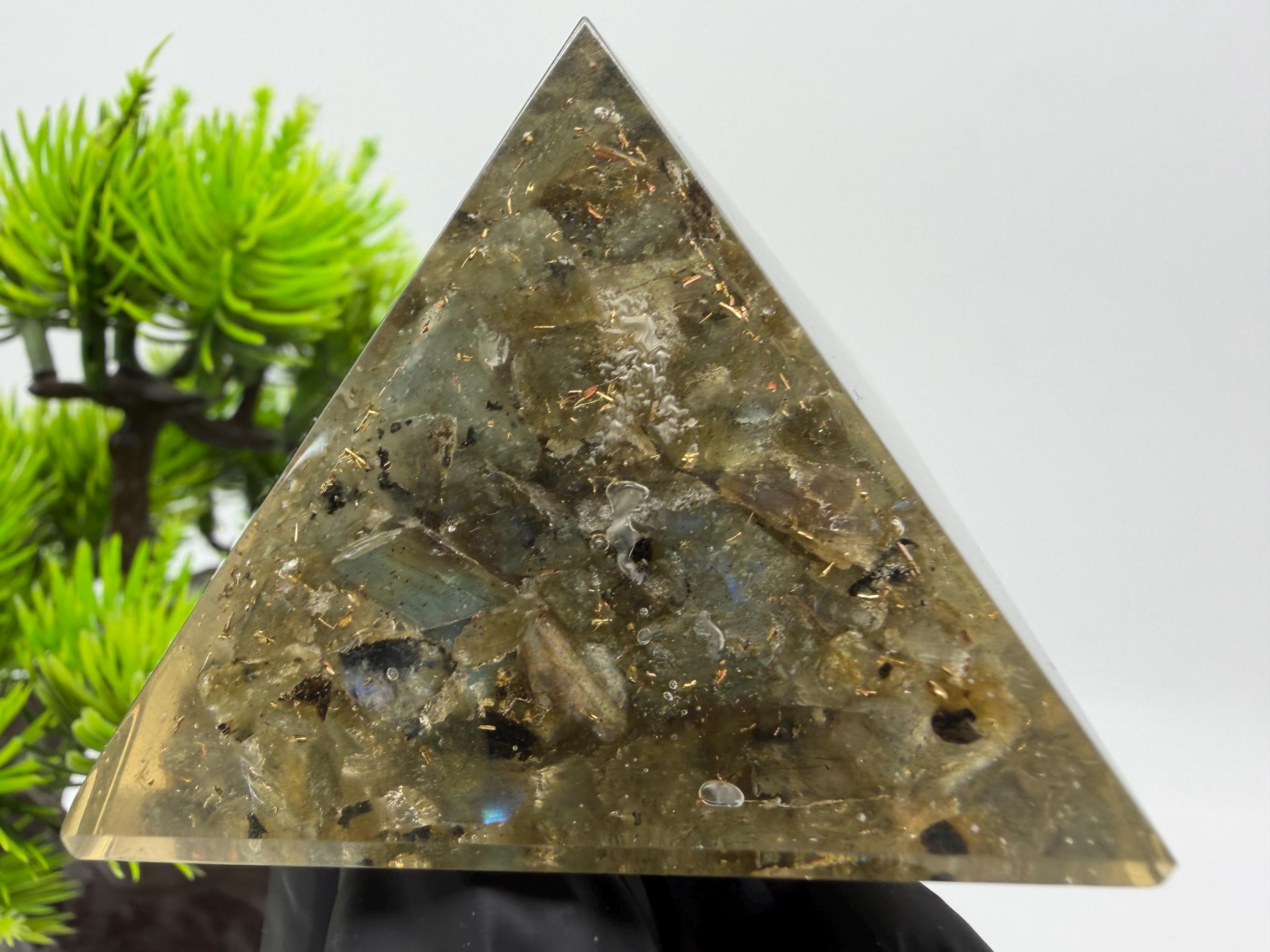 Discover the power of orgonite with this handmade resin pyramid, designed to bring harmony, balance, and positive energy into your space.