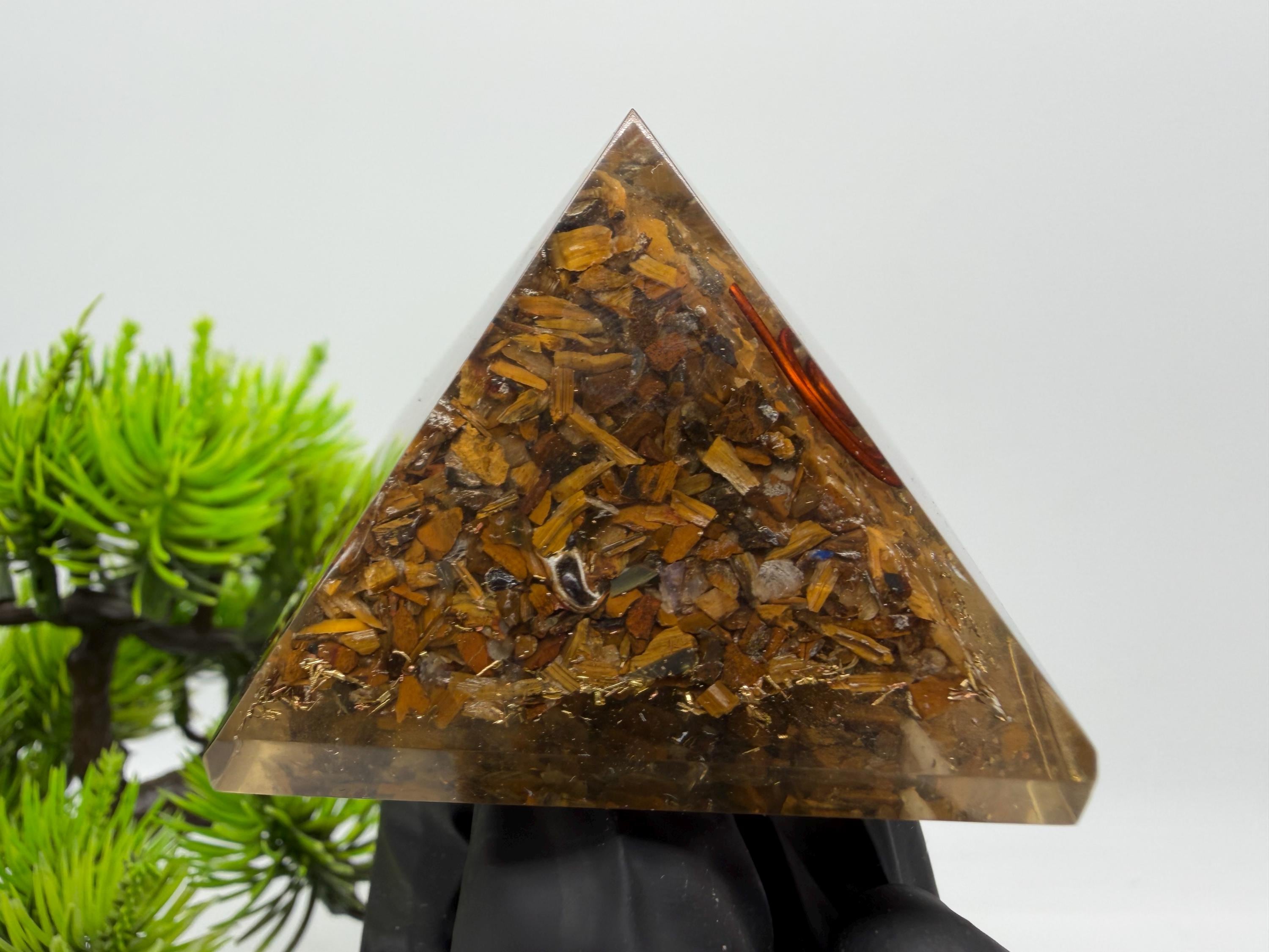 Discover the power of orgonite with this handmade resin pyramid, designed to bring harmony, balance, and positive energy into your space.