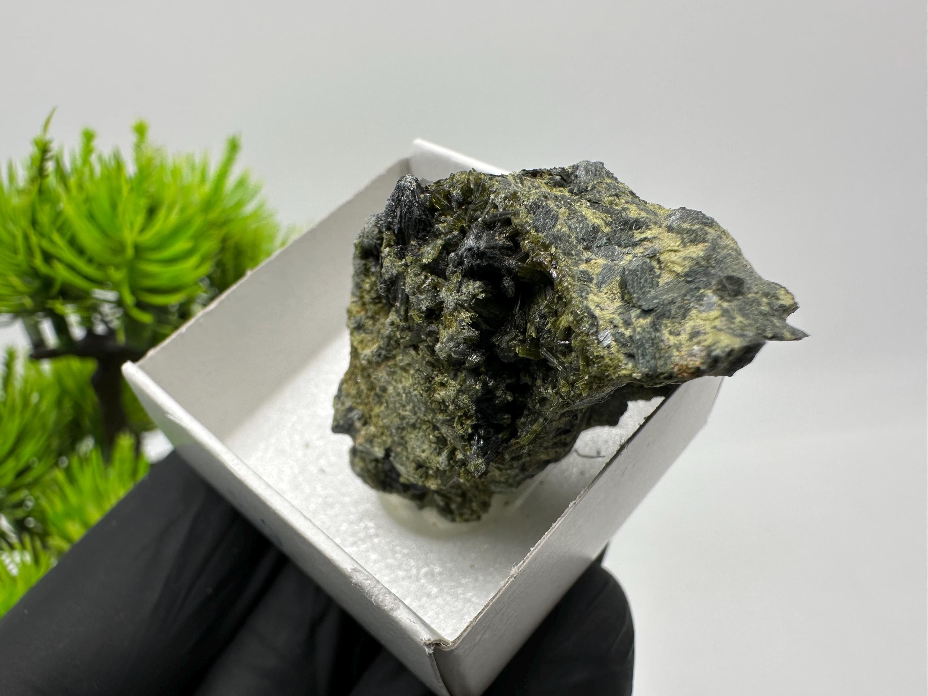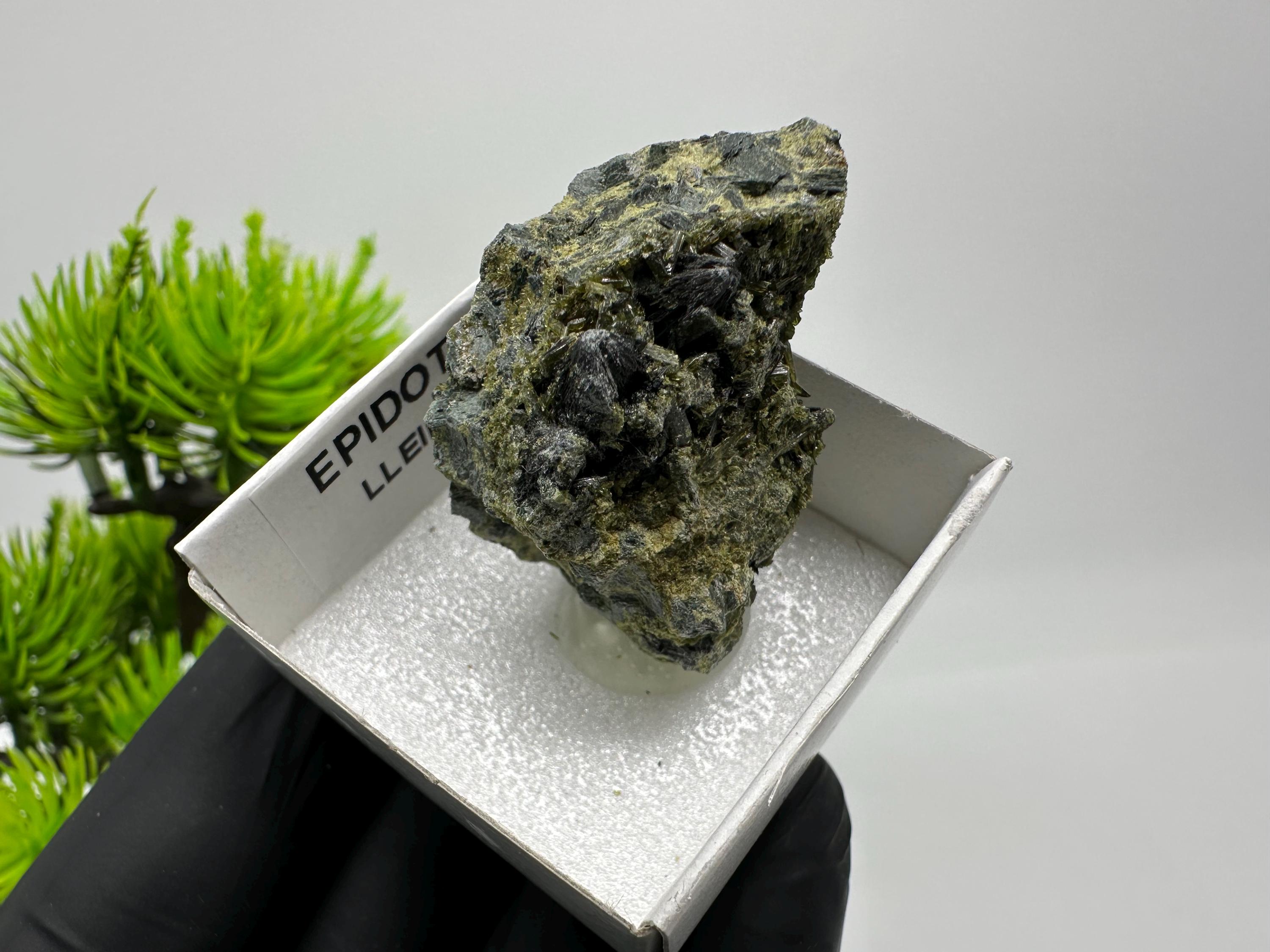 Natural Epidote Crystal from Lleida, Spain – Raw Green Mineral Specimen – Collector’s Stone – Healing Crystal Decor BOX4/4 cm