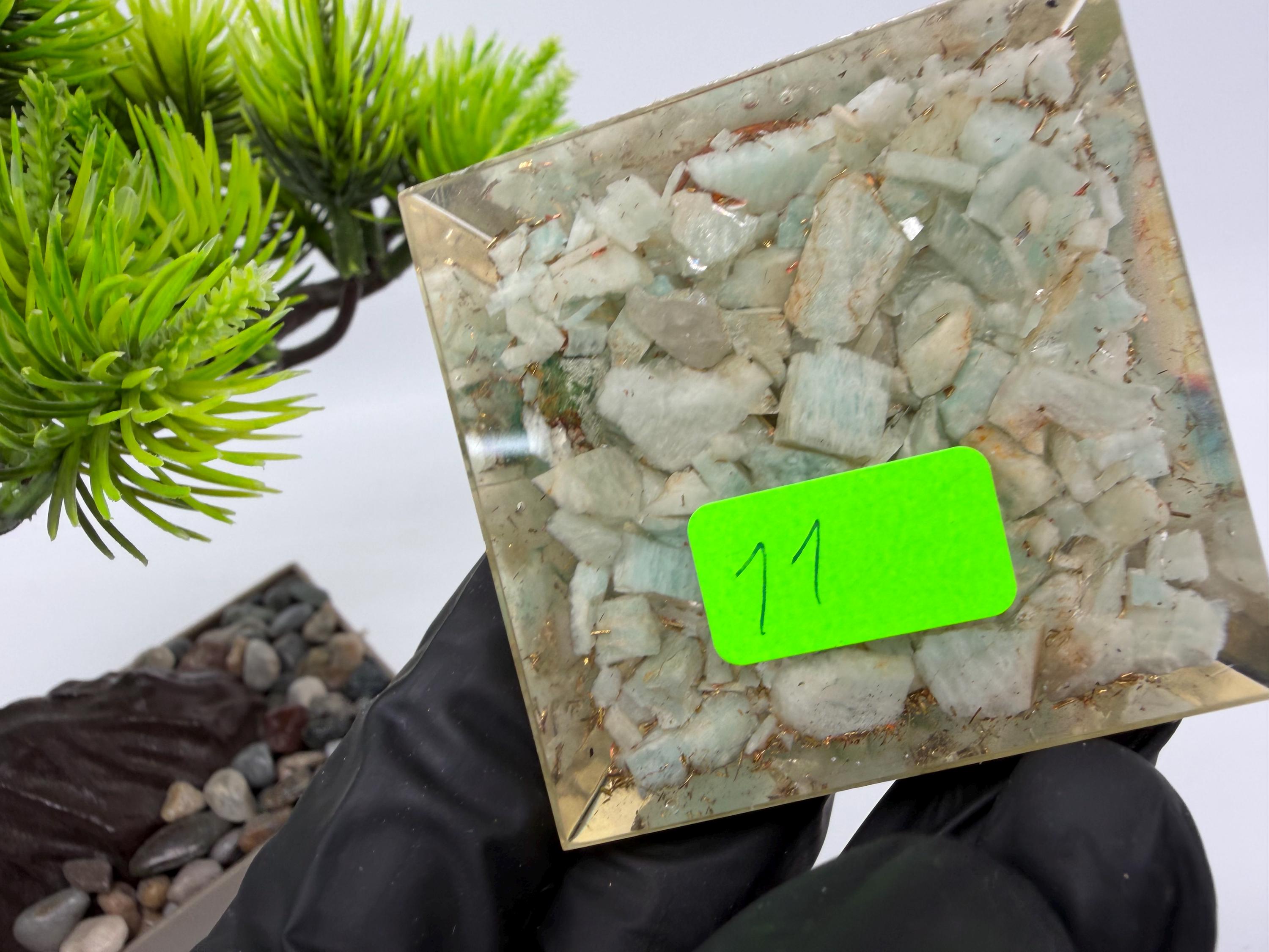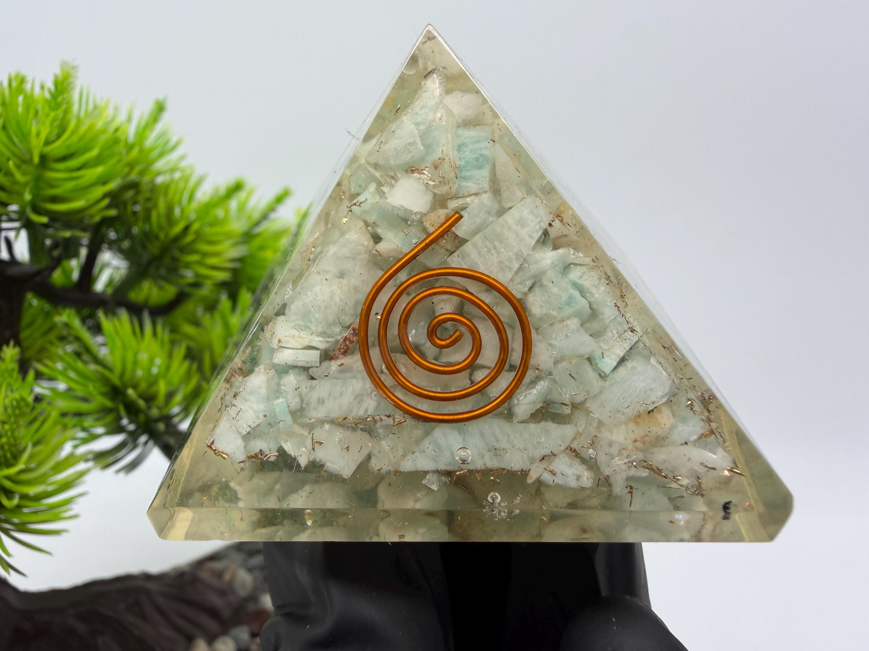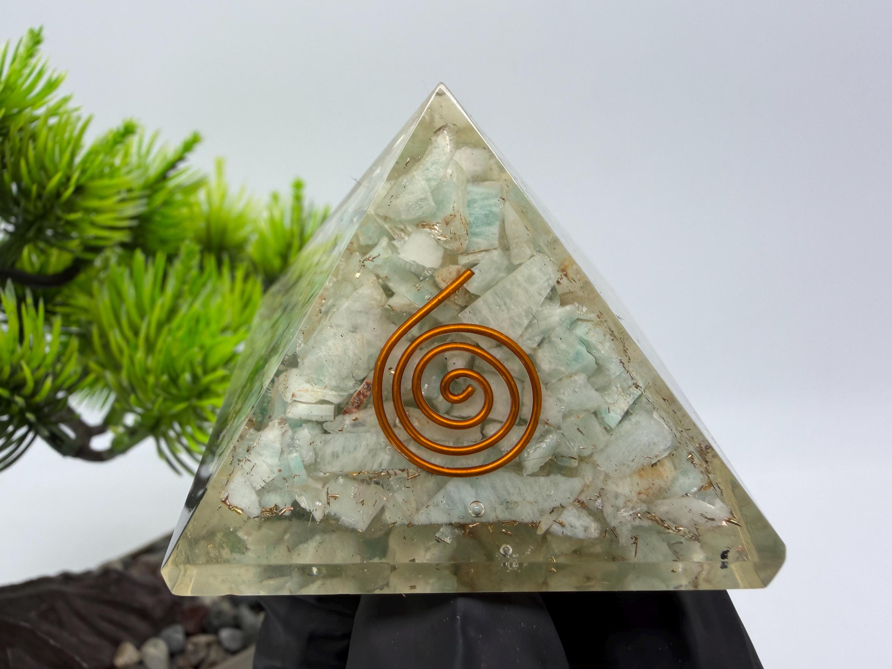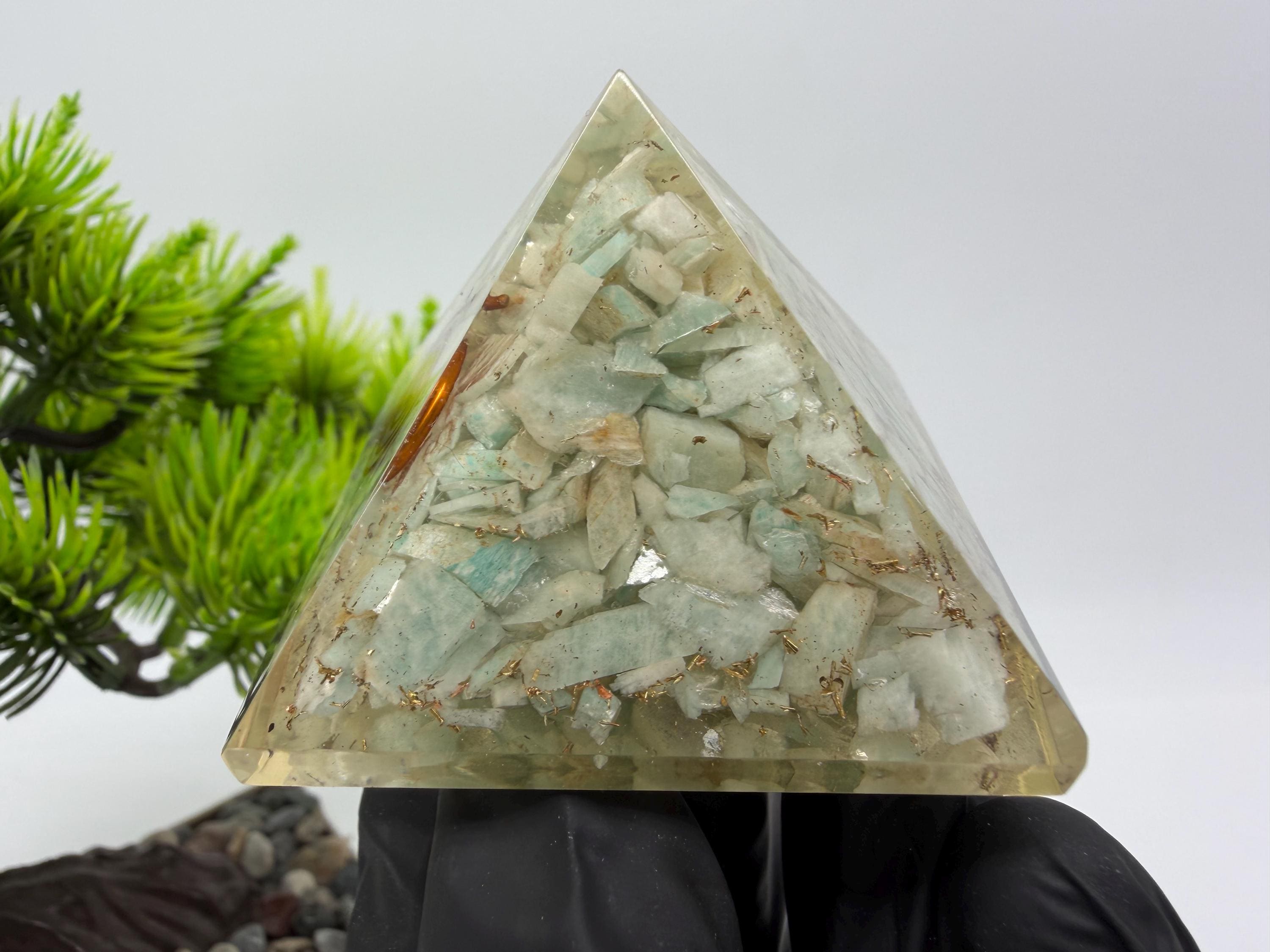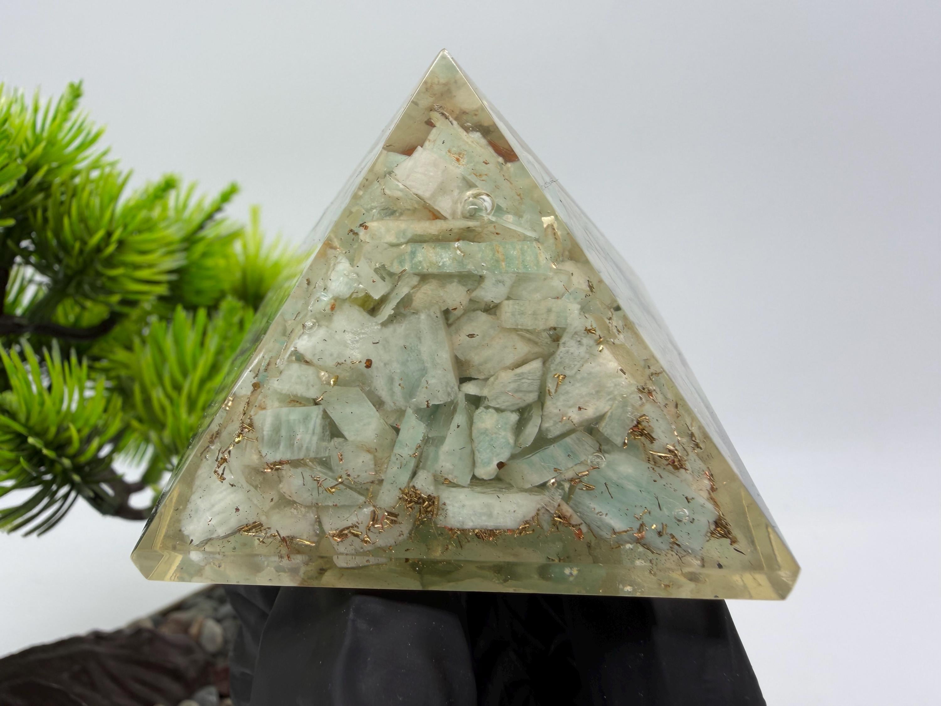 Discover the power of orgonite with this handmade resin pyramid, designed to bring harmony, balance, and positive energy into your space.