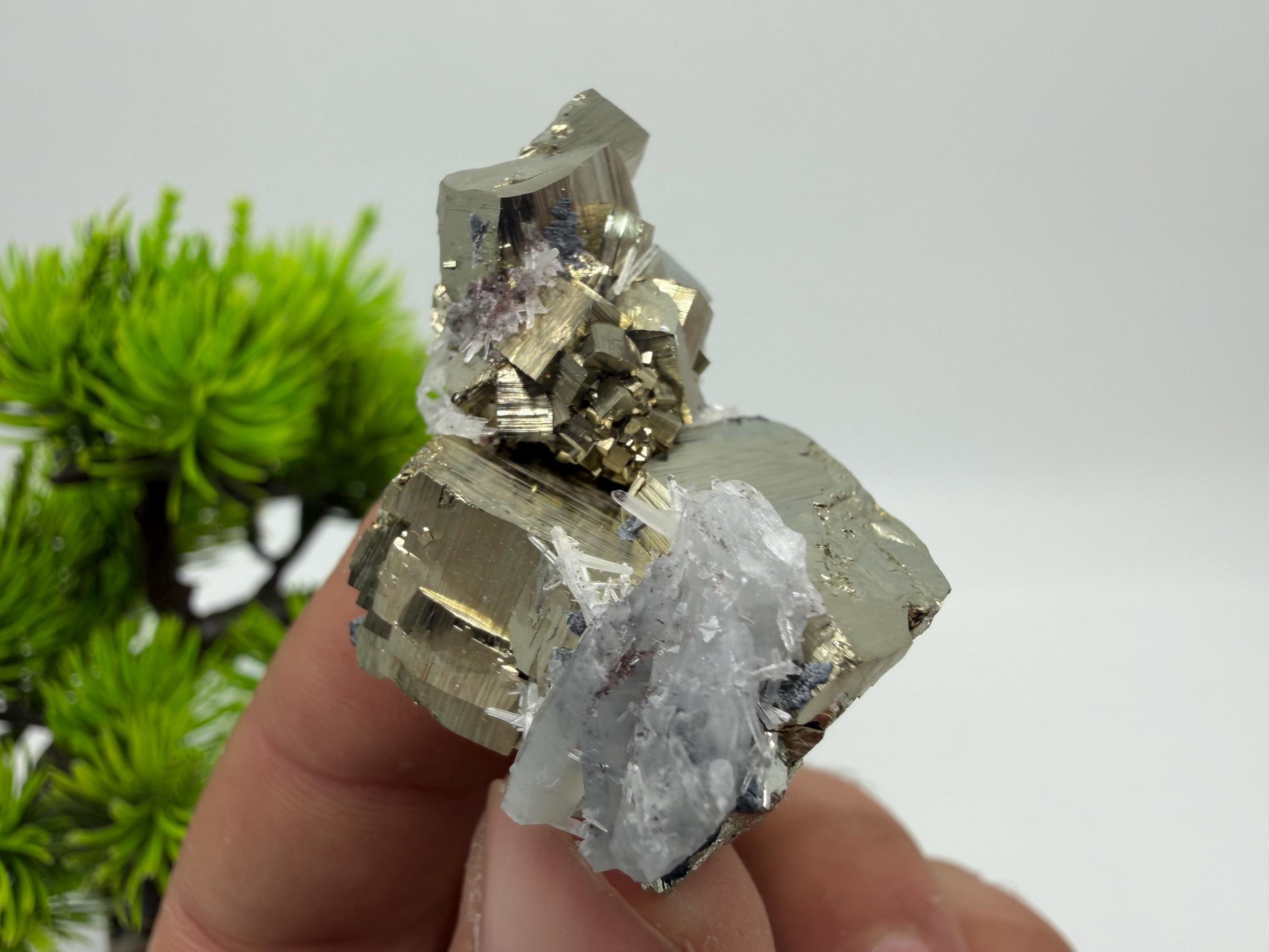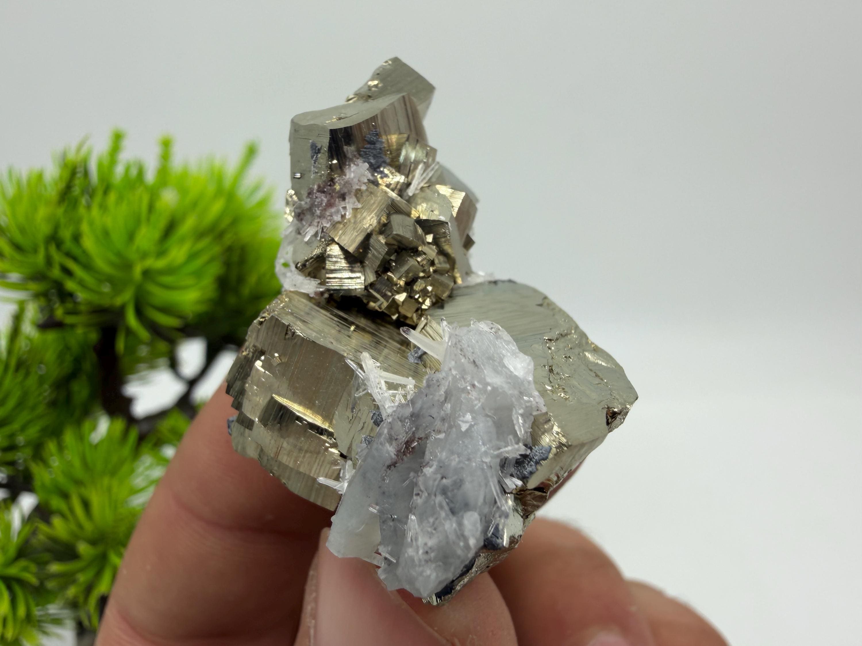 Pyrite on Quartz Specimen, Natural Mineral Decor