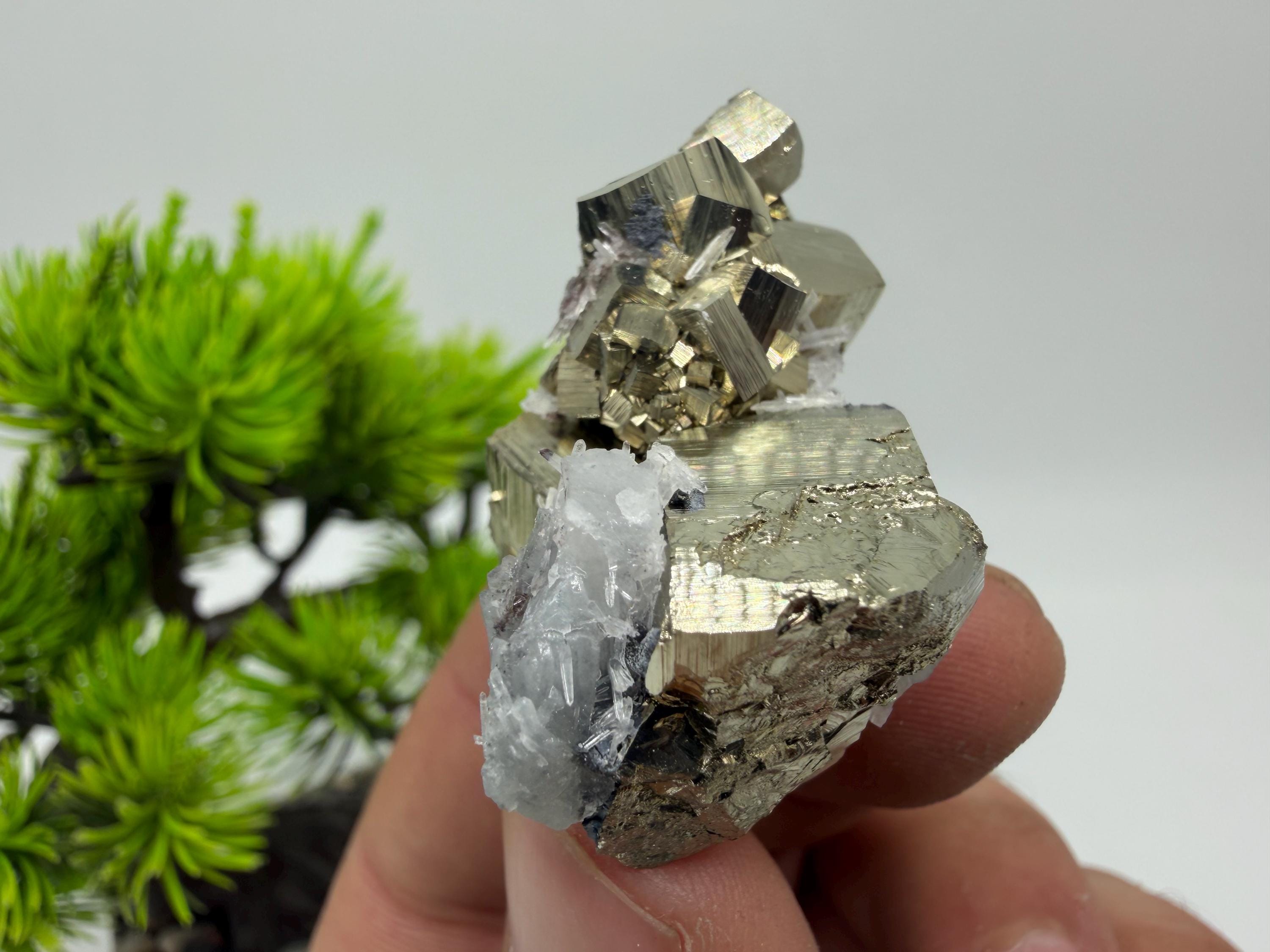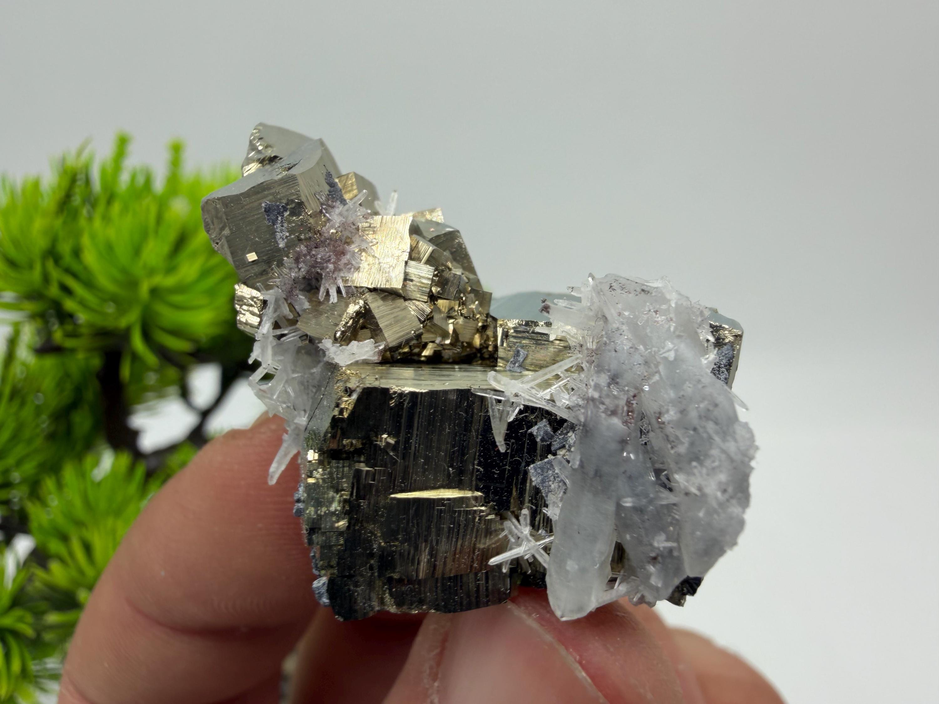 Stunning Pyrite on transparent Quartz natural minerals souvenir crystal gift home decor stone collection crystal 9th September mine Bulgaria 2175