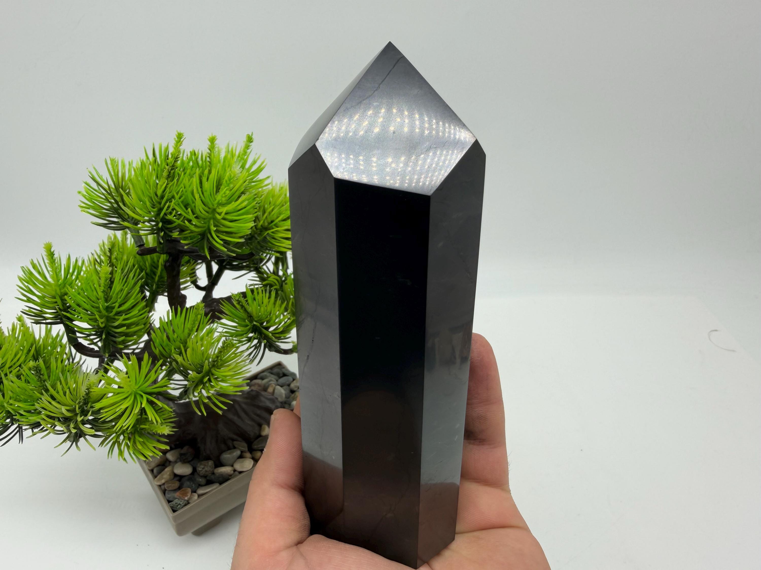 EMF Neutralizer Shungite Stone Tower (15cm), Stone Energy Protection, Crystal Tower Decor, EMF Shield, Healing Crystal Tower, 5G Protection