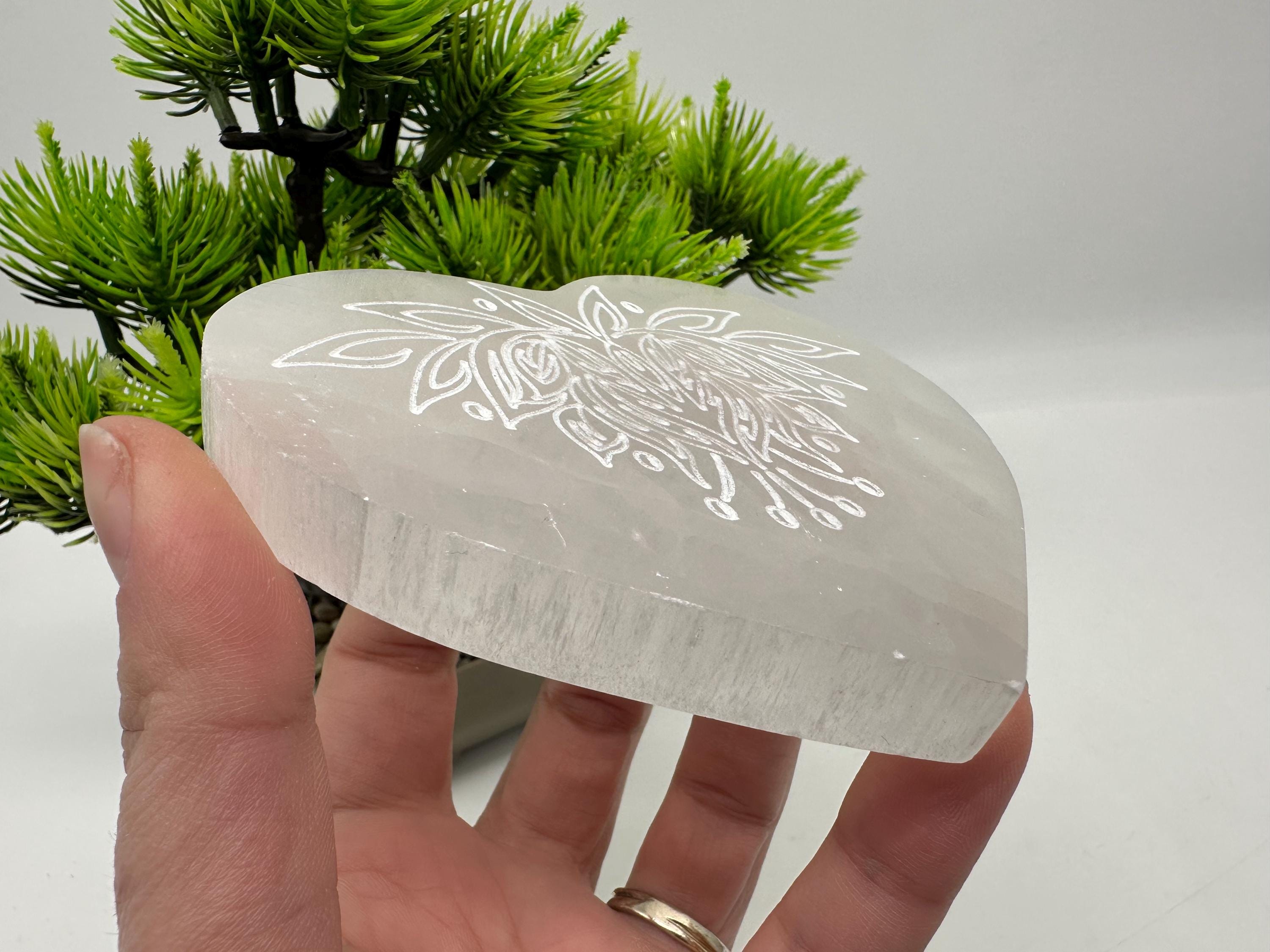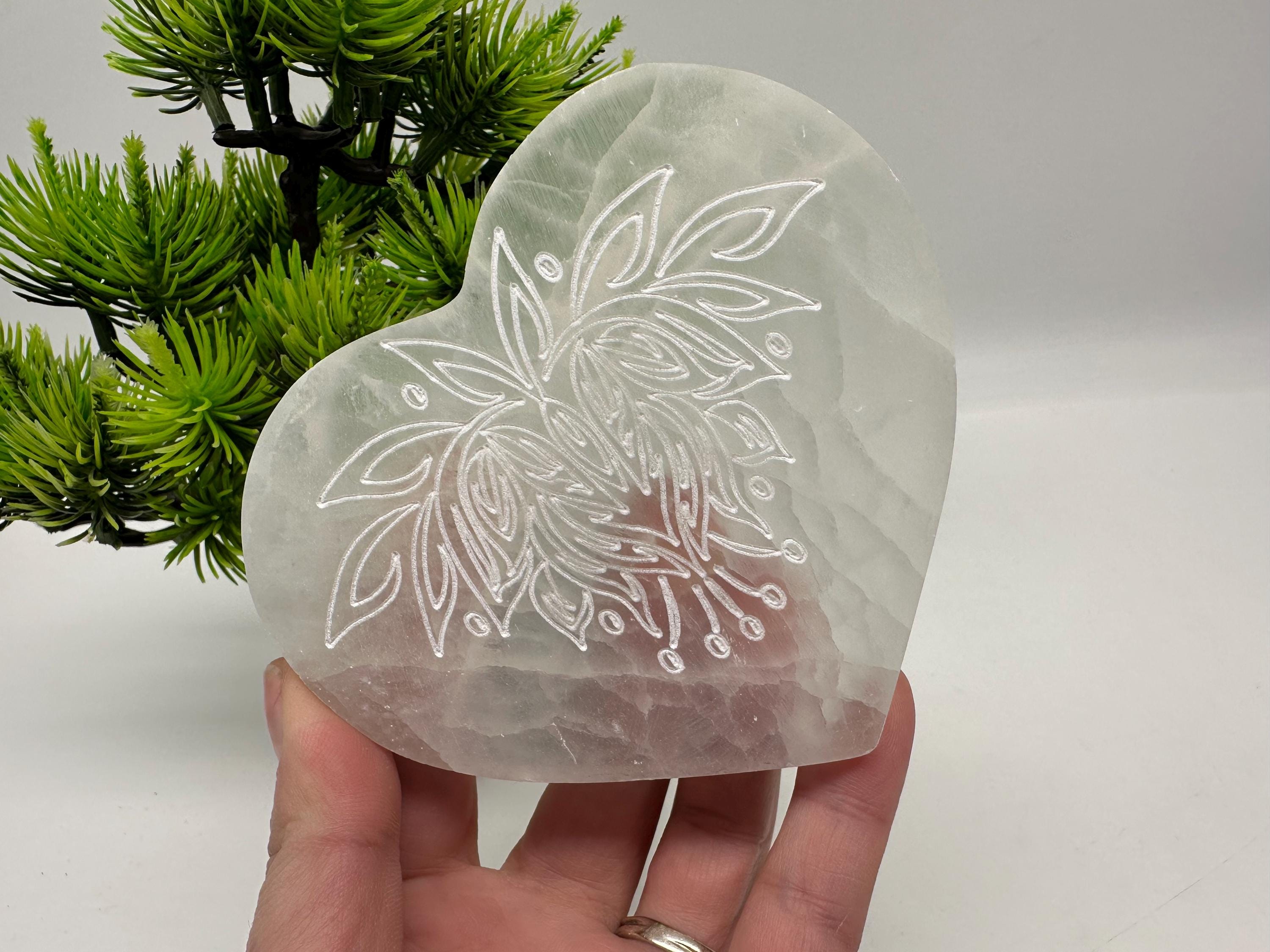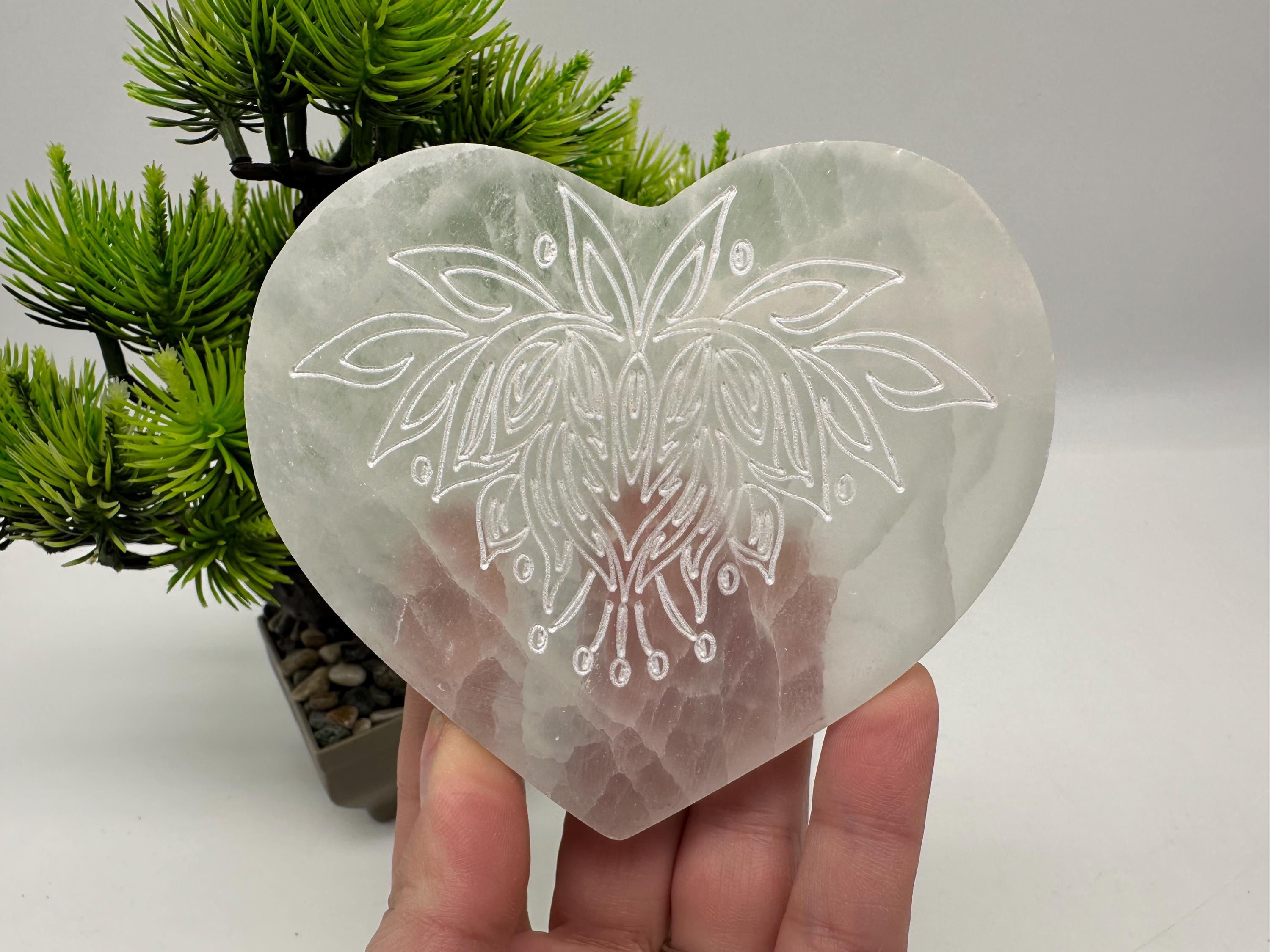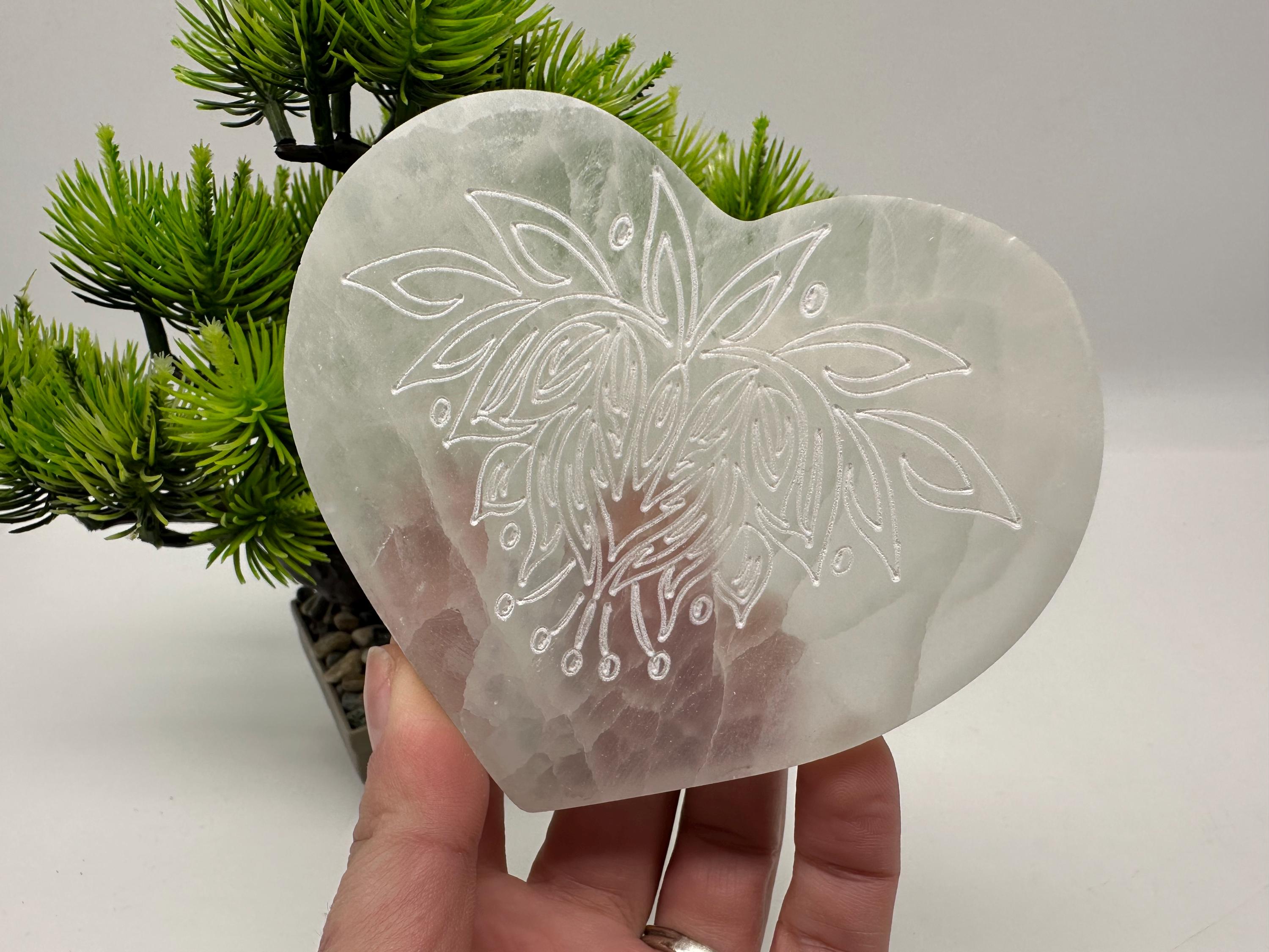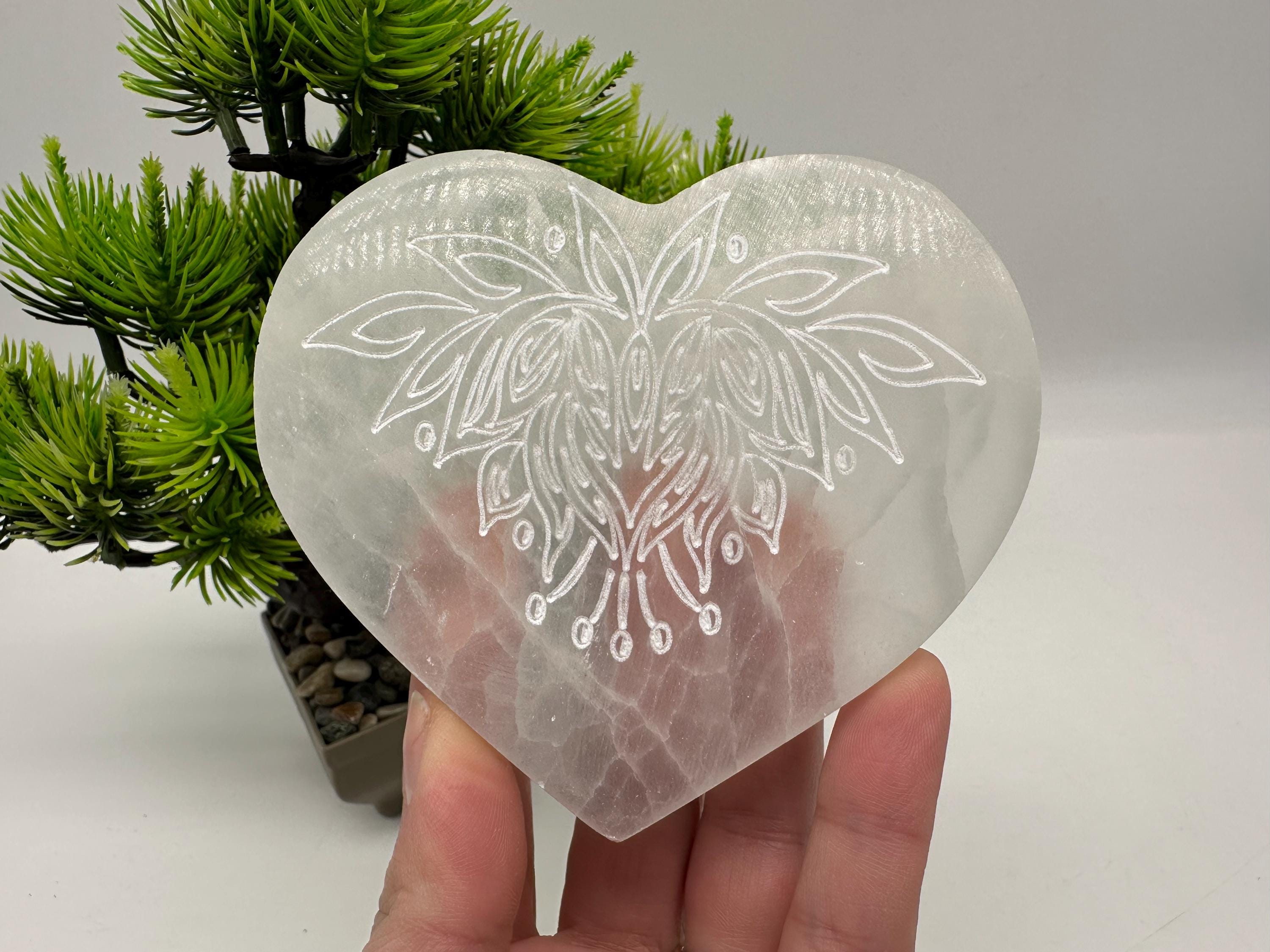 Place your crystals, rings, bracelets, or other sacred items on this selenite heart plate to cleanse and recharge their energy. It also makes a beautiful addition to your altar, meditation space, yoga room, or spiritual decor.