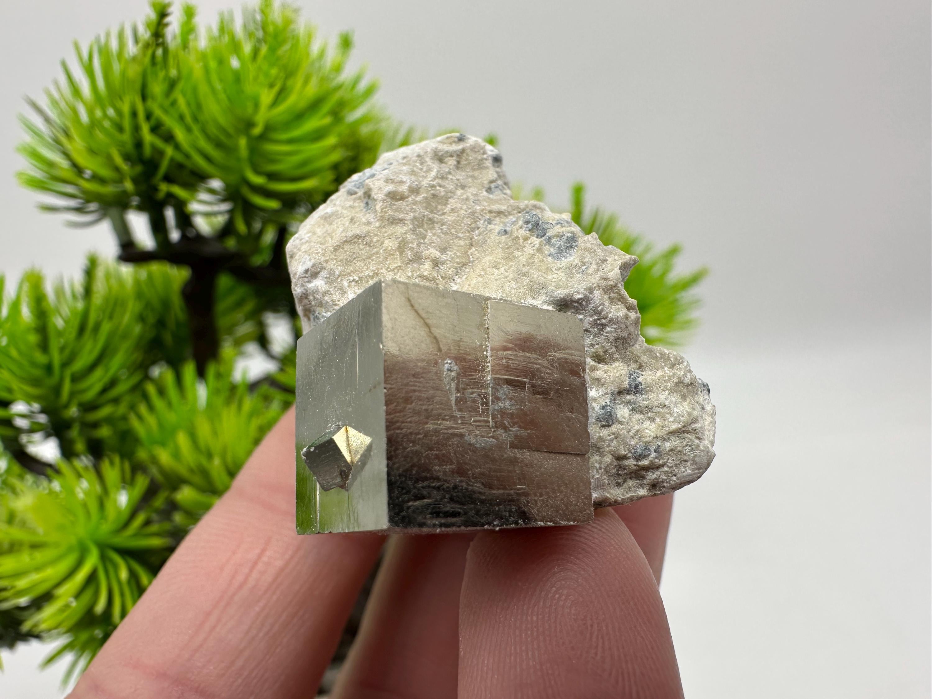Pyrite Cube on Matrix from Spain – Natural Pyrite Crystal – Cubic Pyrite Specimen – Collector Mineral – Fool’s Gold Crystal – Display Piece
