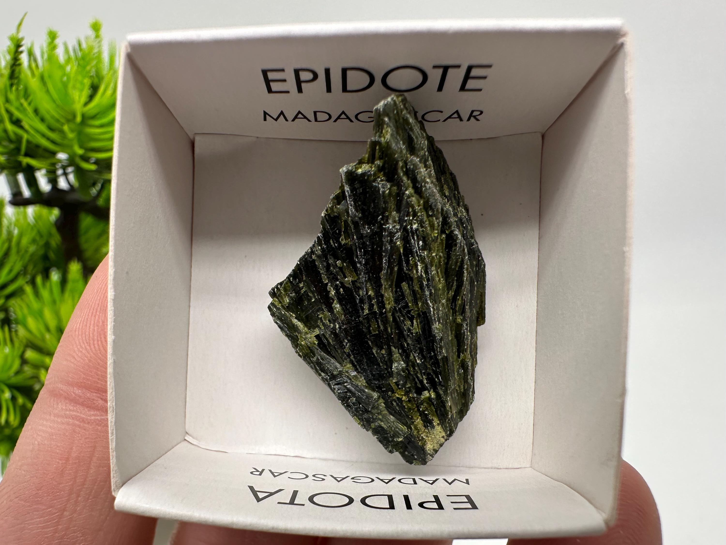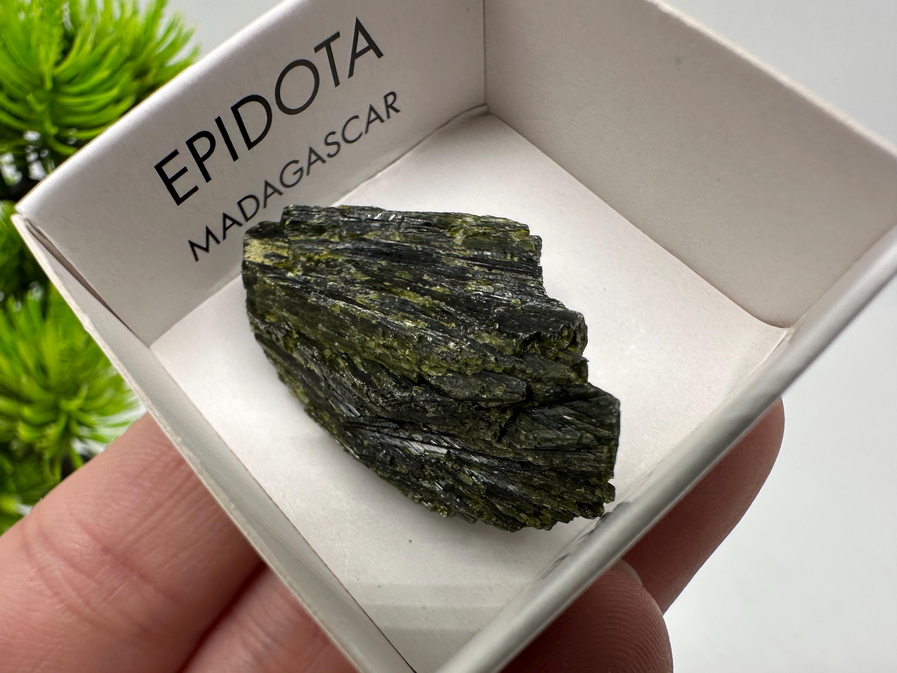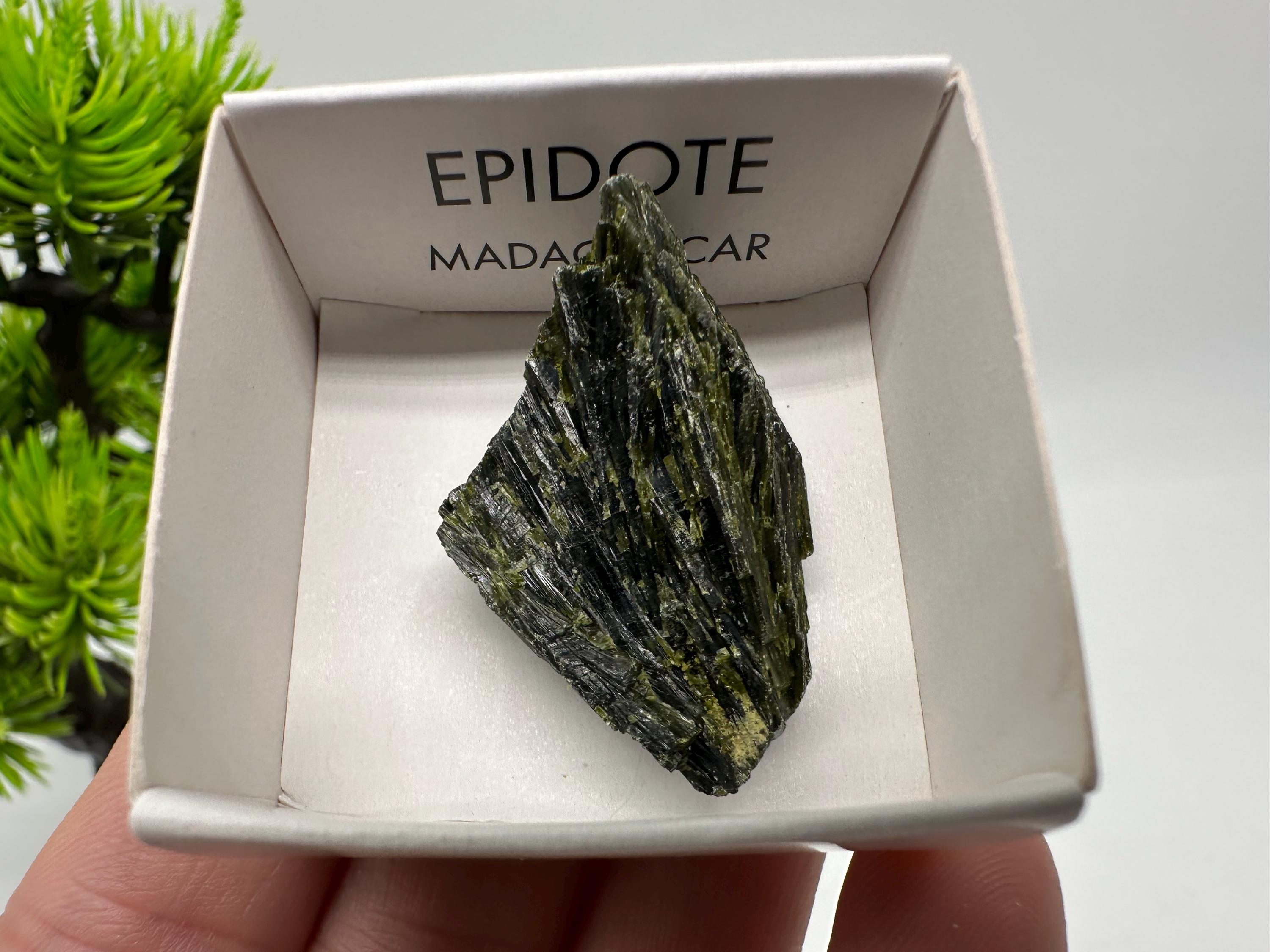 Natural Epidote Crystal Specimen – Madagascar Green Collector Stone (4cm Box)