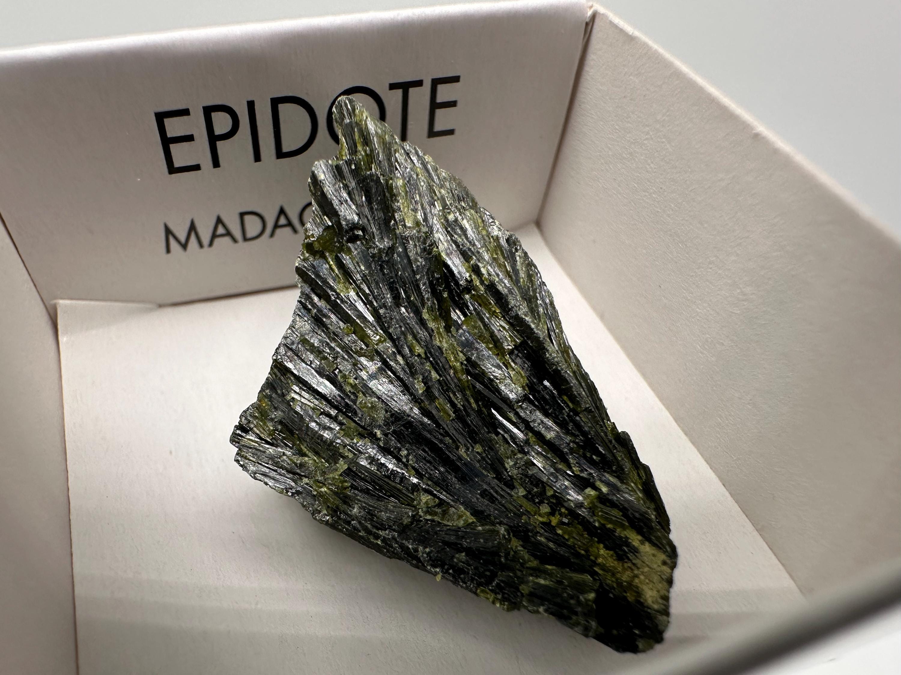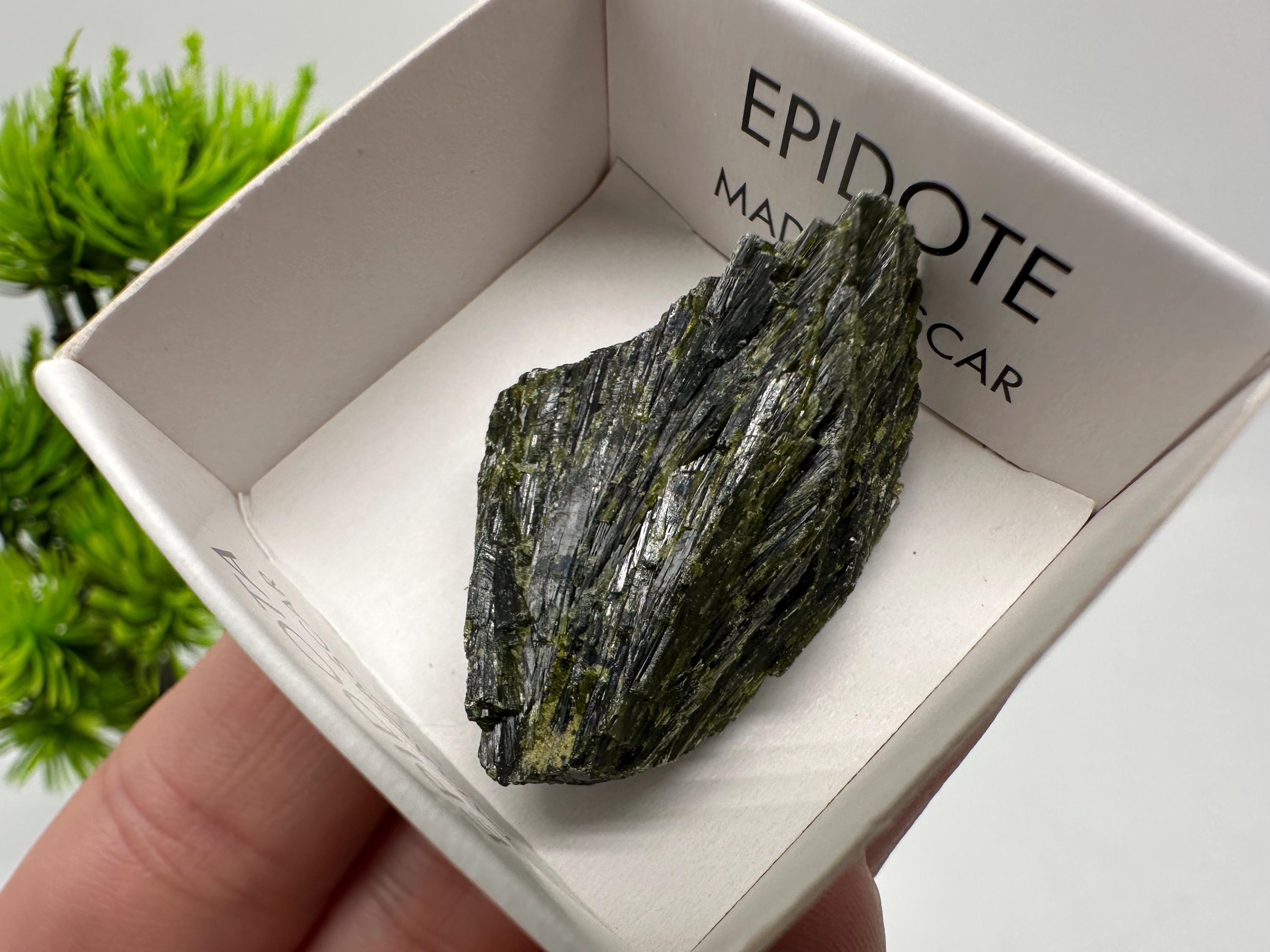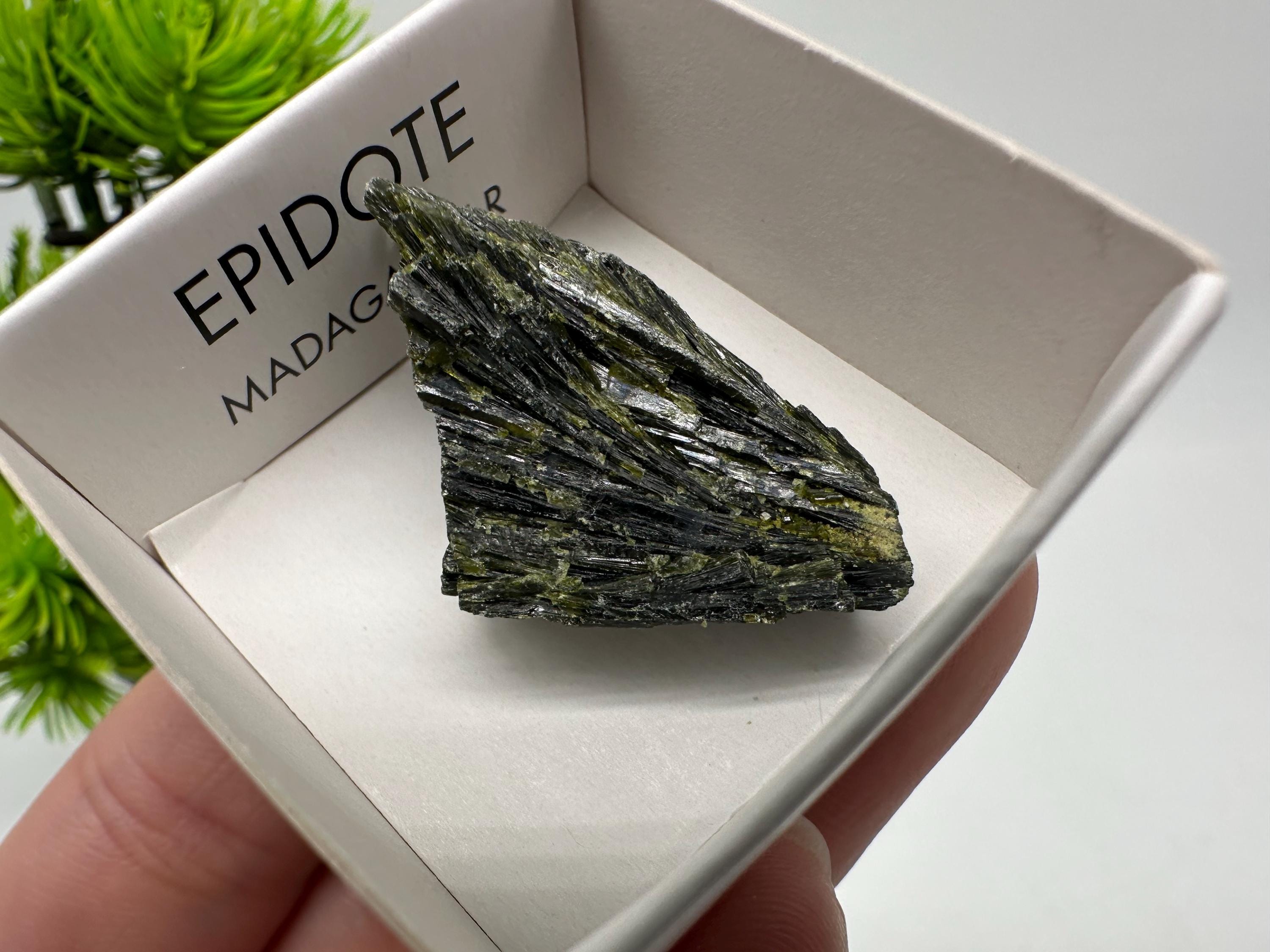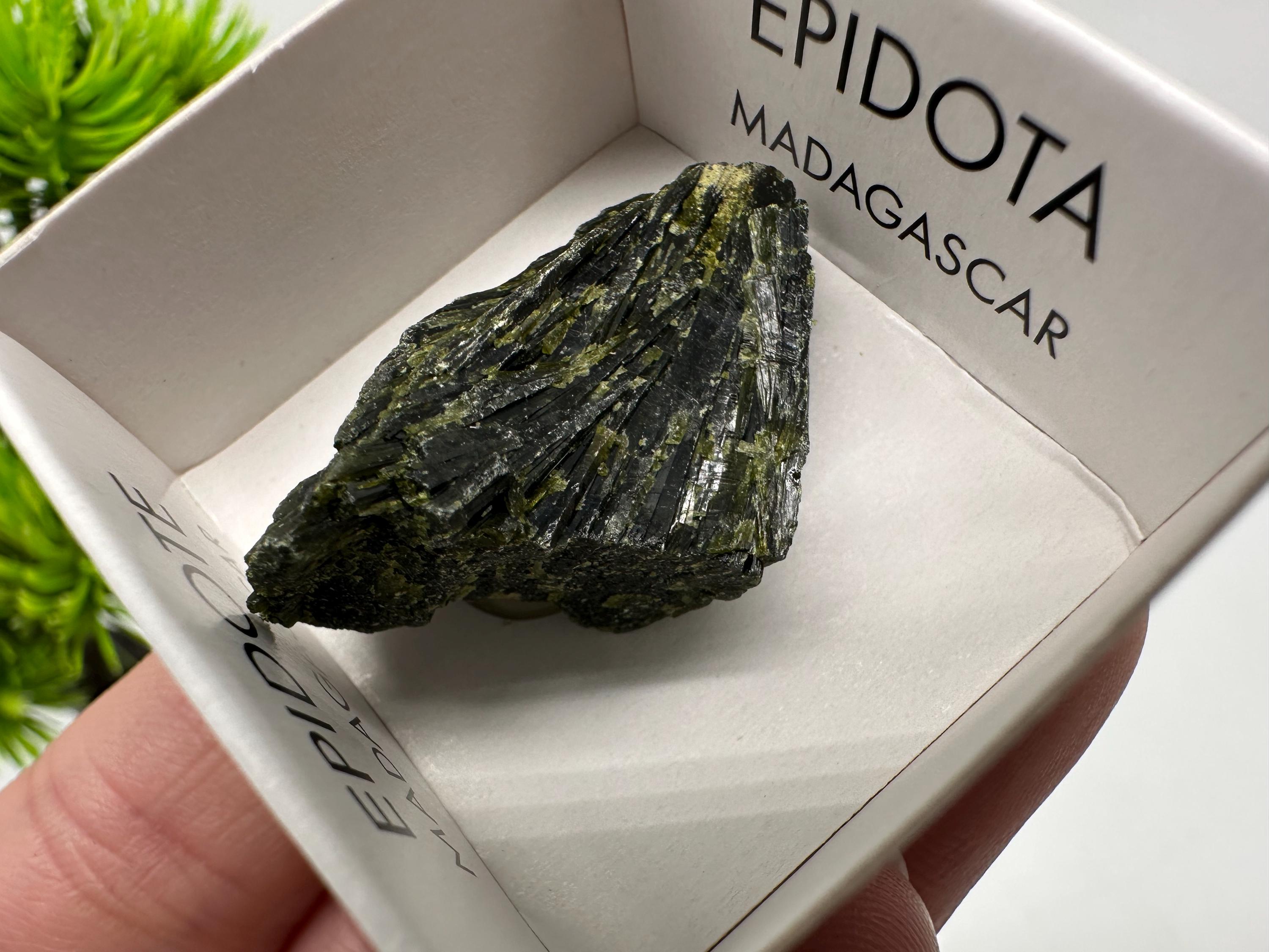 Natural Epidote Crystal Specimen – Madagascar Green Collector Stone (4cm Box)
