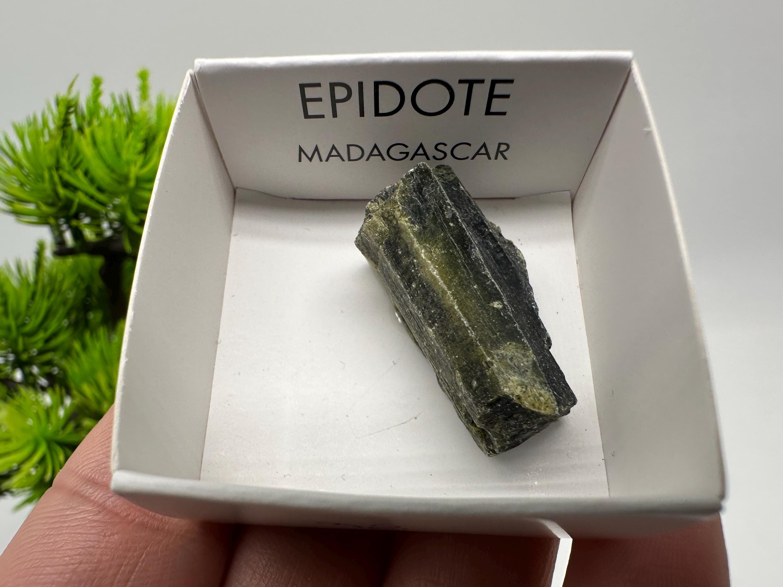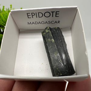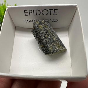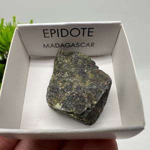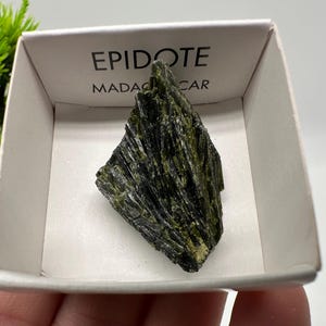 This beautiful natural epidote specimen from Madagascar features deep green tones and a raw, earthy texture that highlights its natural formation. Despite its small size, this piece carries strong visual character and is perfect for collectors or crystal enthusiasts. BOX:1 / 32