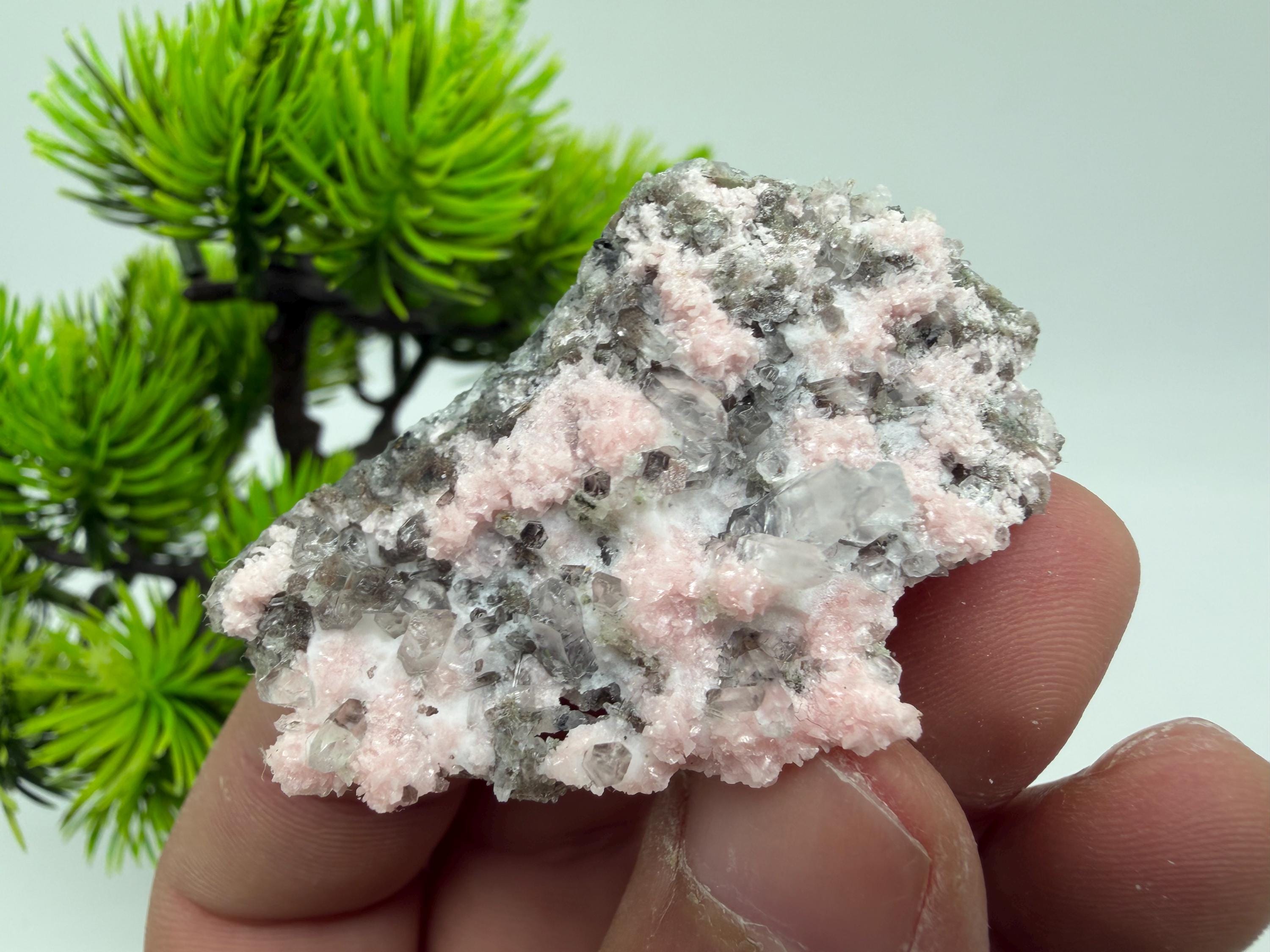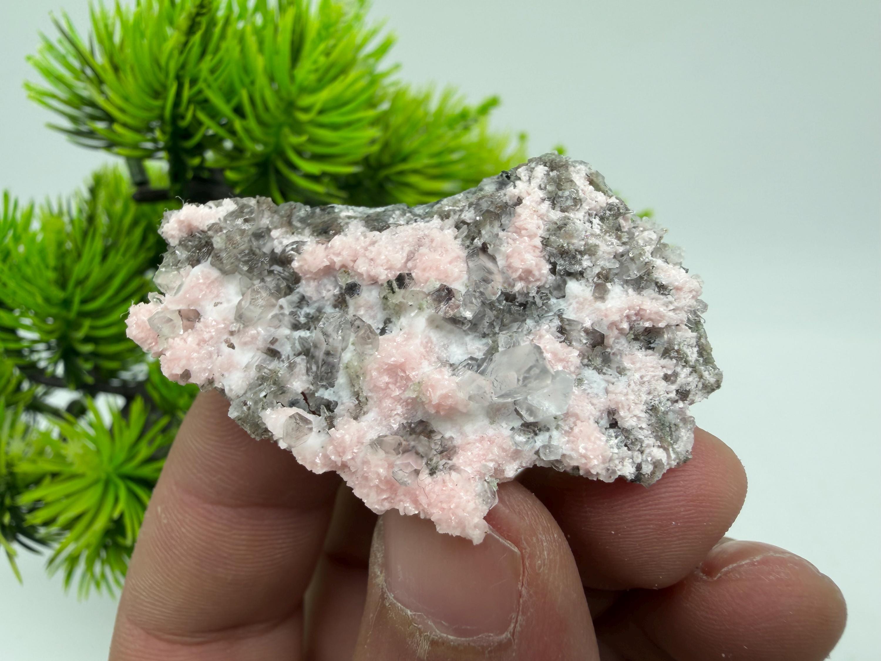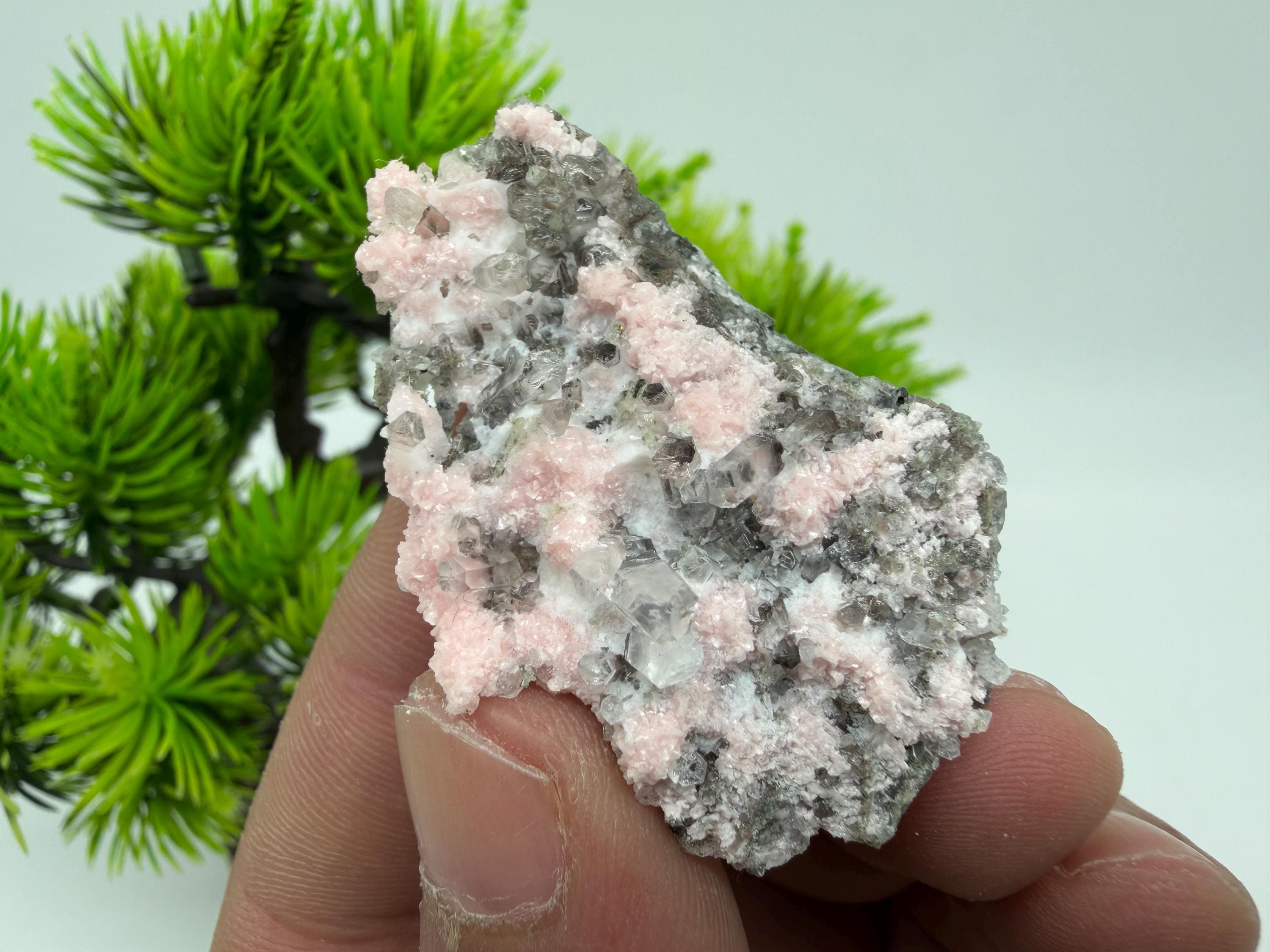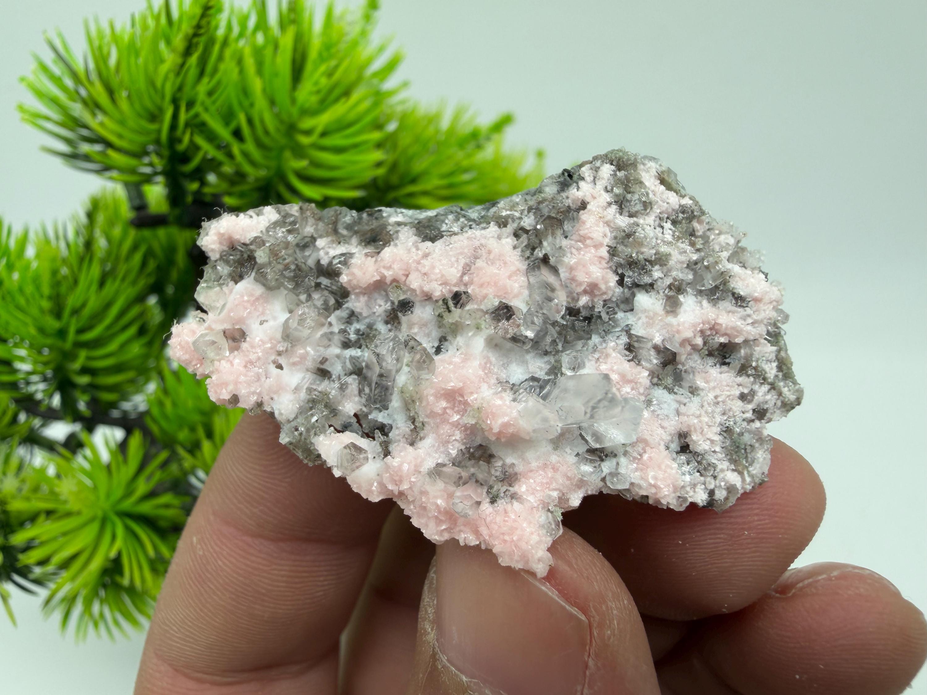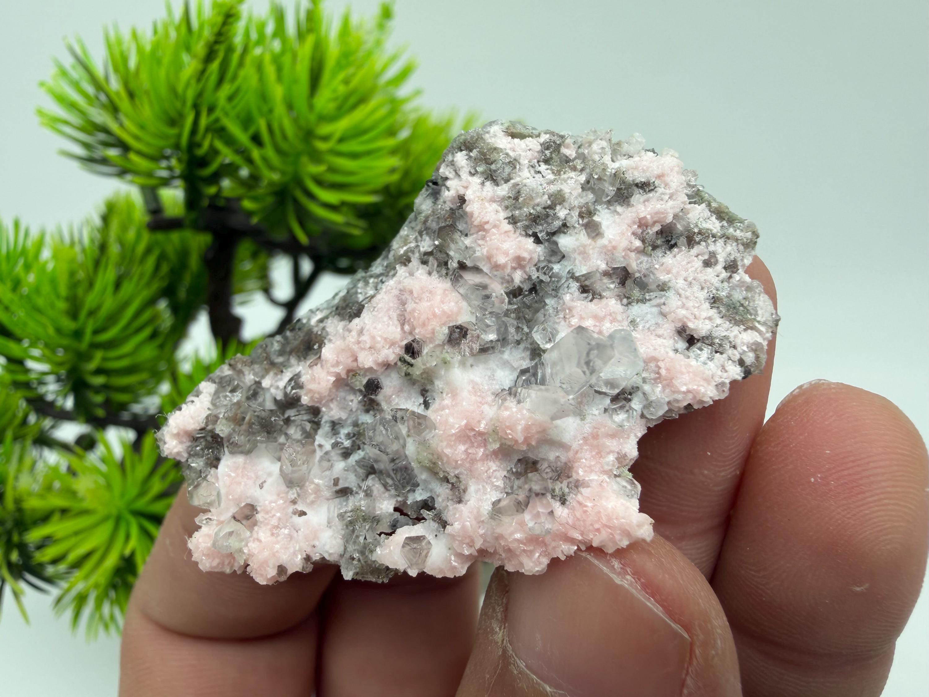 Stunning Rhodochrosite,Calcite on Quartz rare minerals collection crystal home decor souvenir stone Davidcovo Bulgaria top min 2190