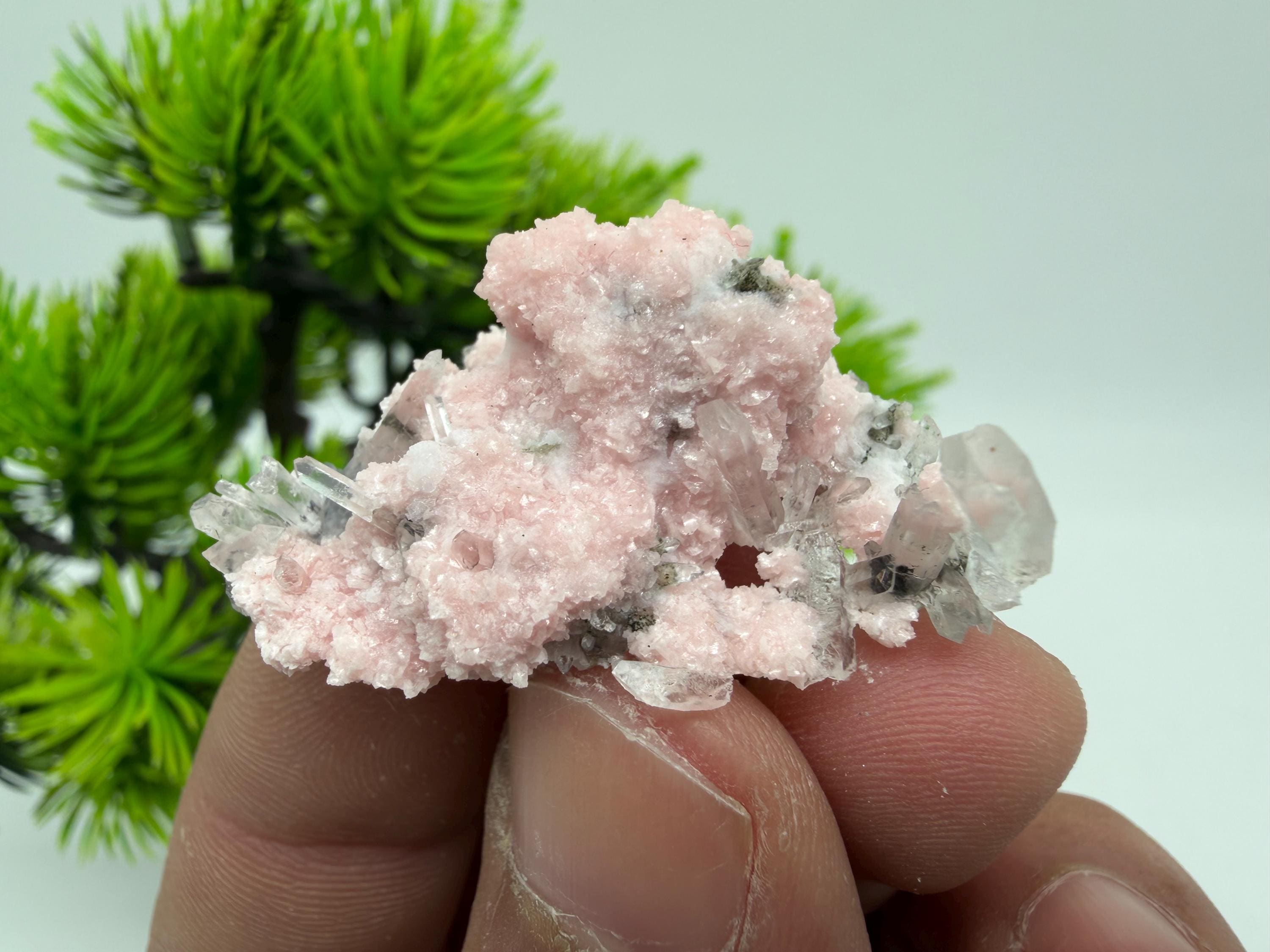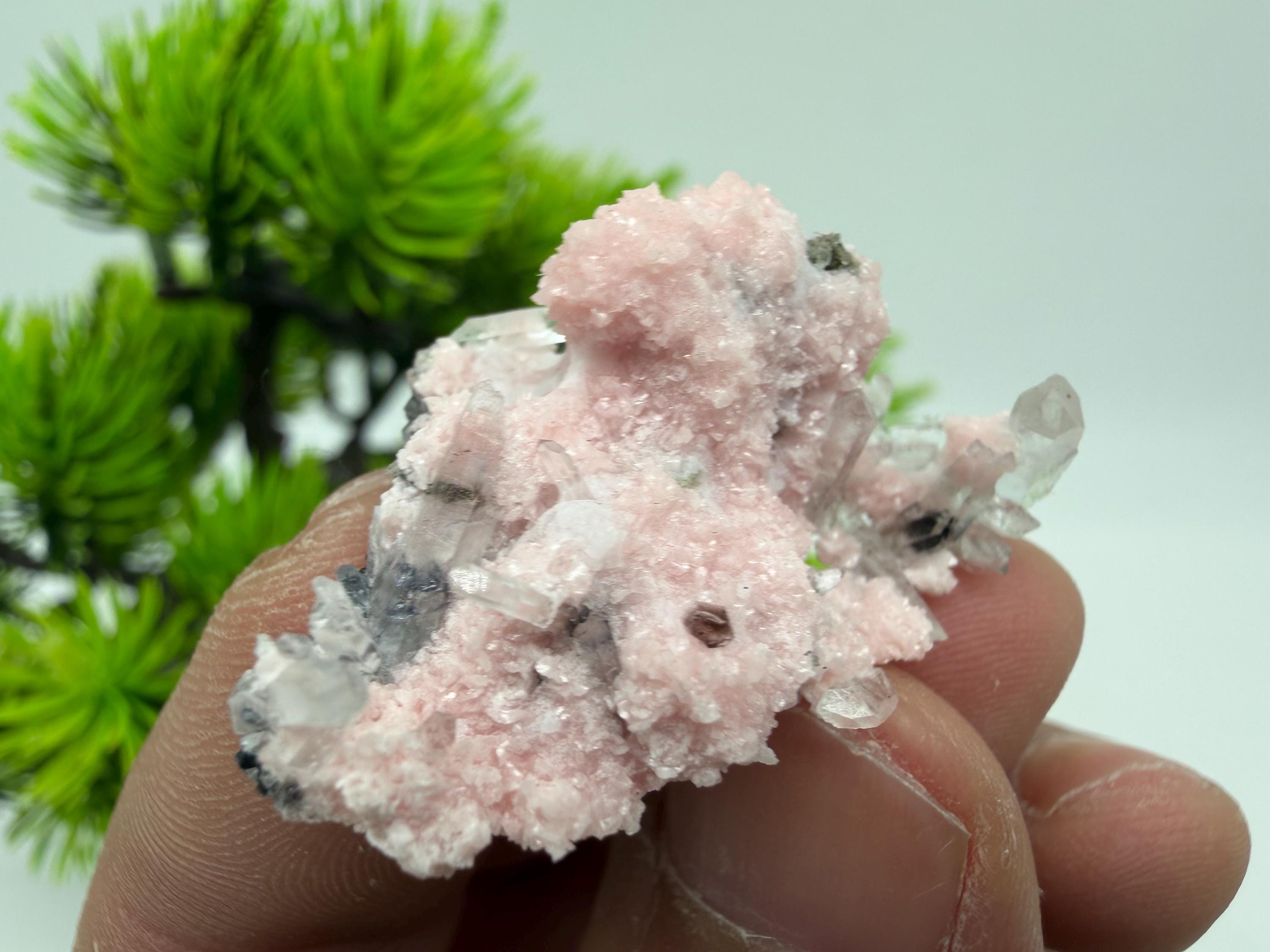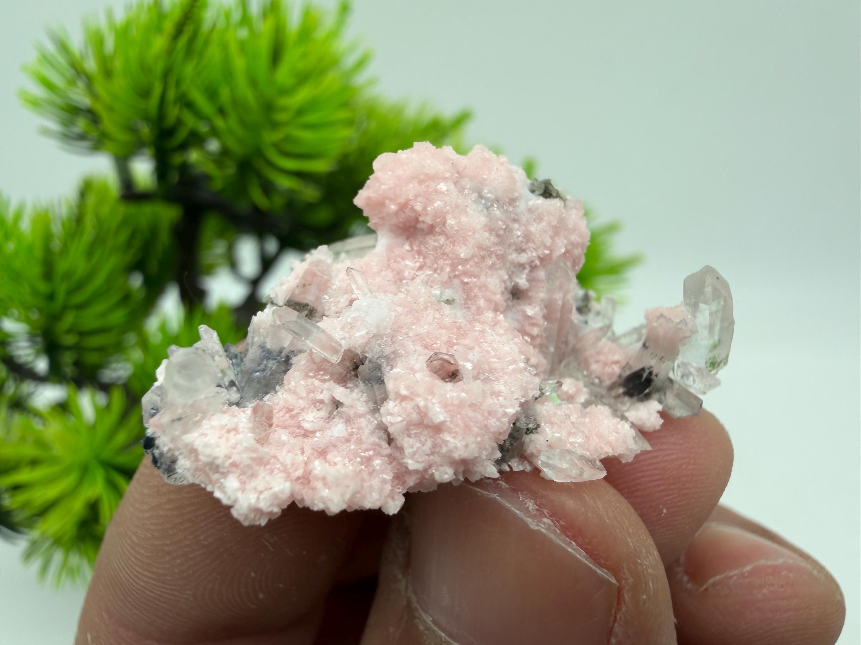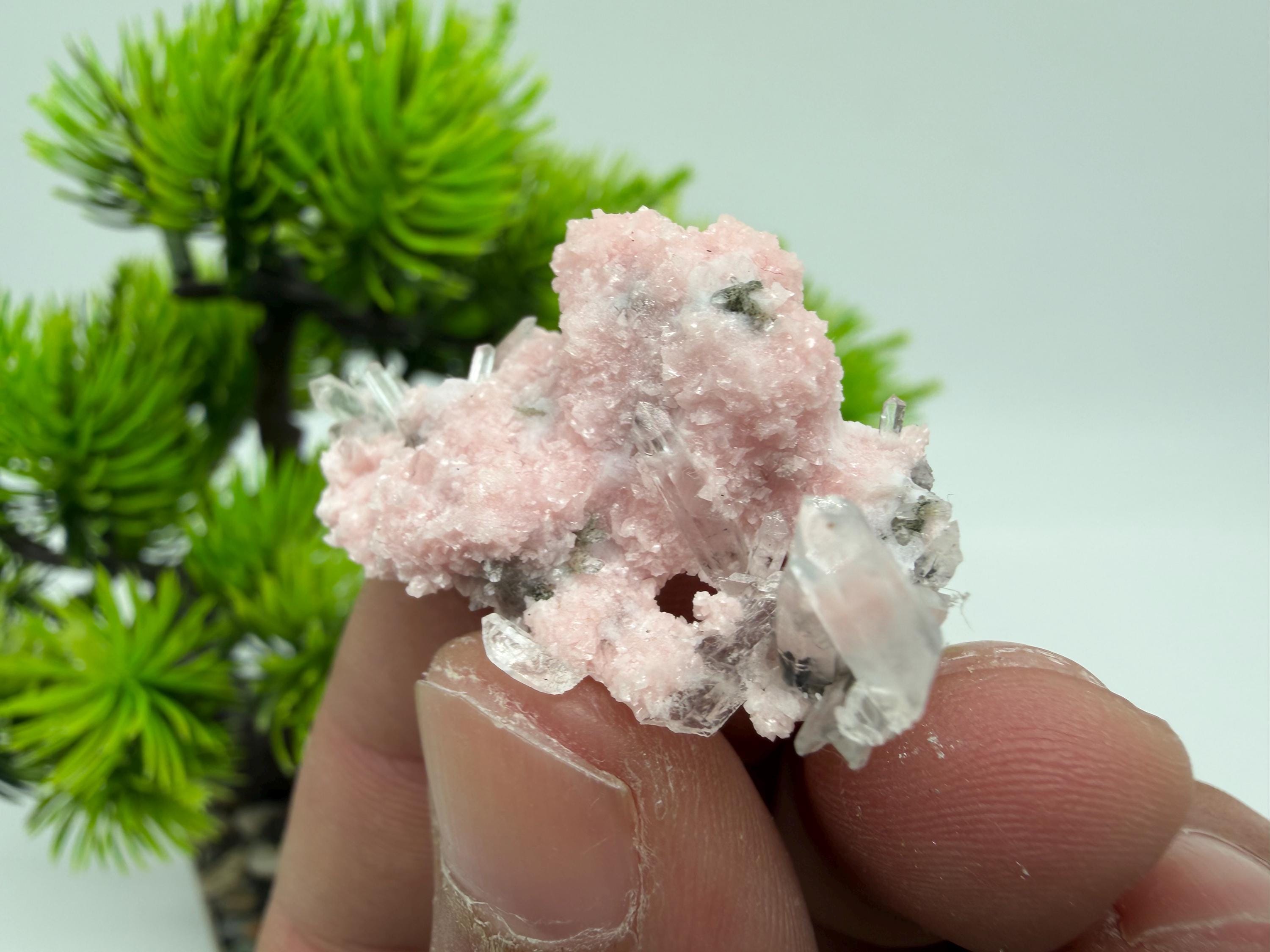 Stunning Rhodochrosite,Calcite on Quartz rare minerals collection crystal home decor souvenir stone Davidcovo Bulgaria top min 2190