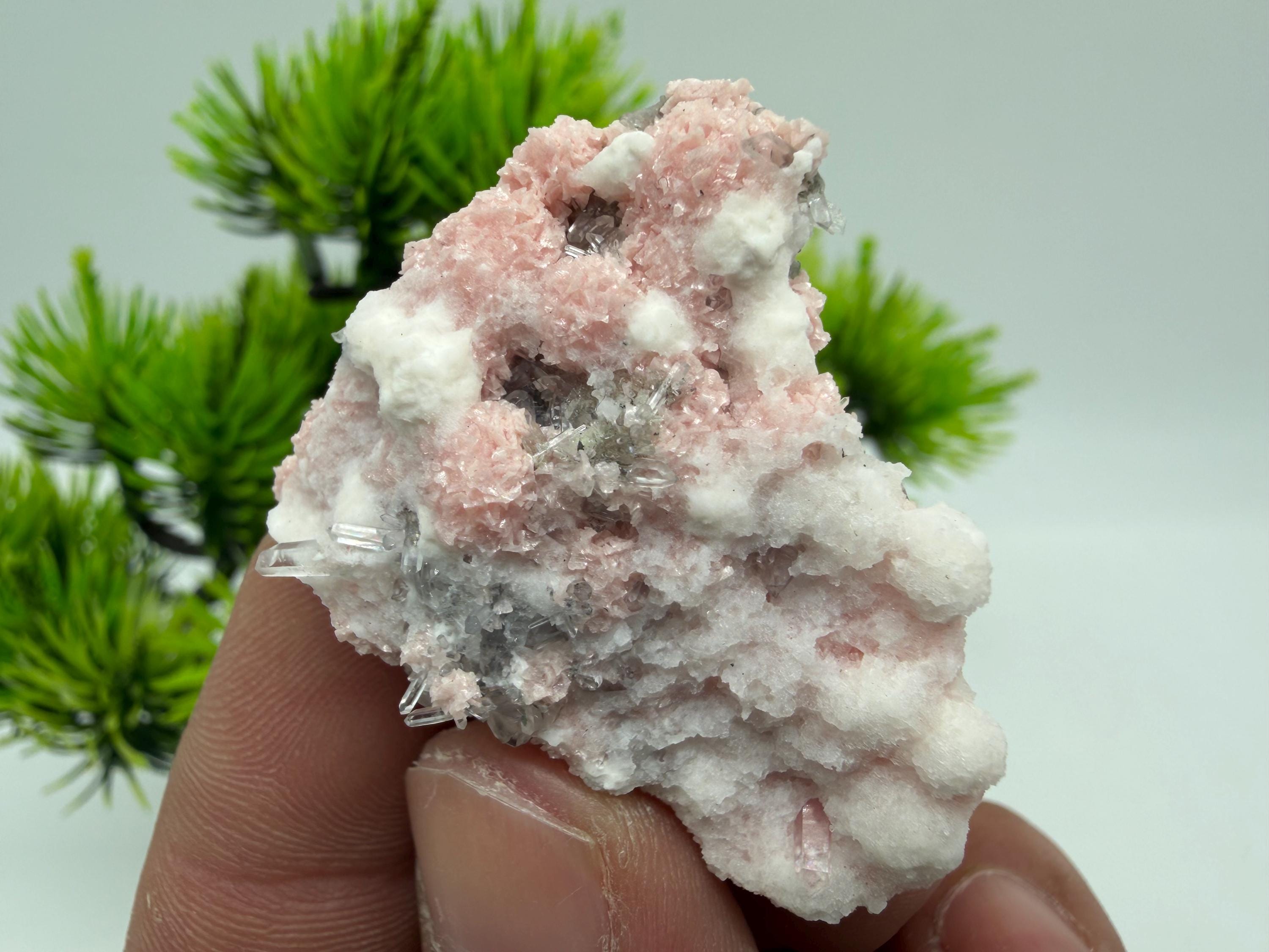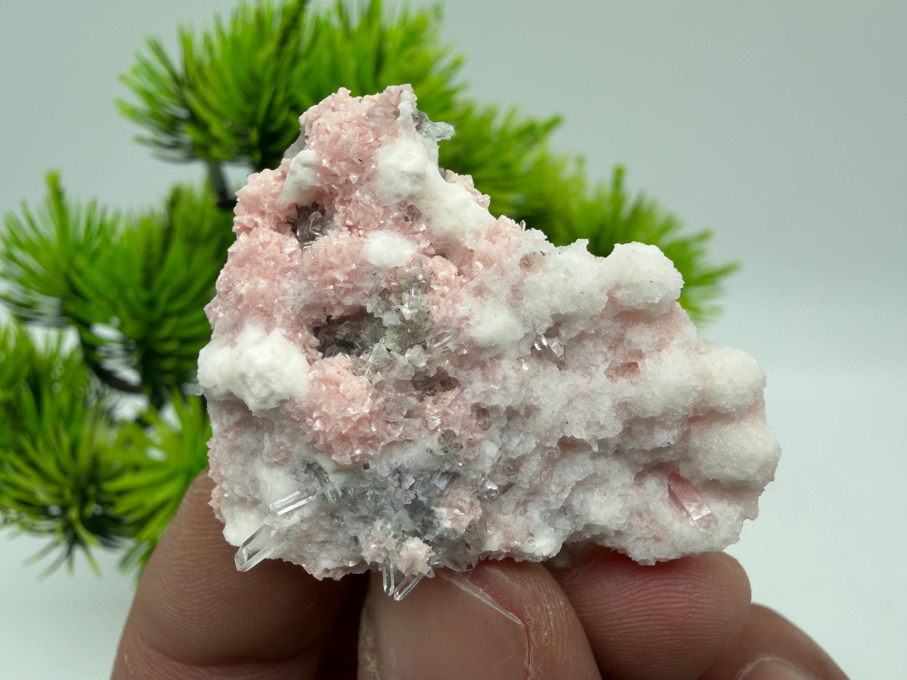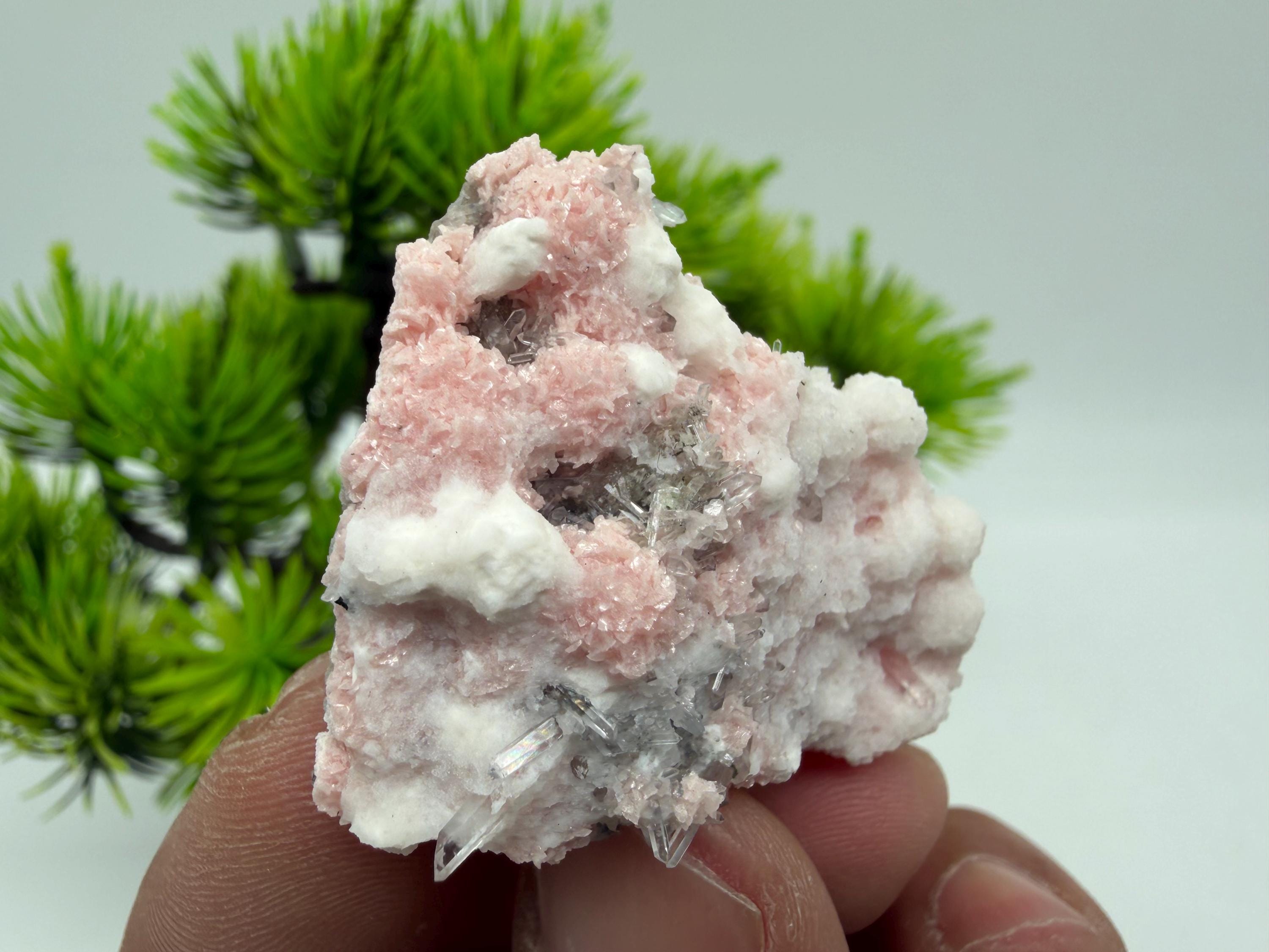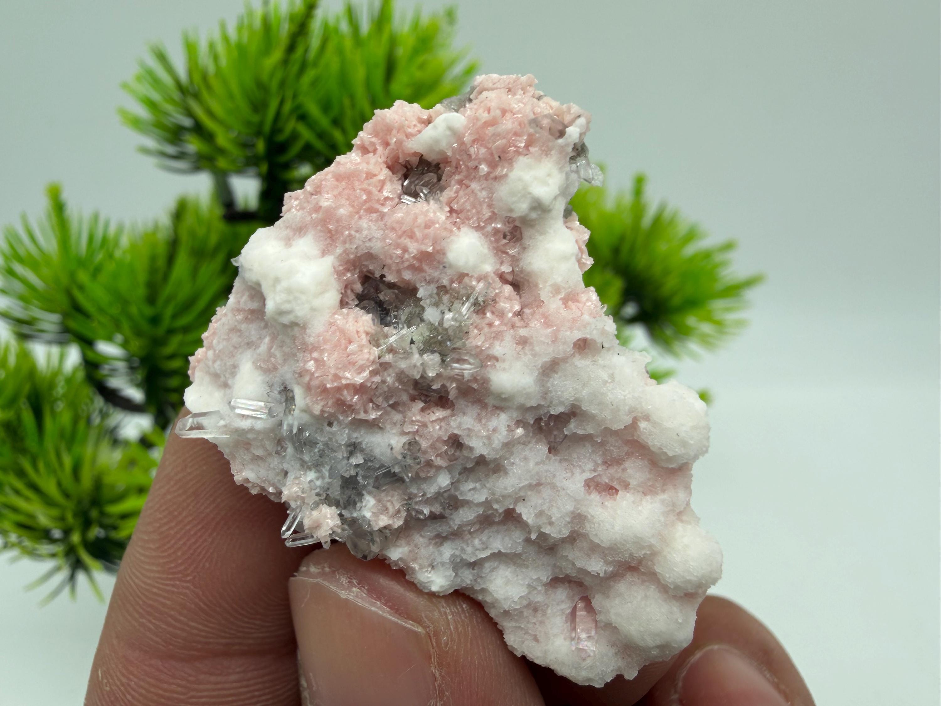 Stunning Rhodochrosite,Calcite on Quartz rare minerals collection crystal home decor souvenir stone Davidcovo Bulgaria top min 2190