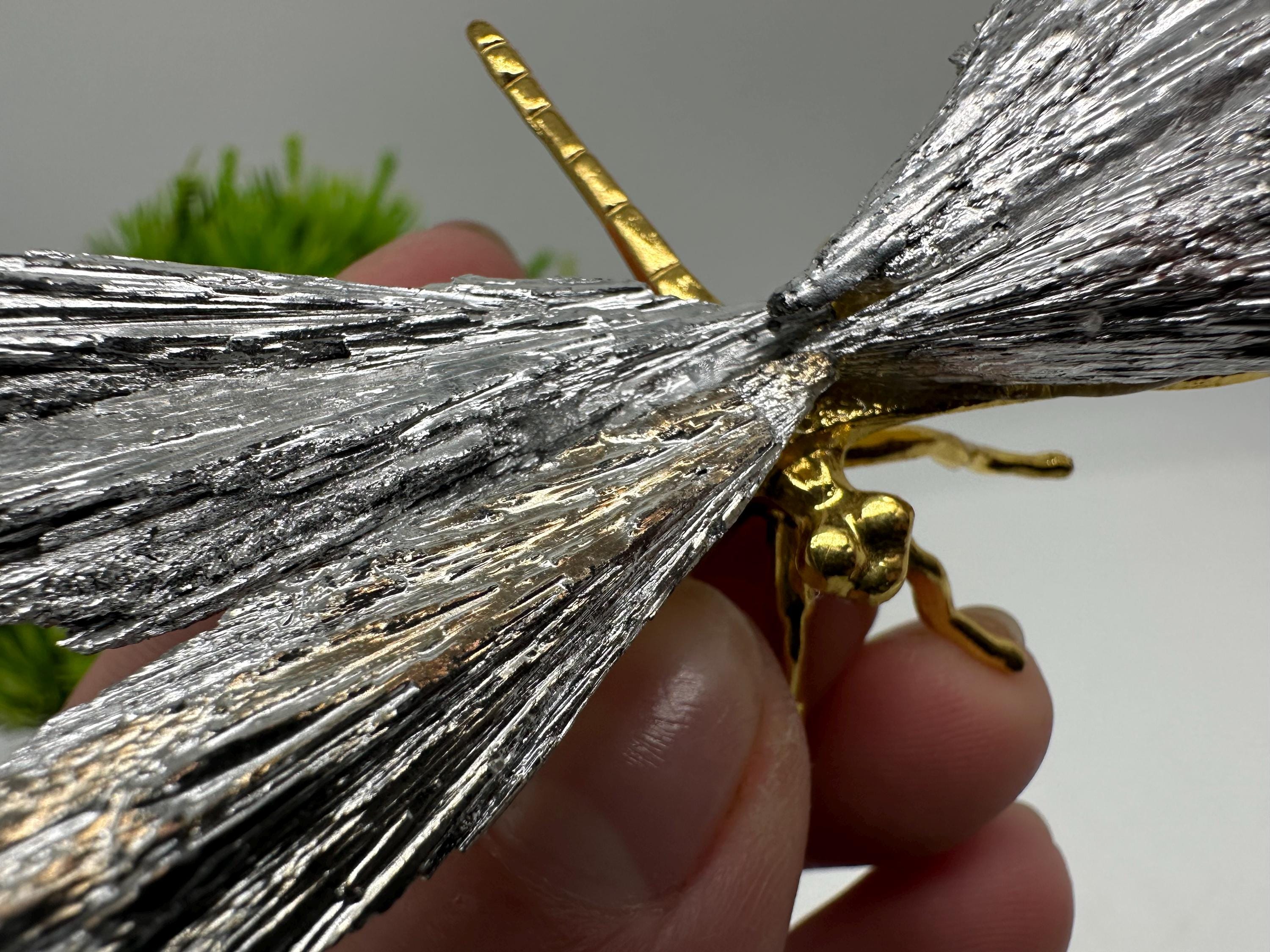 Beautiful hand-carved butterfly made from natural kyanite, featuring unique natural textures and shimmer. Each piece is one of a kind, with its own patterns and color variations, making every butterfly truly special.N:10