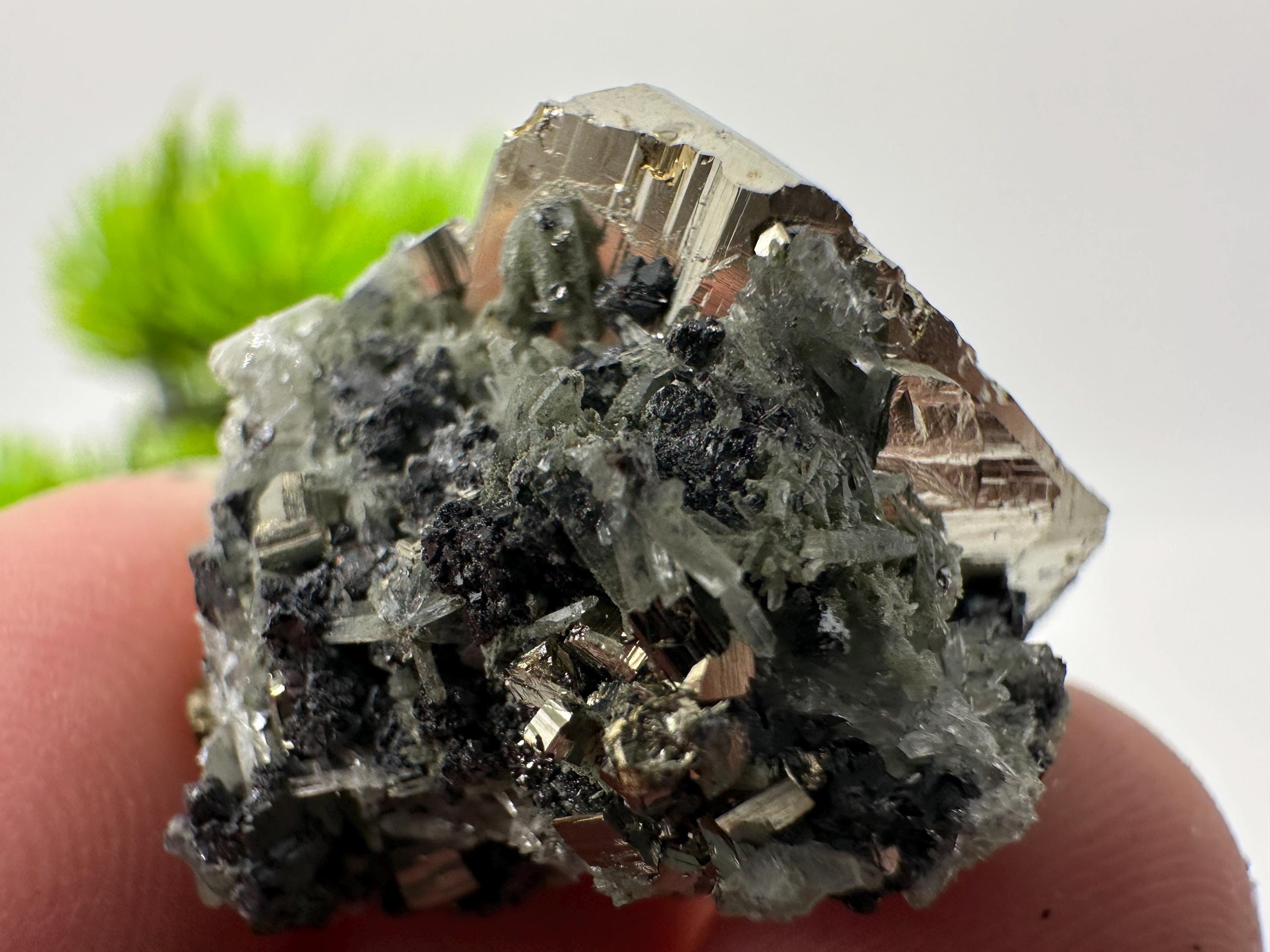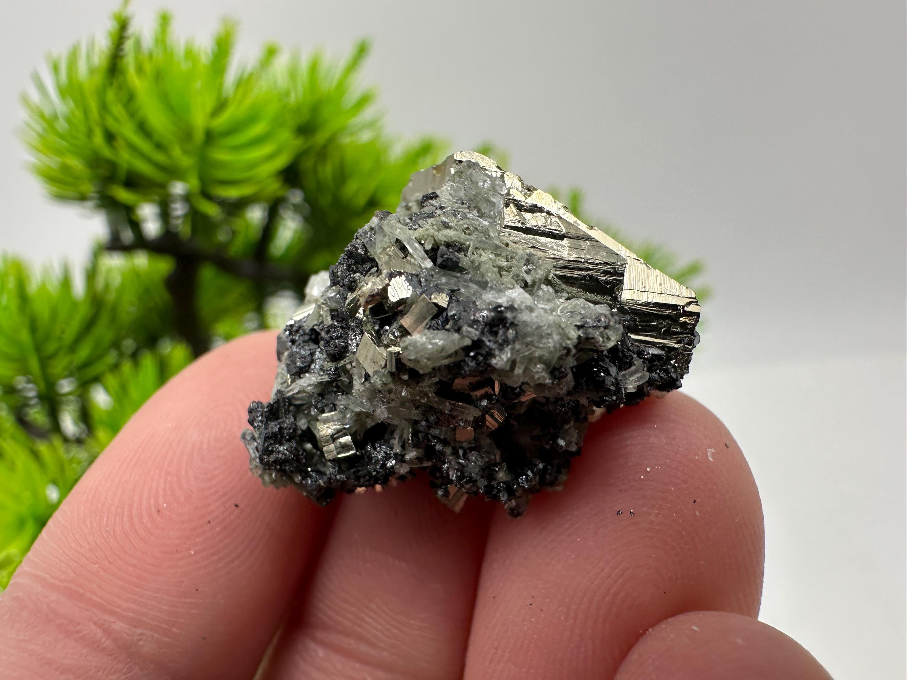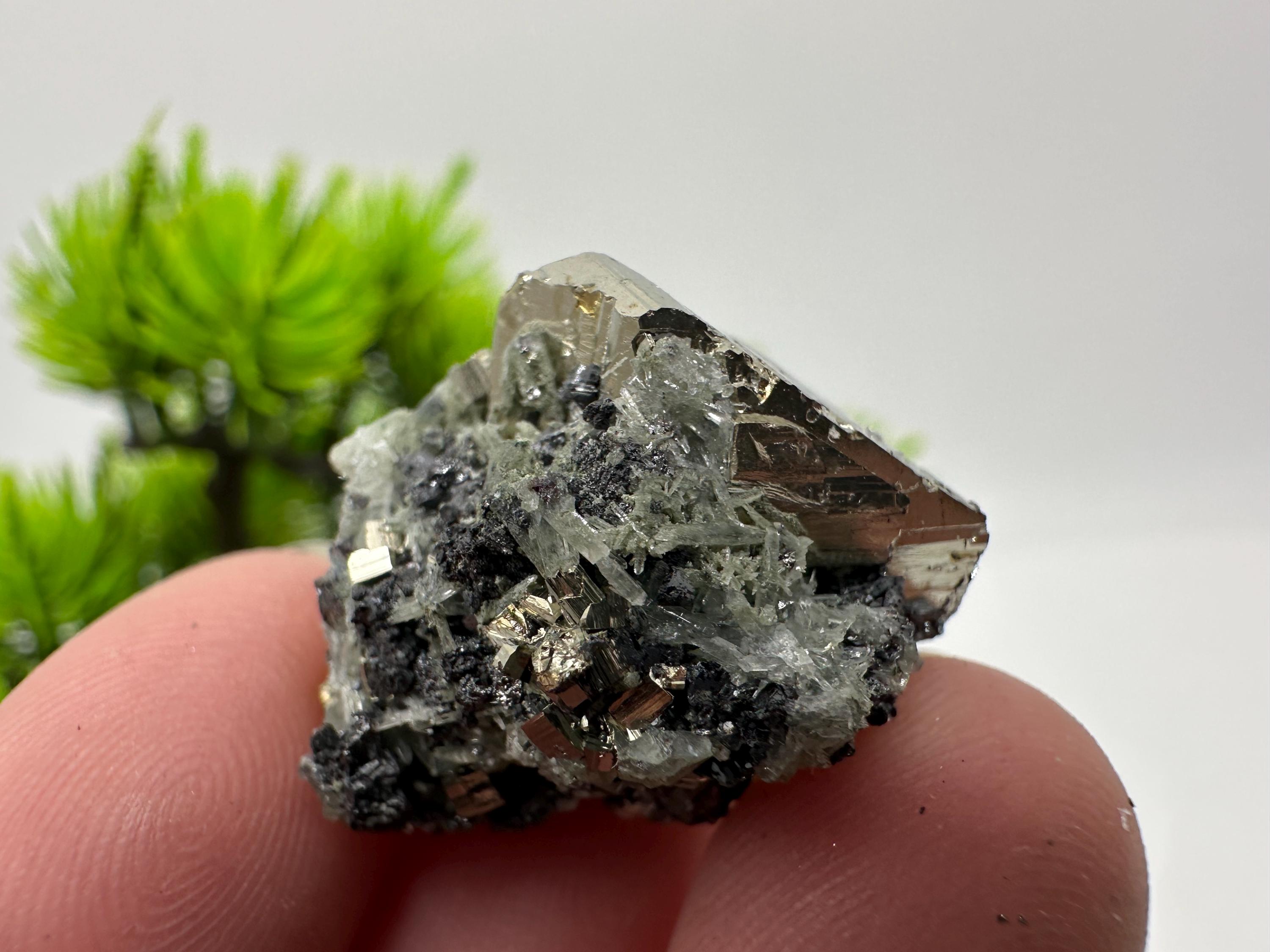 Stunning Pyrite,Sphalerite on Green Quartz from Borieva mine,Bulgaria,natural mineral,souvenir crystal,home decor stone,collection specimen 1040