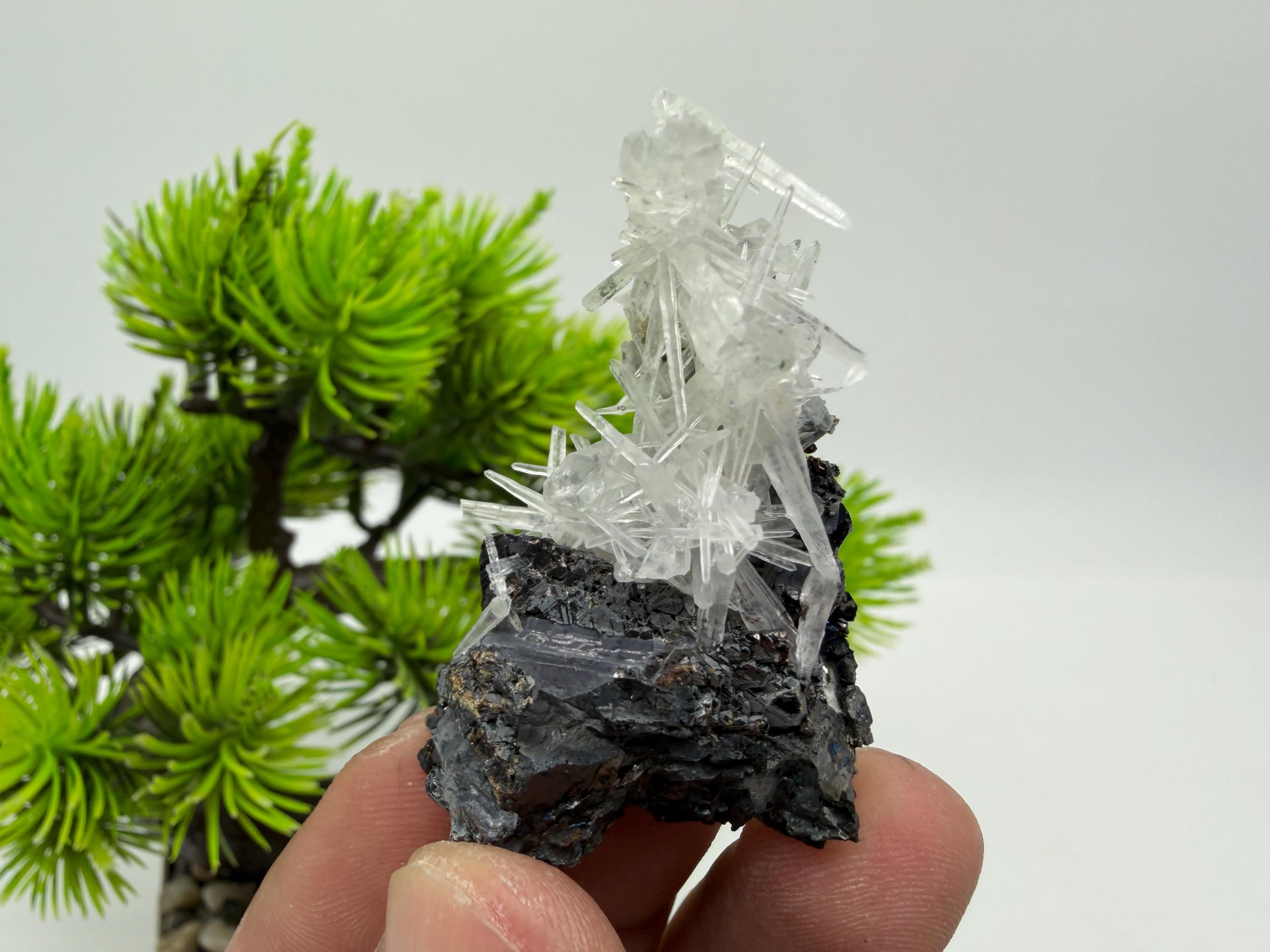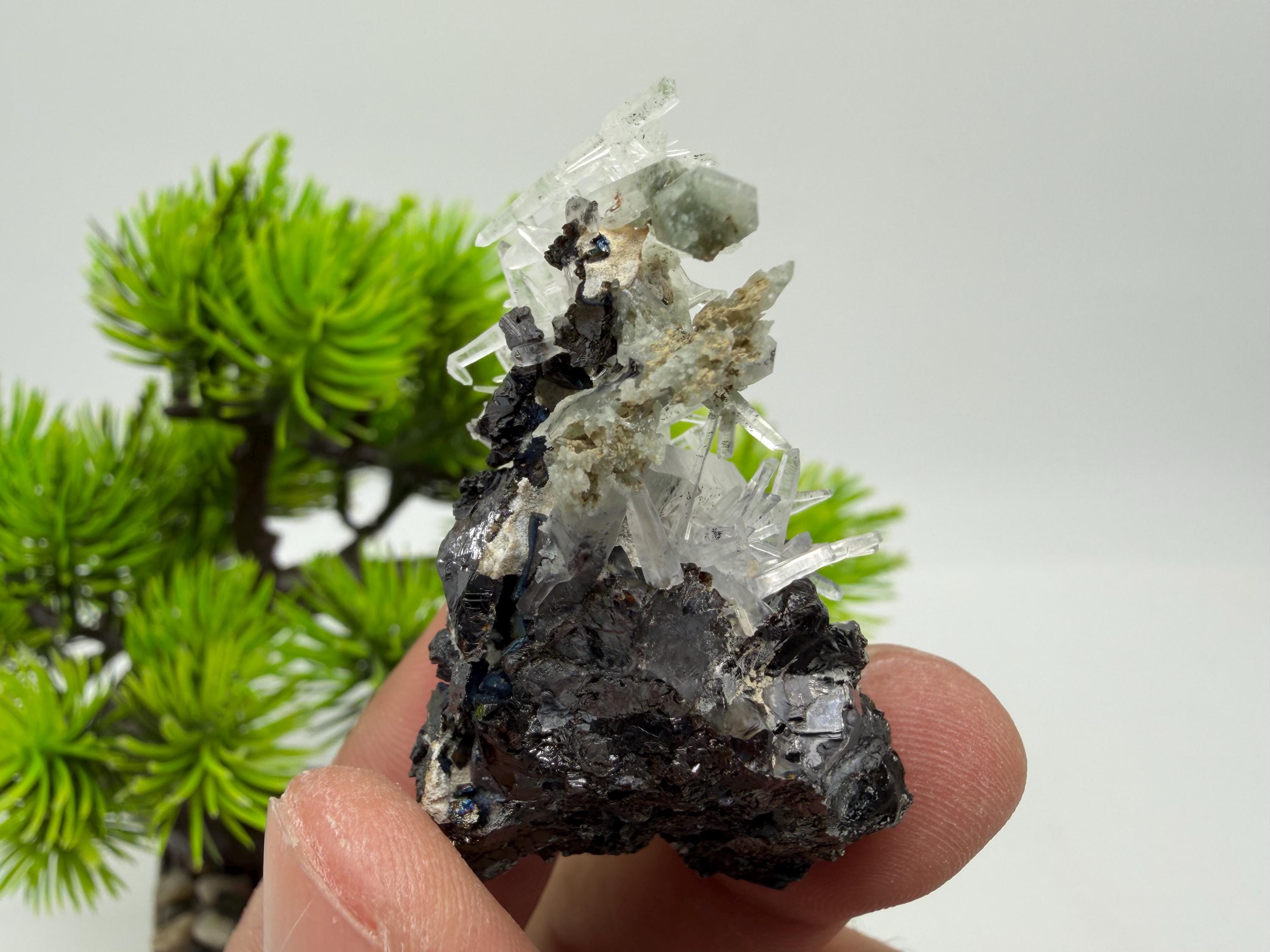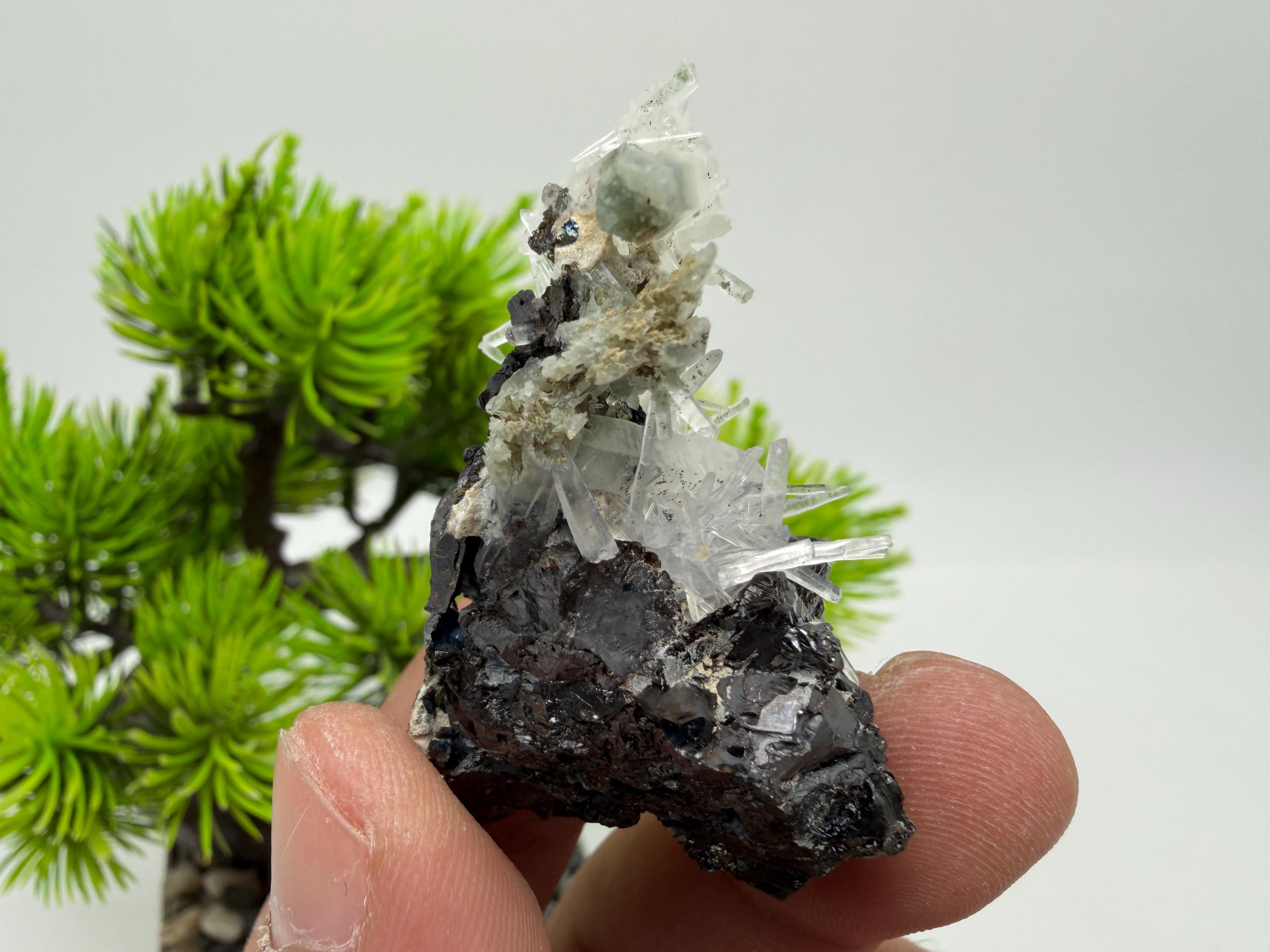 Stunning Sphalerite on transparent Quartz natural minerals souvenir crystal gift collection stone,home decor minerals,Borieva mine,Bulgaria 1046