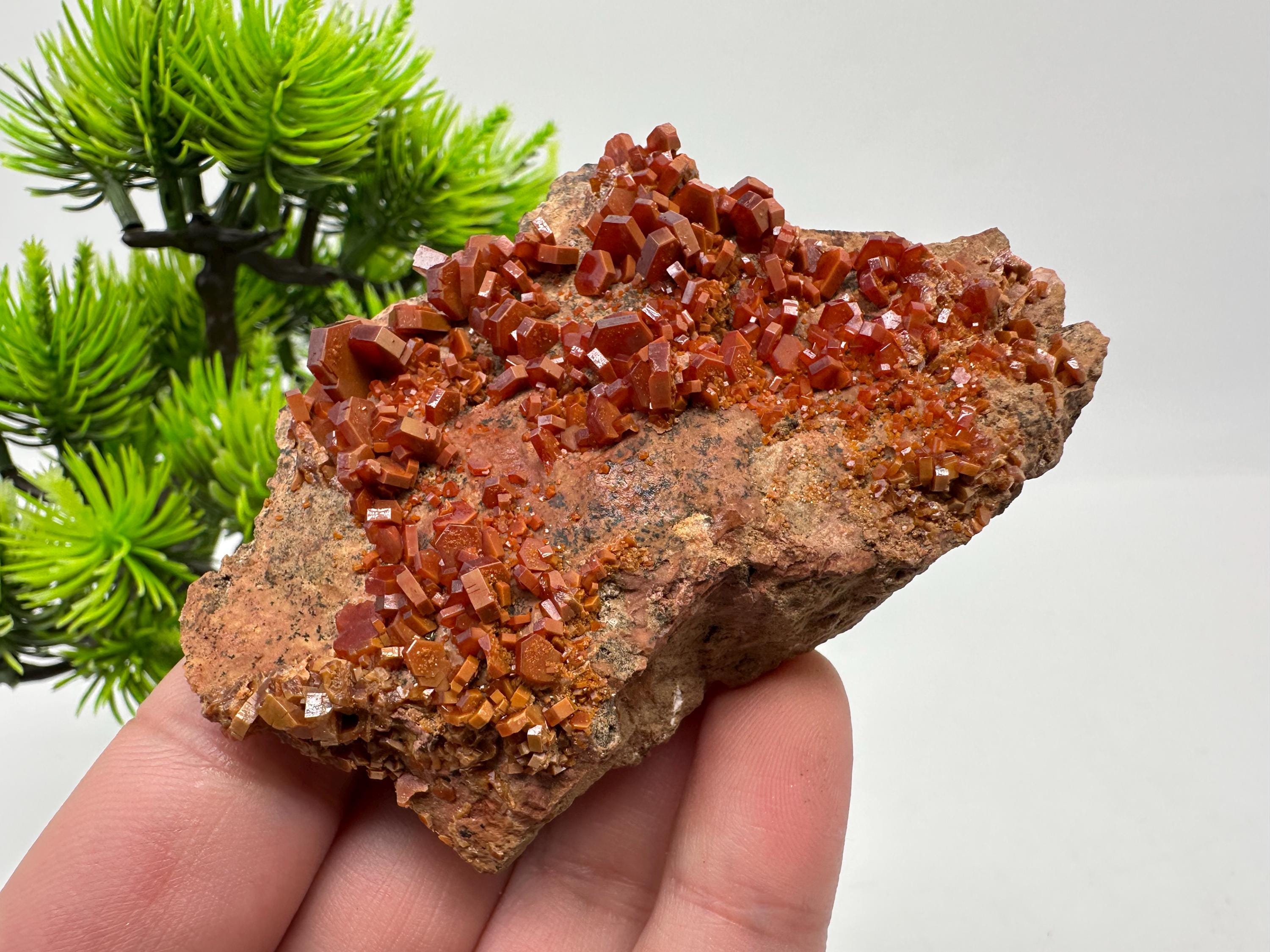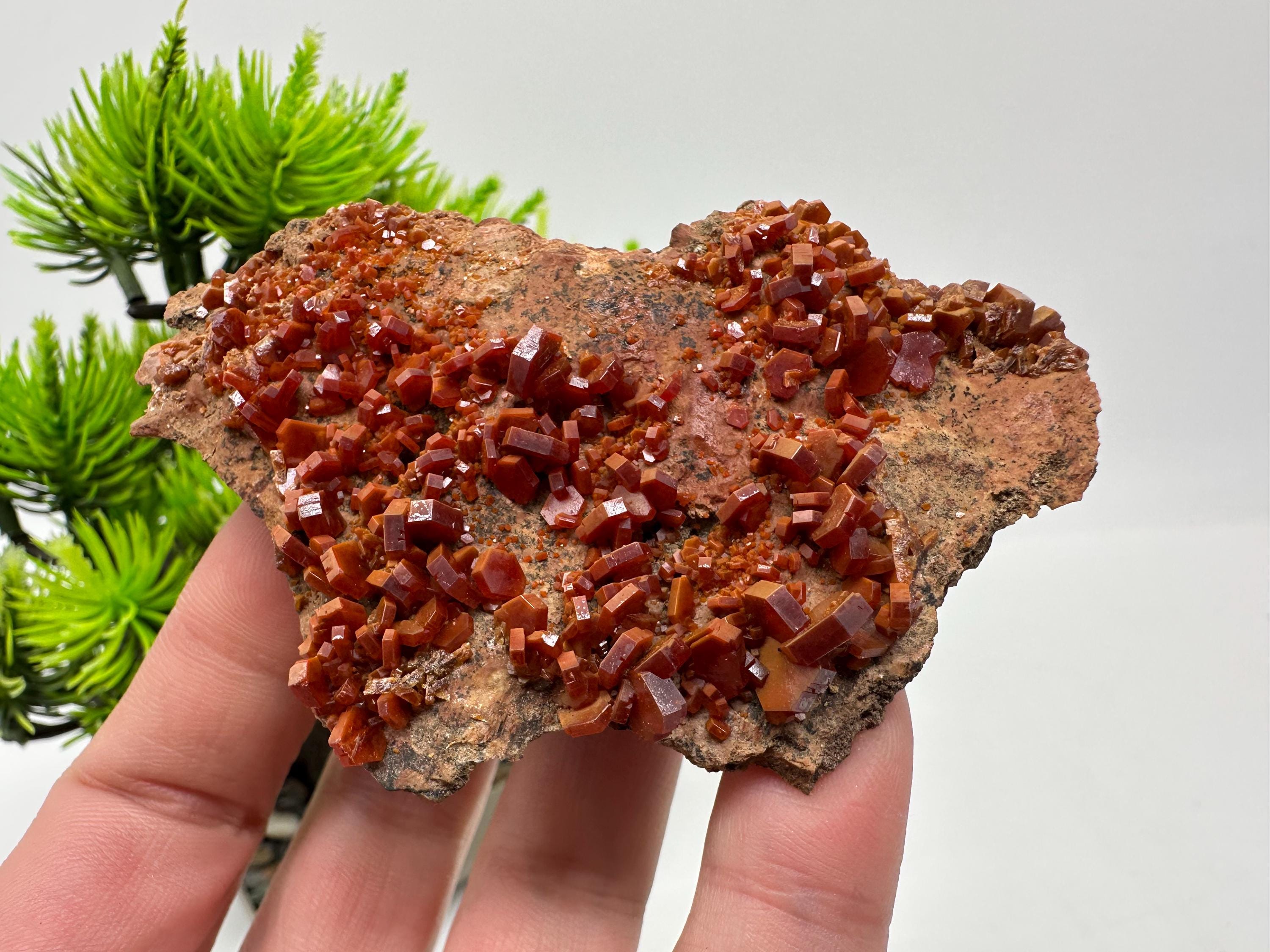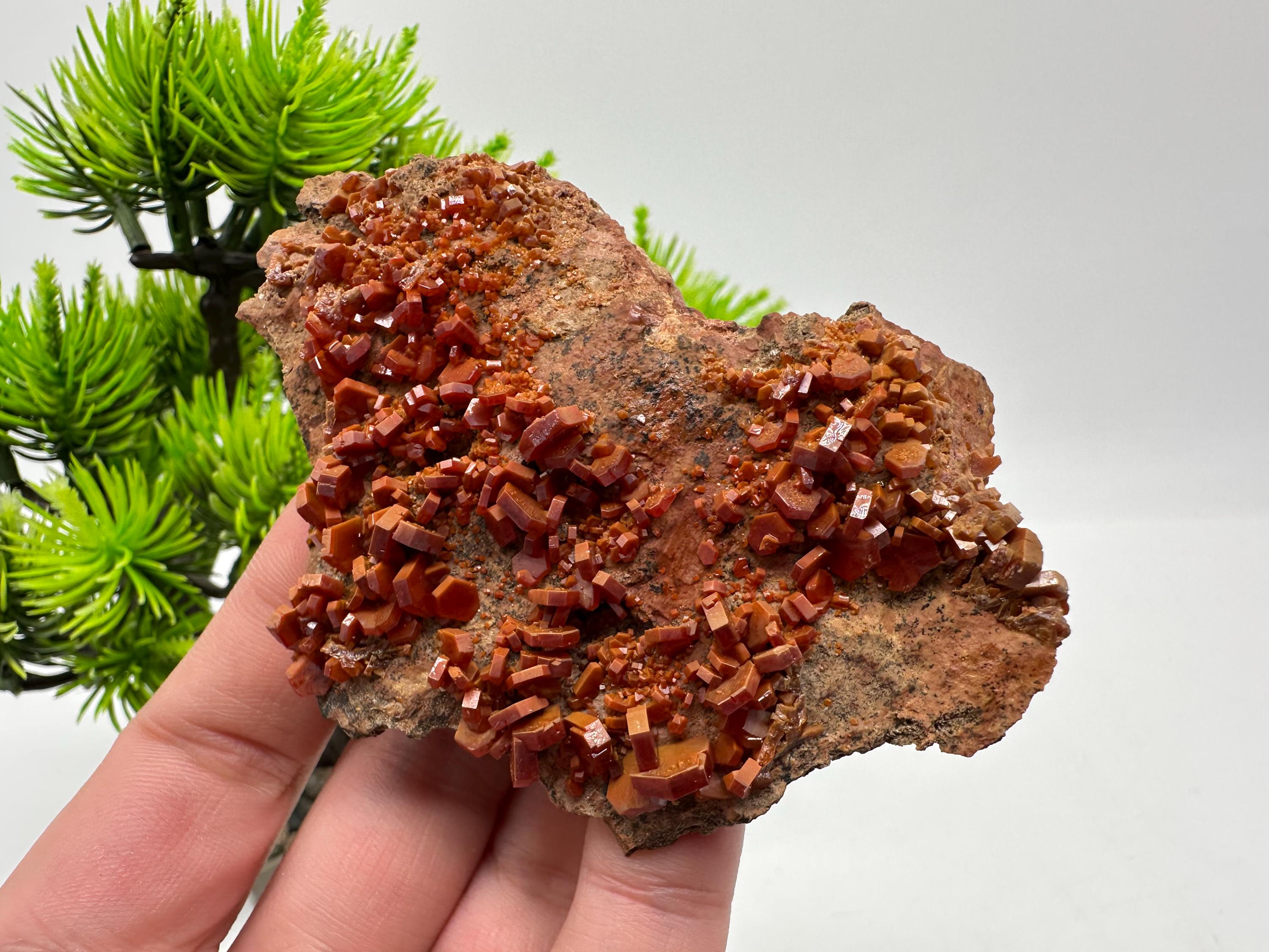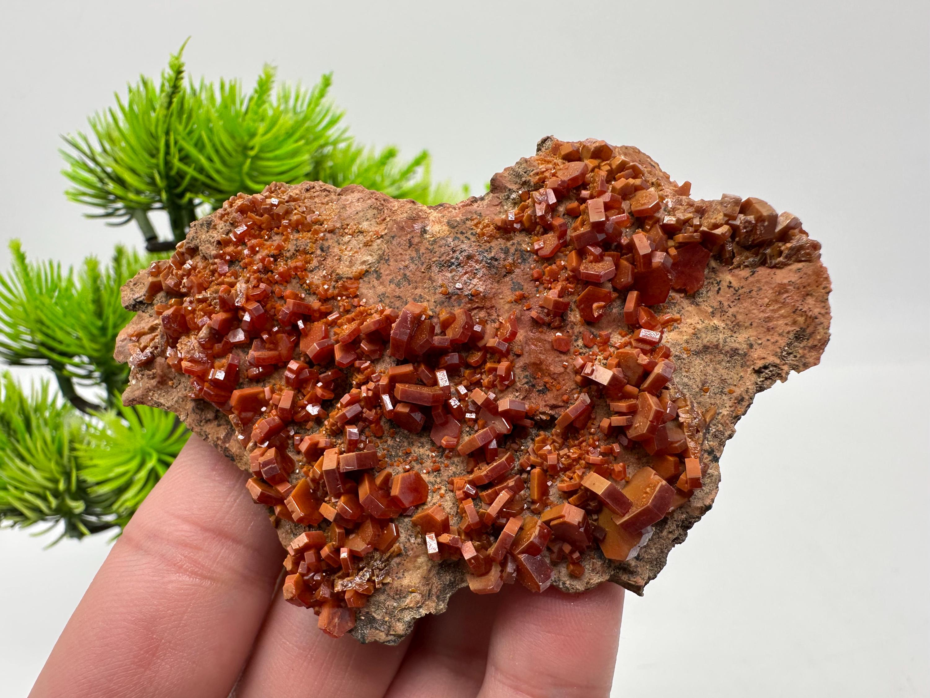 Red Vanadinite Crystal Cluster on Matrix,whit Goethite Morocco Mineral Specimen